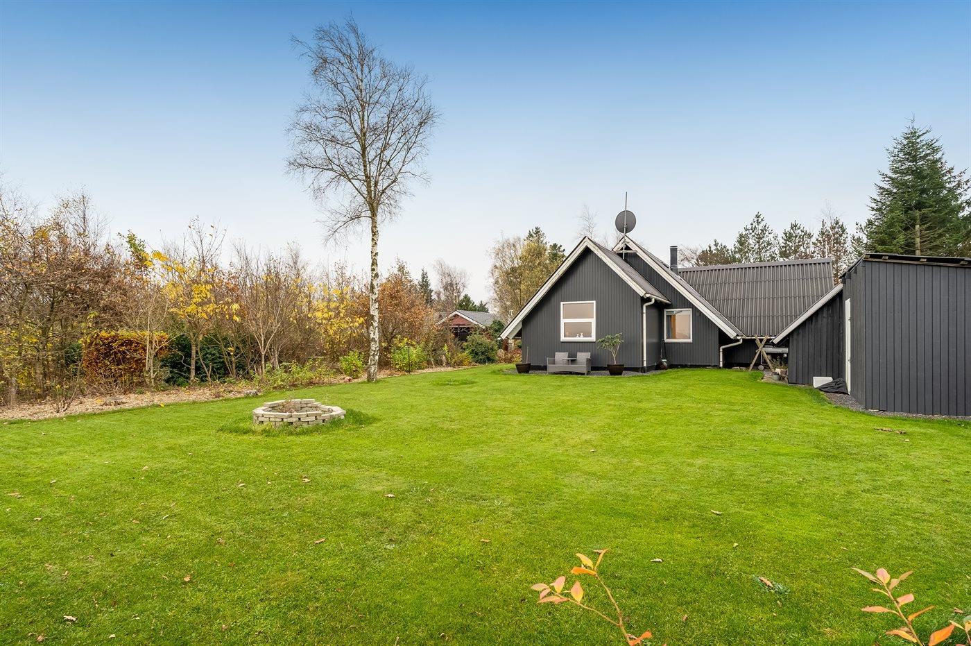 Ferieboligen er beliggende på en 1242 m² stor anlagt have. Tomten er inngjerdet. Avstand til fjord er 600 m. Nærmeste butikk ligger i en avstand på 3000 m. Til ferieboligen hører åpent terrasseareal. Det er Redskapsrom. Avstand til lekeplass er 150 m. Bålplass. Det er grill til rådighet. P-plass ved huset.
