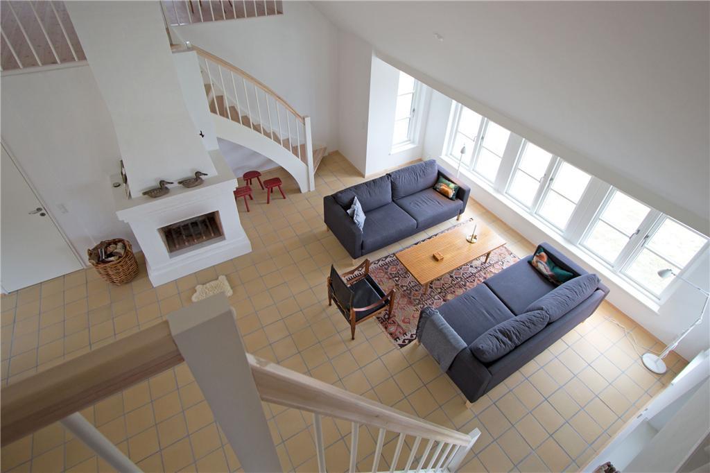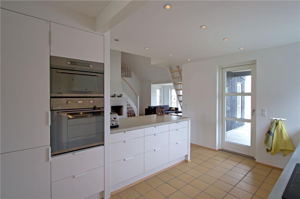 Beim Betreten des Ferienhauses empfängt dich eine helle und einladende Atmosphäre, die von der warmen Einrichtung unterstrichen wird. Die hohen Decken und großen Fenster lassen viel Tageslicht herein und schaffen ein Gefühl von Weite und Luftigkeit. Der offene Grundriss verbindet Wohnzimmer, Essbereich und Küche, sodass du Zeit mit deinen Liebsten verbringen kannst. Das Wohnzimmer lädt mit seinen bequemen Möbeln zum Entspannen ein, während der Kamin an kühlen Abenden für wohlige Wärme sorgt.