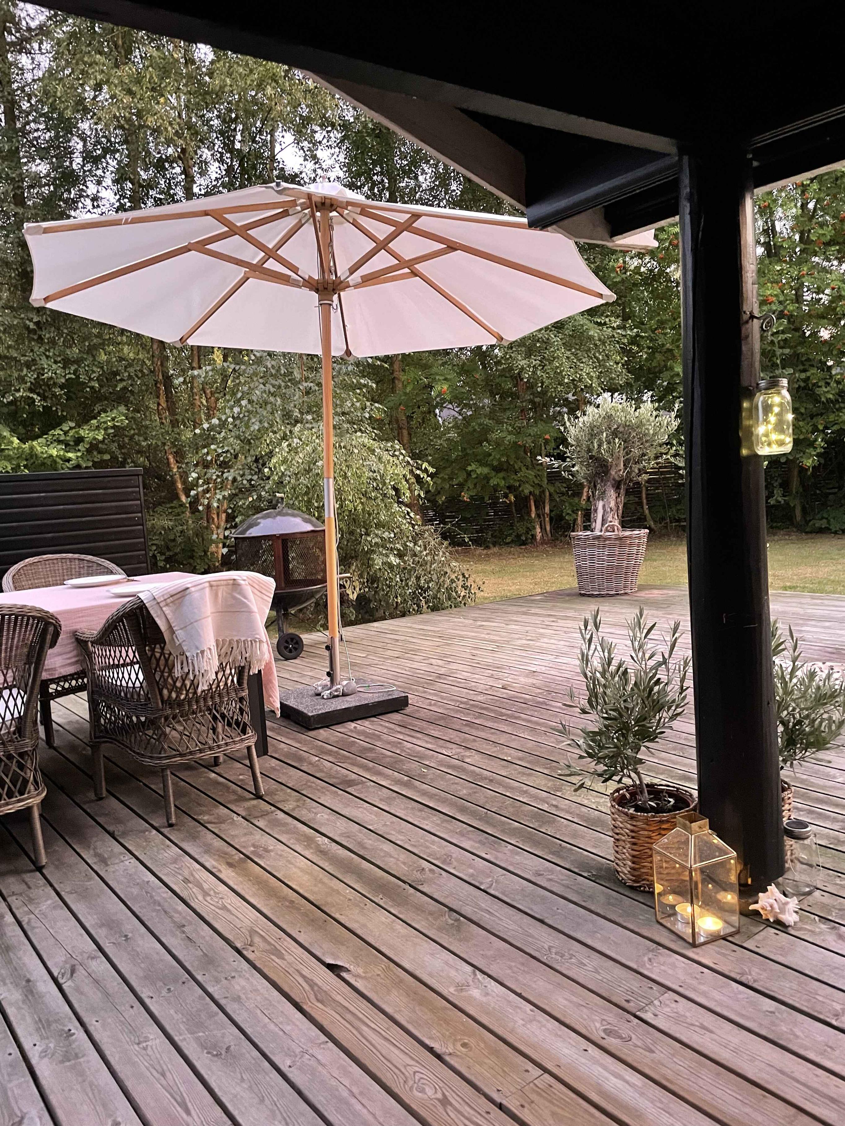Welcome to our small and cosy holiday home – a place where the pace slows naturally and the feeling of being on holiday sets in the moment you step inside. The house is compact but thoughtfully designed, full of charm and made for quality time together. It accommodates up to 6 guests, though it is especially well suited for 4 people seeking comfort, calm and a relaxed atmosphere. The living area is warm and personally decorated, and the wood-burning stove creates a special ambience on cooler evenings. It’s an ideal space to unwind with a book or enjoy a glass of wine after a day by the sea. The house offers two bedrooms with double beds and an additional room with a practical fold-out bed. Outdoor living is a key part of the experience. The large terrace with outdoor kitchen and gas grill invites long summer evenings, while the spacious garden offers plenty of room for play, relaxation and time together. Four bikes are available for exploring the surroundings. In the newly built shed, you will find a washing machine and an extra fridge, adding convenience to your stay. The location is ideal: close to the golf course, the town and just around 700 metres from one of Denmark’s most beautiful beaches. Nearby, Bøtø Nature Forest offers the chance to see free-roaming horses and cattle. Dogs are very welcome, as we know holidays are best when everyone can join. A holiday home for those seeking atmosphere, nature and peaceful surroundings. Note: Not for commercial rental.