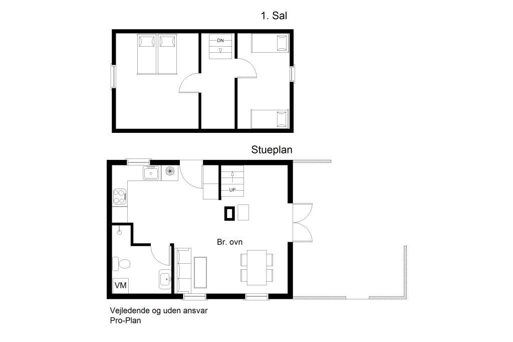 In the 1. floor you can find 2 bedrooms, one with a double bed and one with two single beds. All in all a house that is renovated with love to details.