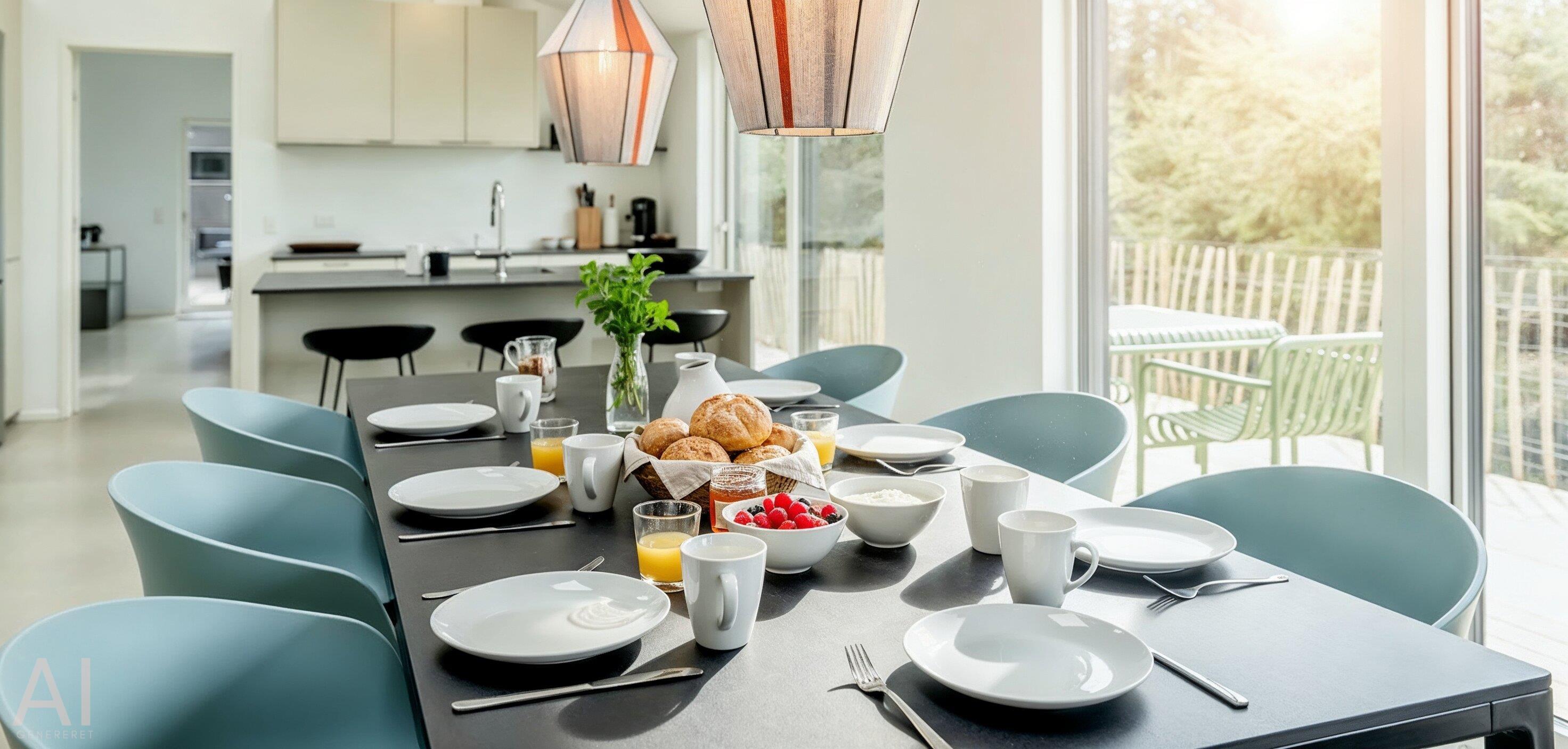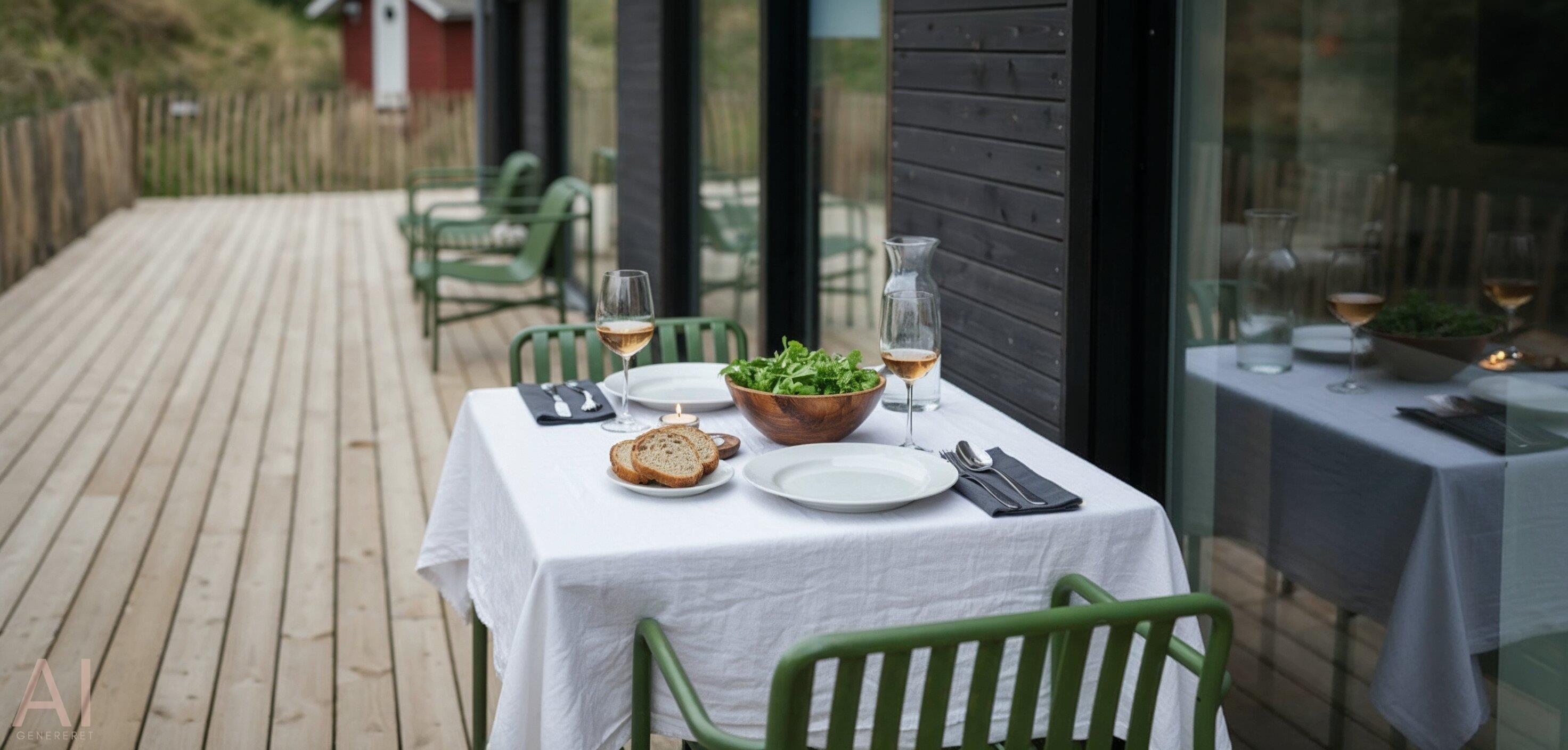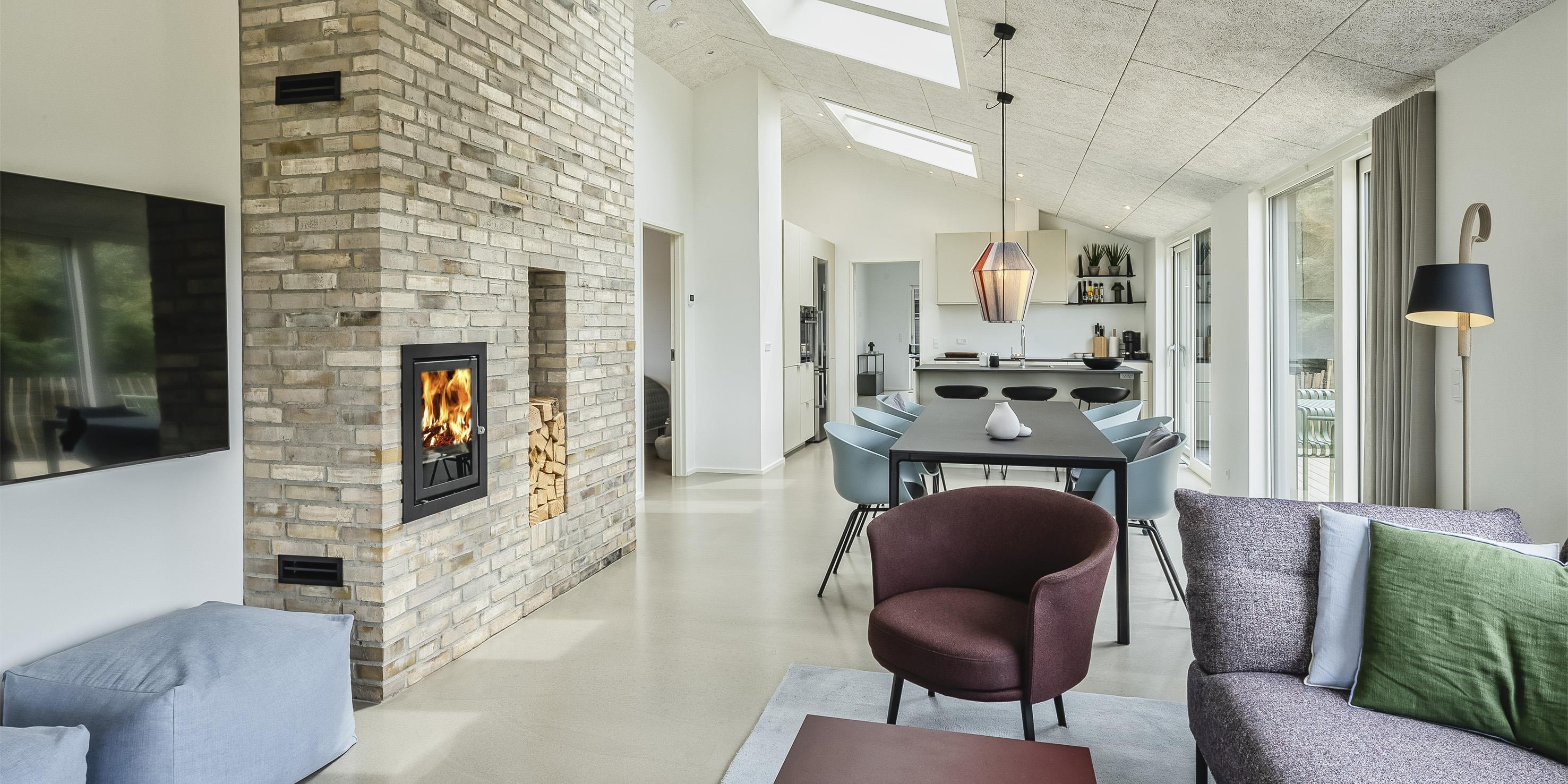The summer house offers a wonderful atmosphere in a modern, Nordic style, and with large panoramic windows facing nature.