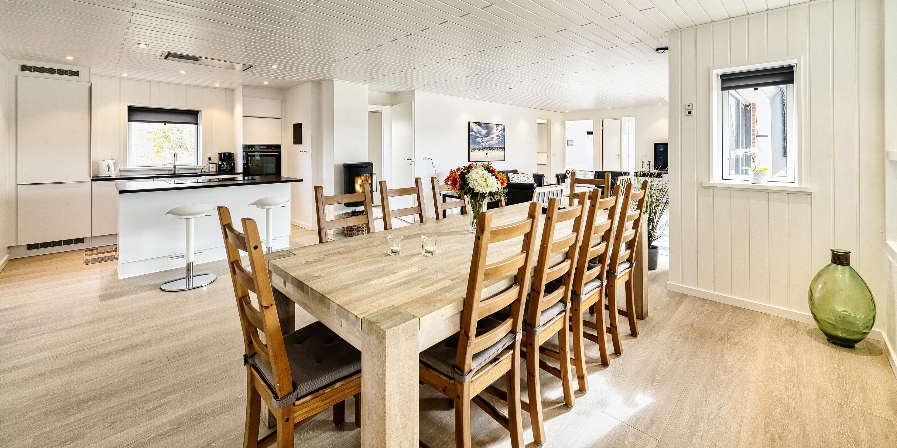 Bright and renovated pool house for 10 people, located on top of a dune plot that lies undisturbed at a dead end road. The plot is a 2000 m2 dune lot with just 100 meters to the beach. All the glory is bordering the peaceful dune landscape and with a fantastic undisturbed panoramic view from the living room and the pool area.