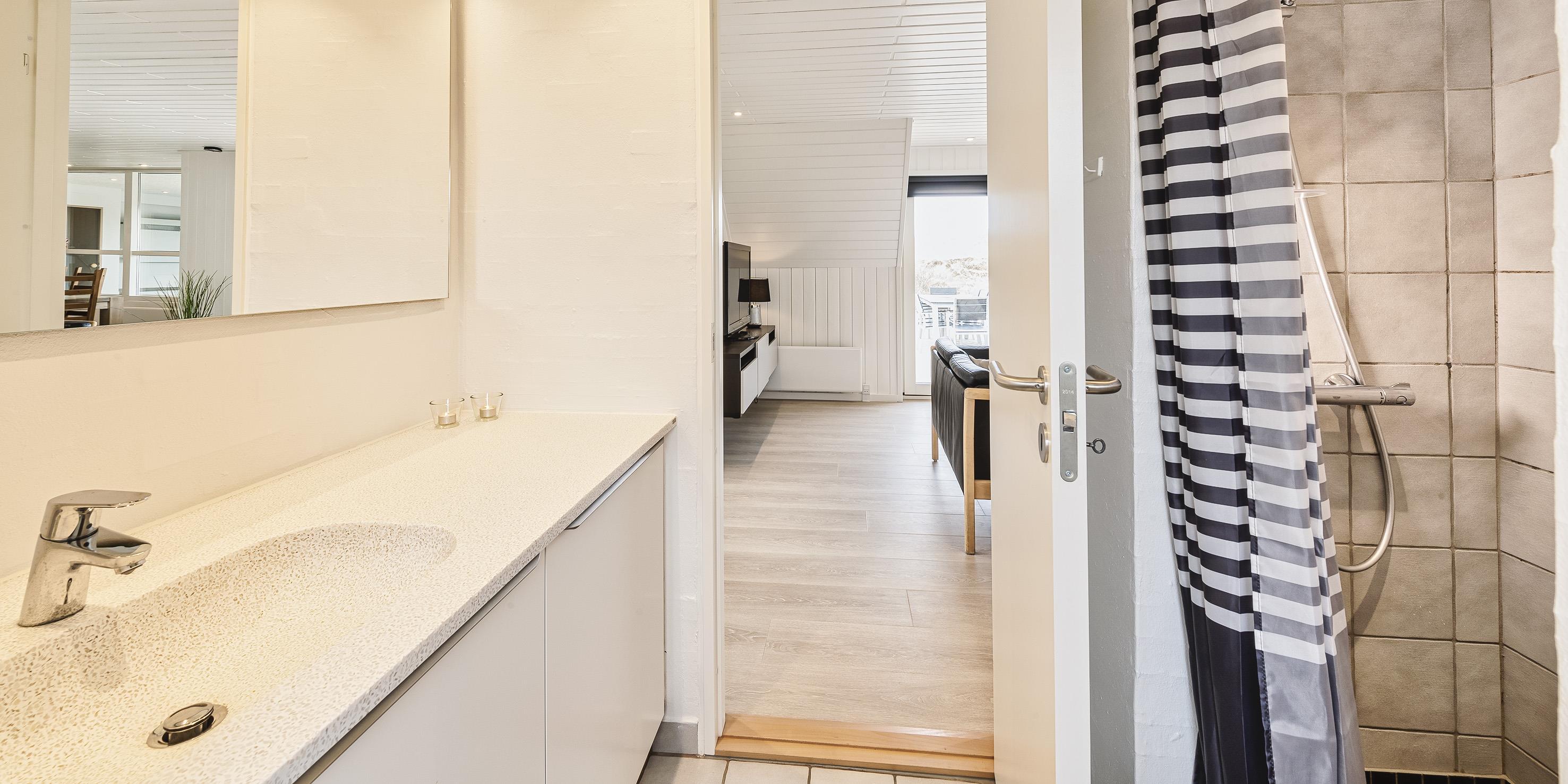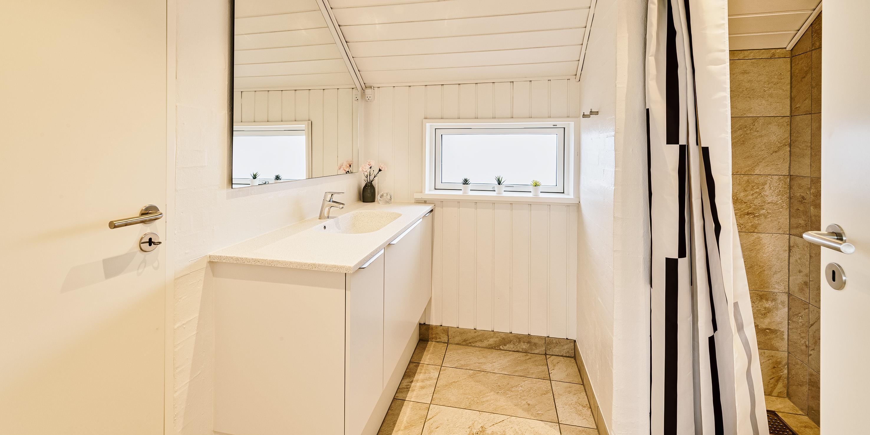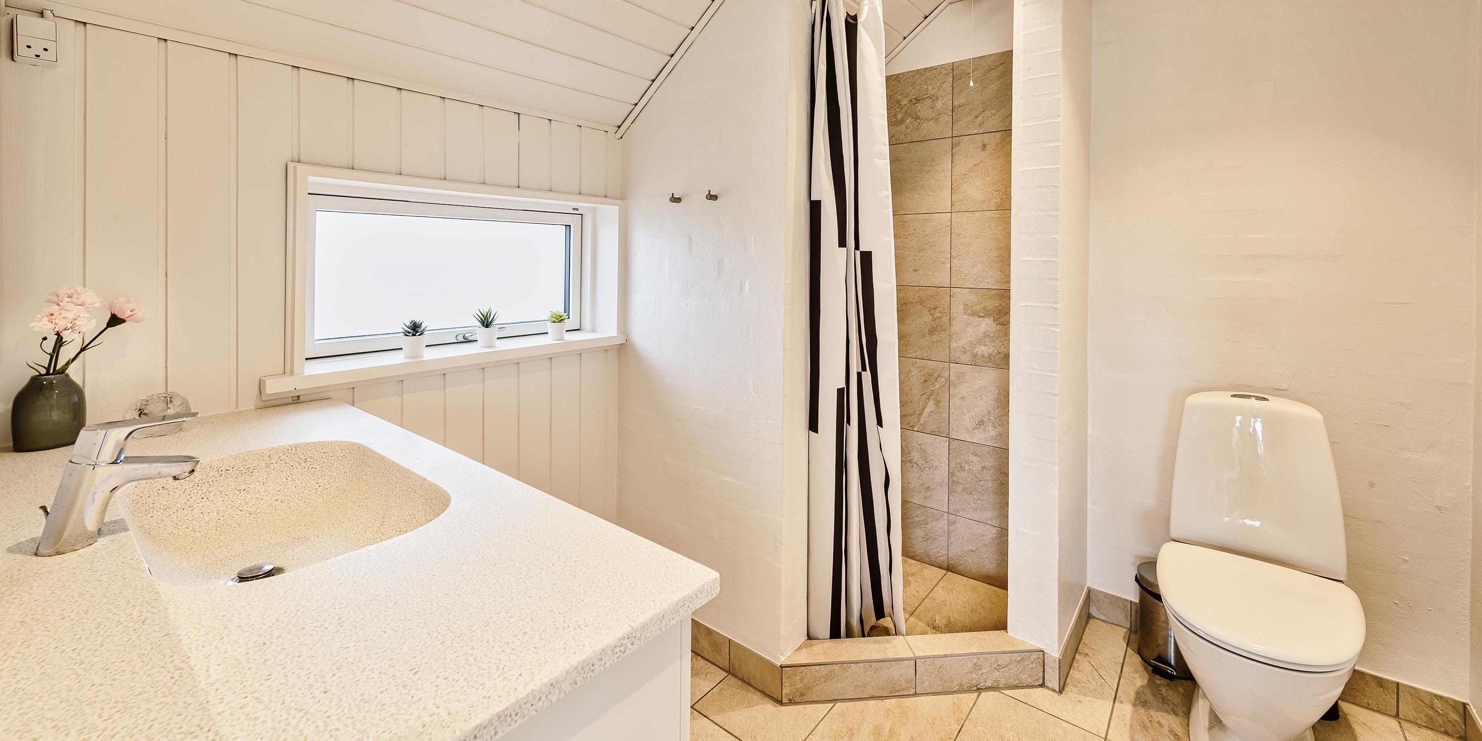 Bad med toalett, dusj og servant