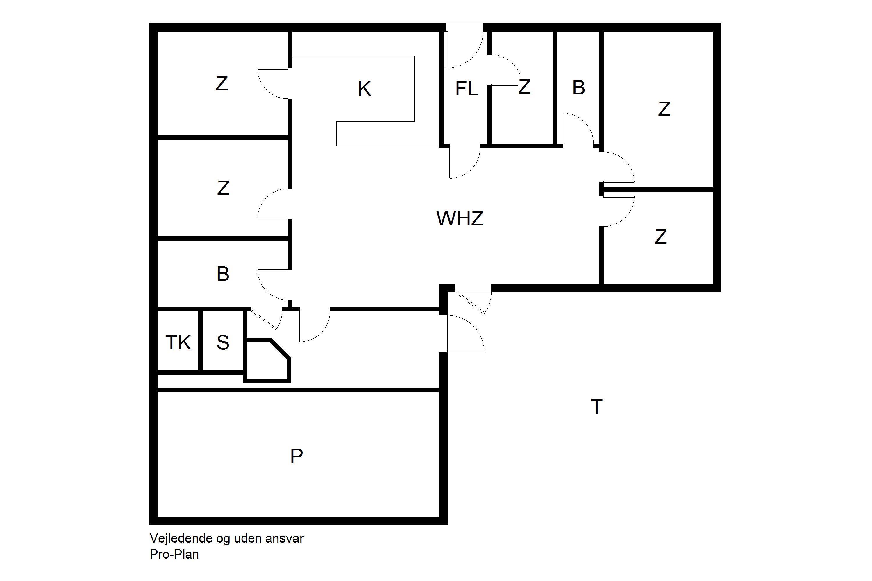 5 bedrooms. 4 with double bed 180x200 cm. 1 with bunk bed.