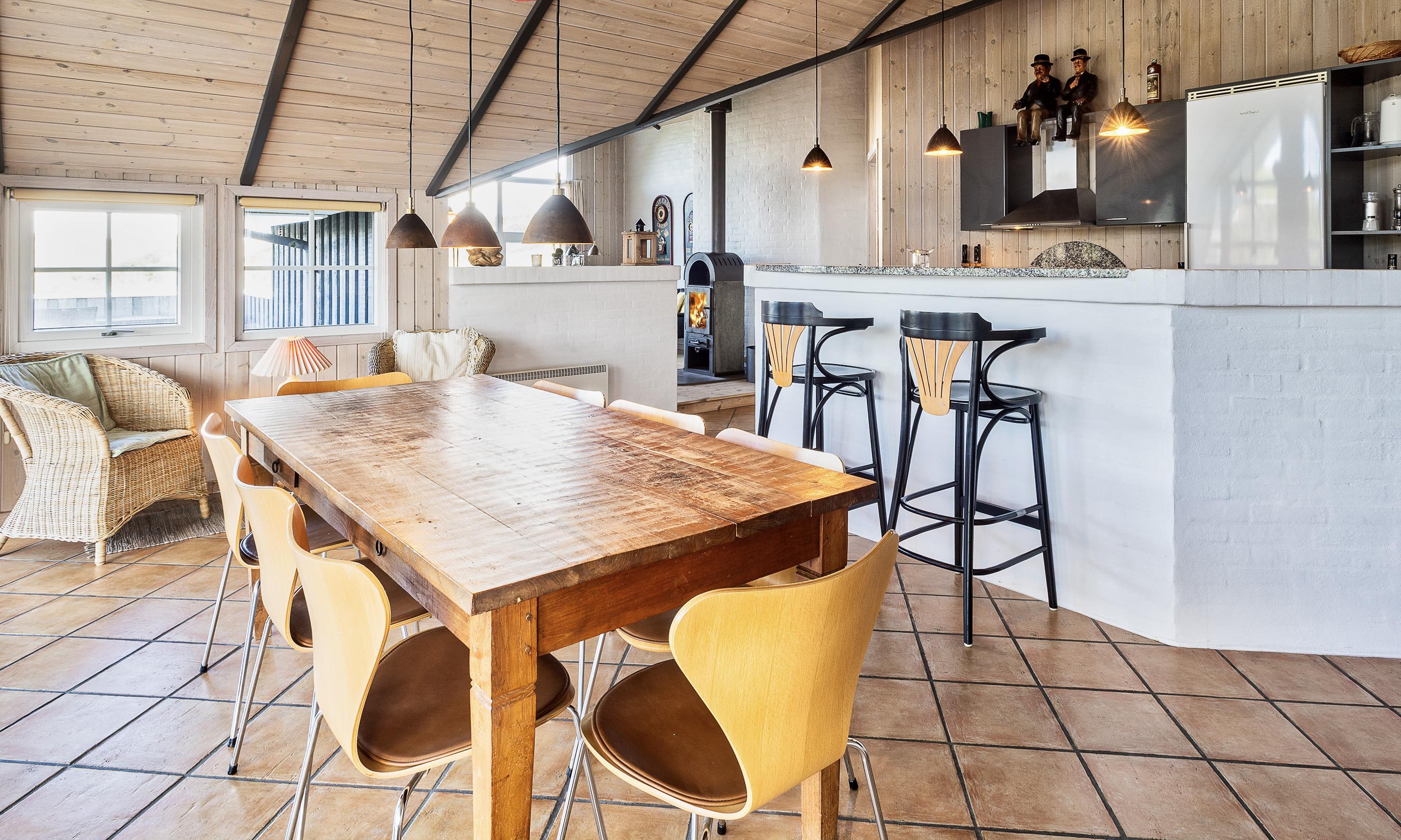 Tasteful cottage for 8 people, located on a large dune lot, approx. 75 meters from the beach. Open kitchen with dishwasher, freezer and microwave. Sofa corner with television, Danish TV package from Stofa. Dining room with good dining table space and access to the terrace. Living room with fireplace and large window from which the view over the dune landscape can be enjoyed. Phone for incoming calls. Large bathroom with shower/wc, stagnant water spa and sauna. Guest toilet with shower. Washing machine and dryer. 4 bedrooms: DB + DB + DB + DB. Large, partially enclosed terrace. Part of the terrace is covered. Wireless internet access. Pets are not allowed! Year of construction 1999.