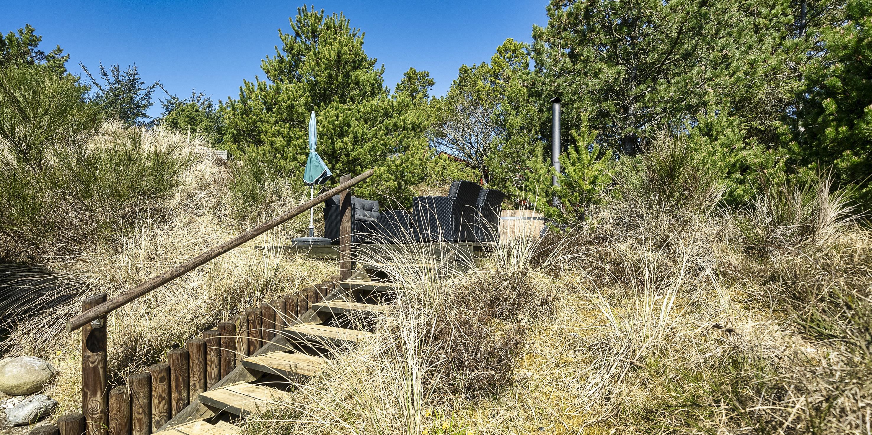 Cozy cottage for 4 people, located approx. 300 meters from the beach. The house has undergone a major renovation inside and out in 2020 and 2021. The cottage is located on a lovely hilly dune plot, where there is also a raised terrace with a wilderness bath. There is also a nice, large and unobtrusive terrace around the house, as well as several cozy nooks on the grounds. Entrance is through the house's kitchen, which contains a dishwasher, an oven, a micro-oven, and a fridge (the freezer is in the utility shed). The kitchen is in open connection with the cozy living room, where there is a wood-burning stove and air conditioning, there is a large TV and there is wireless internet access. From the living room you enter a really cozy dining room, where there is a nice amount of light. There is access from both the living room and dining room to the terrace. There are 2 bedrooms: DB + DB and wardrobes, a nice large bathroom with shower, as well as a washing machine and dryer. Smoking inside the house is not allowed. In the tool shed there is firewood for free use, as well as cushions for garden furniture. There is a barbecue on the terrace. 2 small dogs are allowed (max. height 30 cm), but cats are not.
