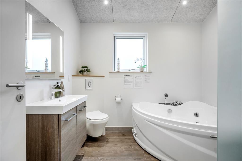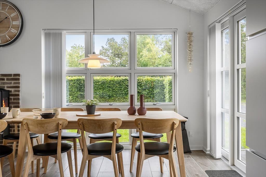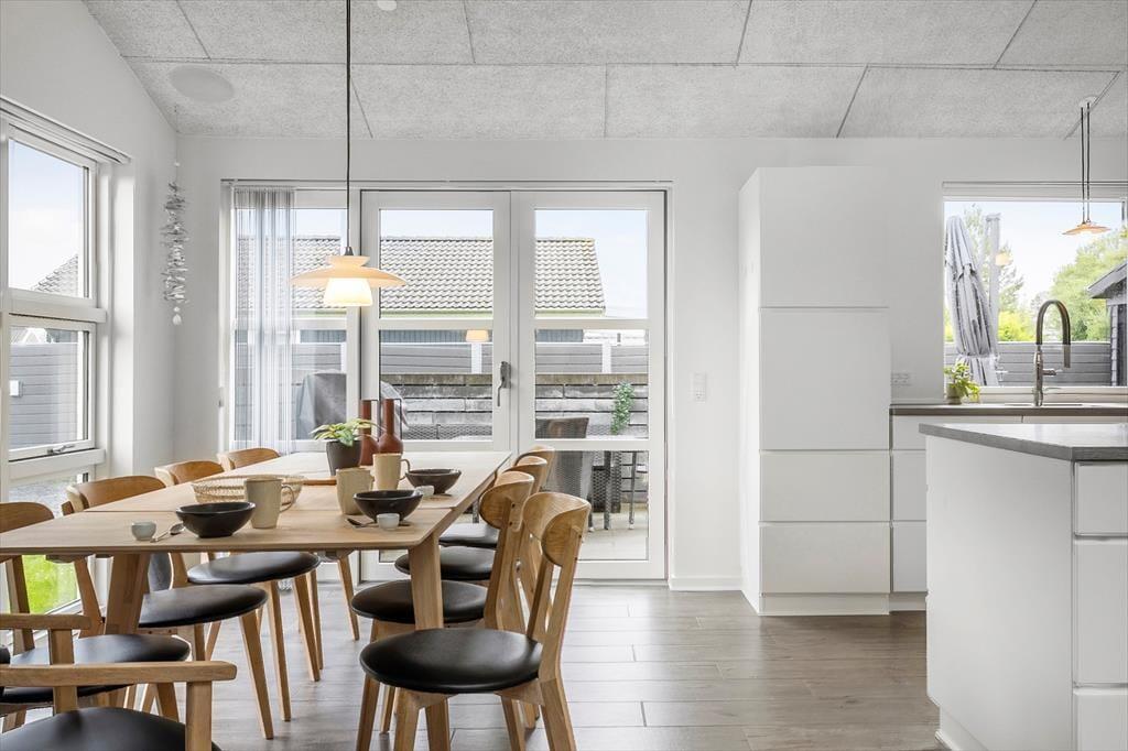 Das Ferienhaus beeindruckt mit seinem hellen und offenen Grundriss, bei dem die moderne Küche offen mit dem Wohn- und Essbereich verbunden ist. Dies schafft eine gesellige und einladende Atmosphäre, ideal für das Zusammensein mit Familie und Freunden. Im Wohnzimmer sorgt ein gemütlicher Kamin für Wärme und Behaglichkeit an kühlen Abenden, während die Fußbodenheizung im ganzen Haus das ganze Jahr über für angenehme Temperaturen sorgt. Das Haus verfügt über vier schöne Schlafzimmer – darunter eines mit Etagenbett, das bei Kindern besonders beliebt ist. Zwei ansprechende Badezimmer bieten zusätzlichen Komfort, eines davon mit einem herrlichen Whirlpool, der zur Entspannung nach einem aktiven Tag am Strand oder in der Umgebung einlädt.