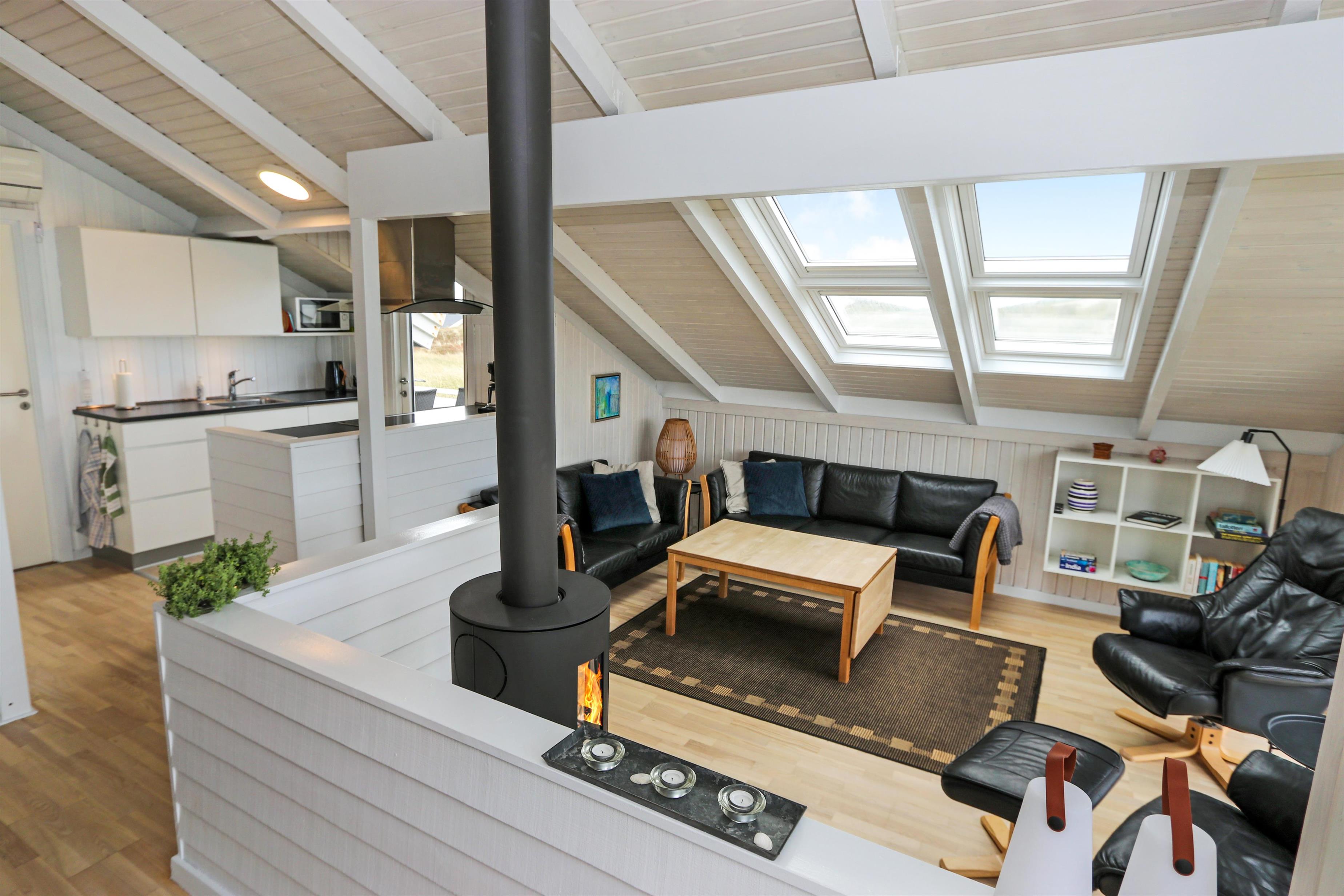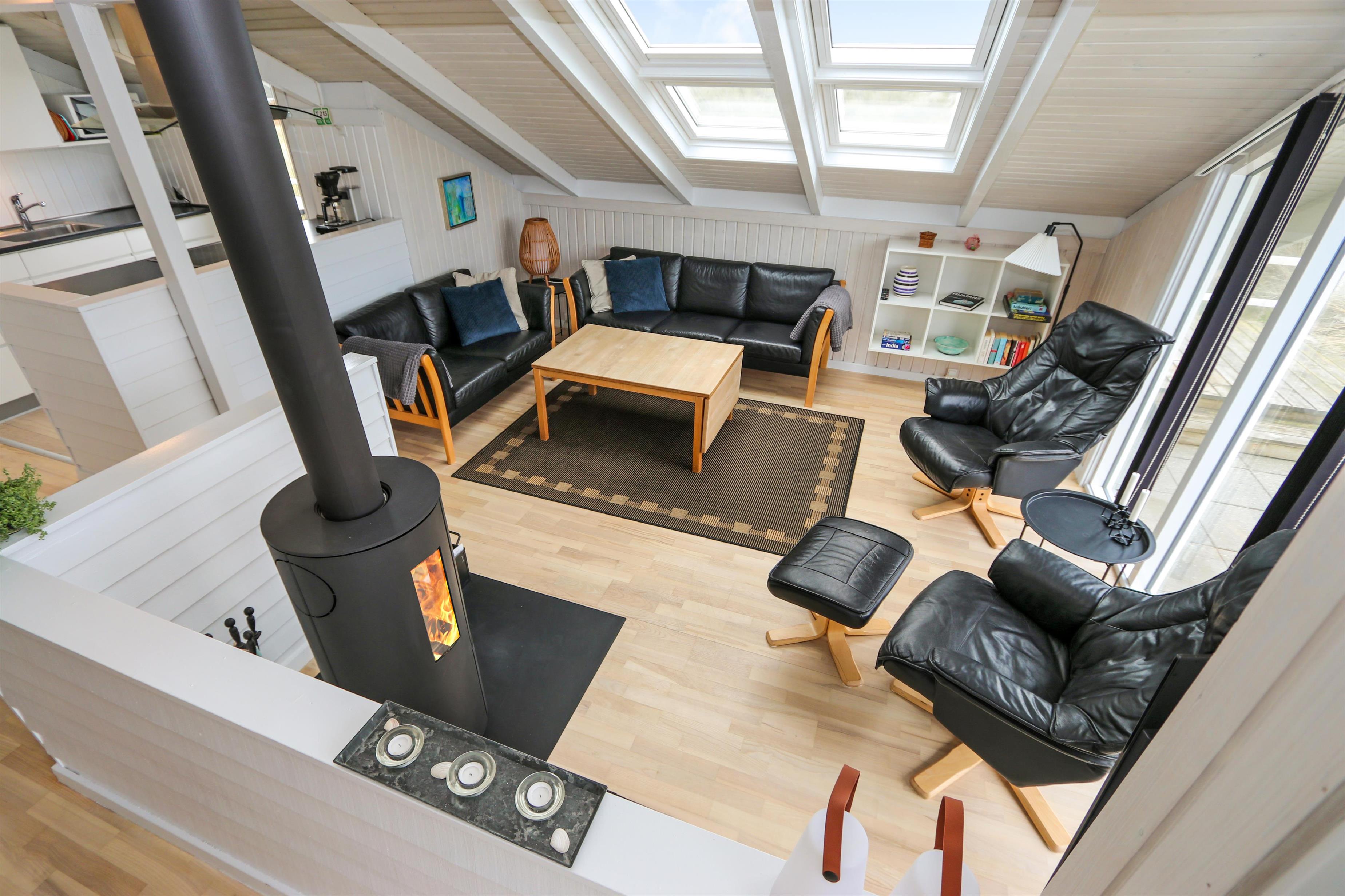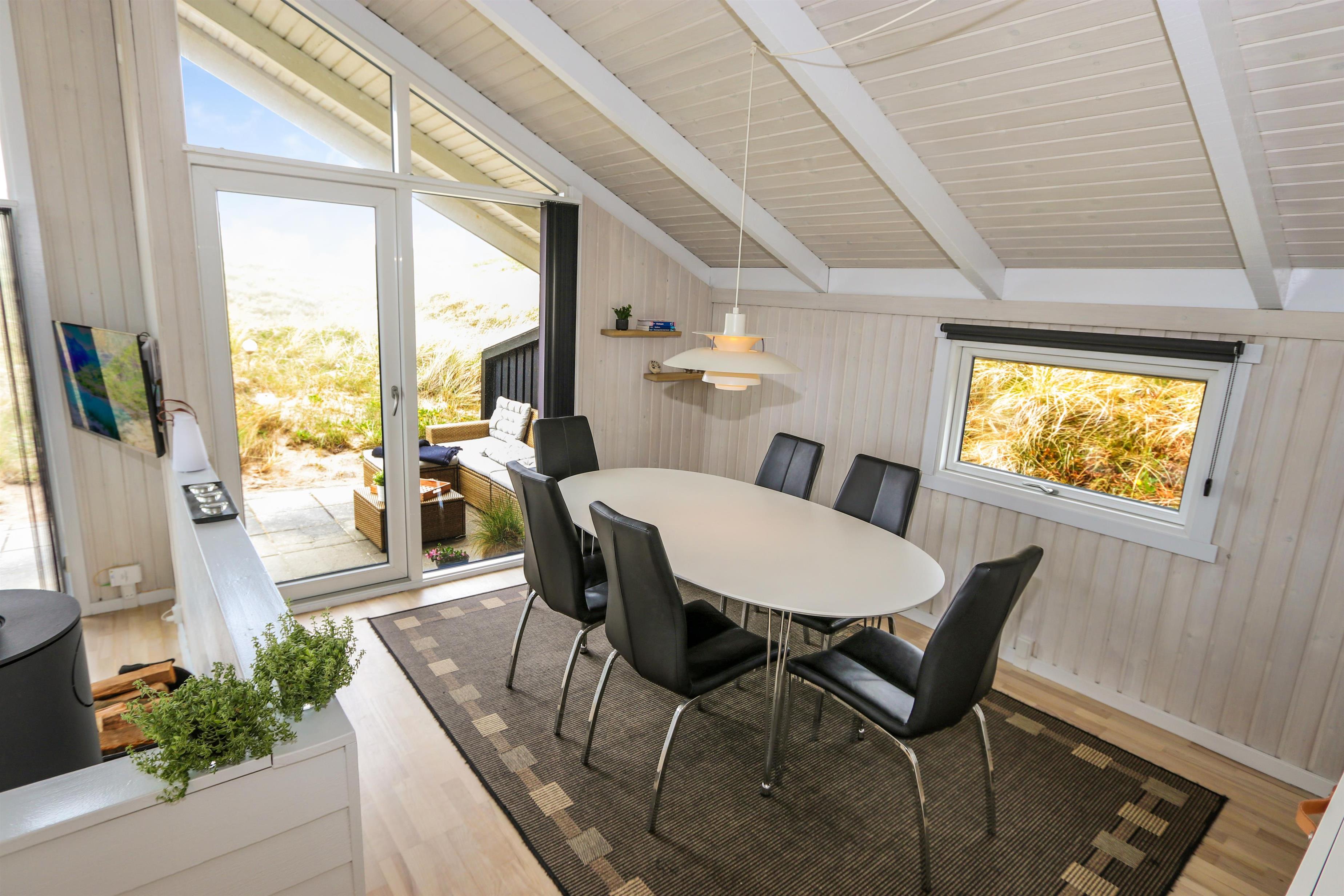 Offene Küche mit Wohn- und Essbereich, gut ausgestattet mit allen möglichen Geräten, u. a. Geschirrspüler, Mikrowelle und Kühlschrank mit Gefrierfach. Das Wohnzimmer ist zur Küche und zum Essbereich hin abgesenkt. Es ist eingerichtet mit komfortablen Möbeln, Flachbildschirm-TV mit dänischem (DR1) und deutschem Programm (Satellitenempfang). Setzen Sie sich auf die Couch vor den knisternden Holzofen, hören Sie Ihre Lieblings-CD und genießen Sie den Blick auf die Dünen. All das bietet das Haus für einen erholsamen Urlaub. 3 Schlafzimmer: 1 DB + 1 DB + 2 EB. Badezimmer mit Dusche, Toilette, Waschbecken, Sauna und Waschmaschine. Das Haus hat eine energiesparende Wärmepumpe installiert. Haustiere sind nicht erlaubt. Für Elektro-Autos gibt es beim Haus ein Auflader.