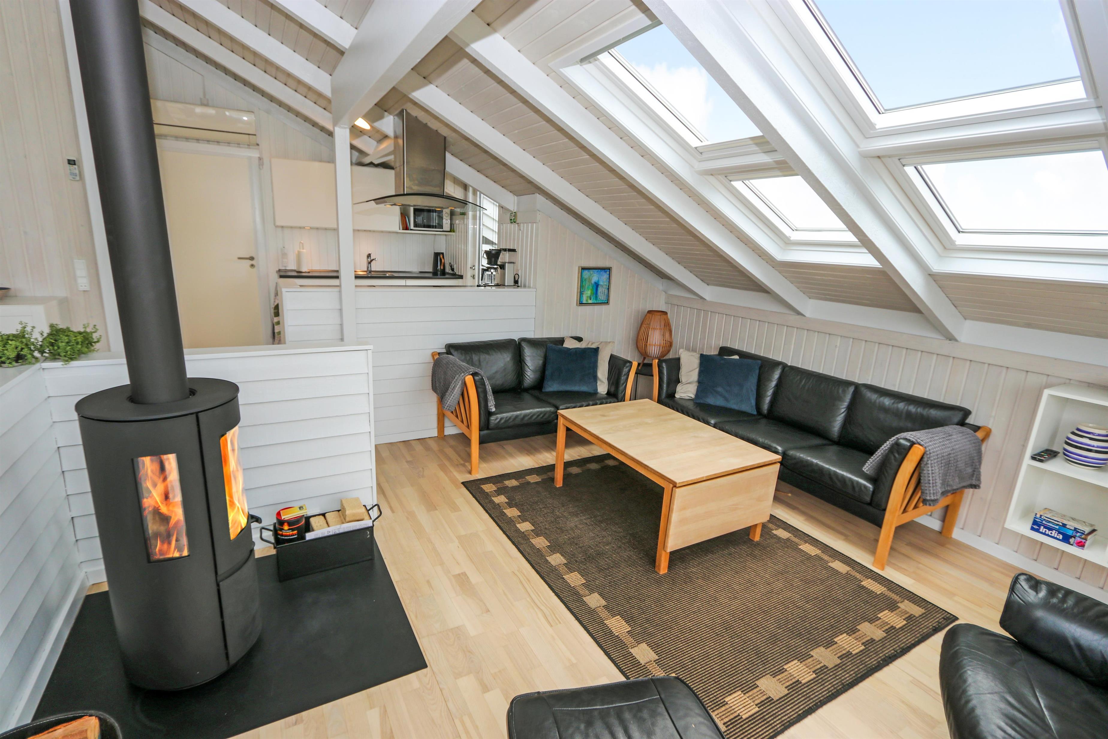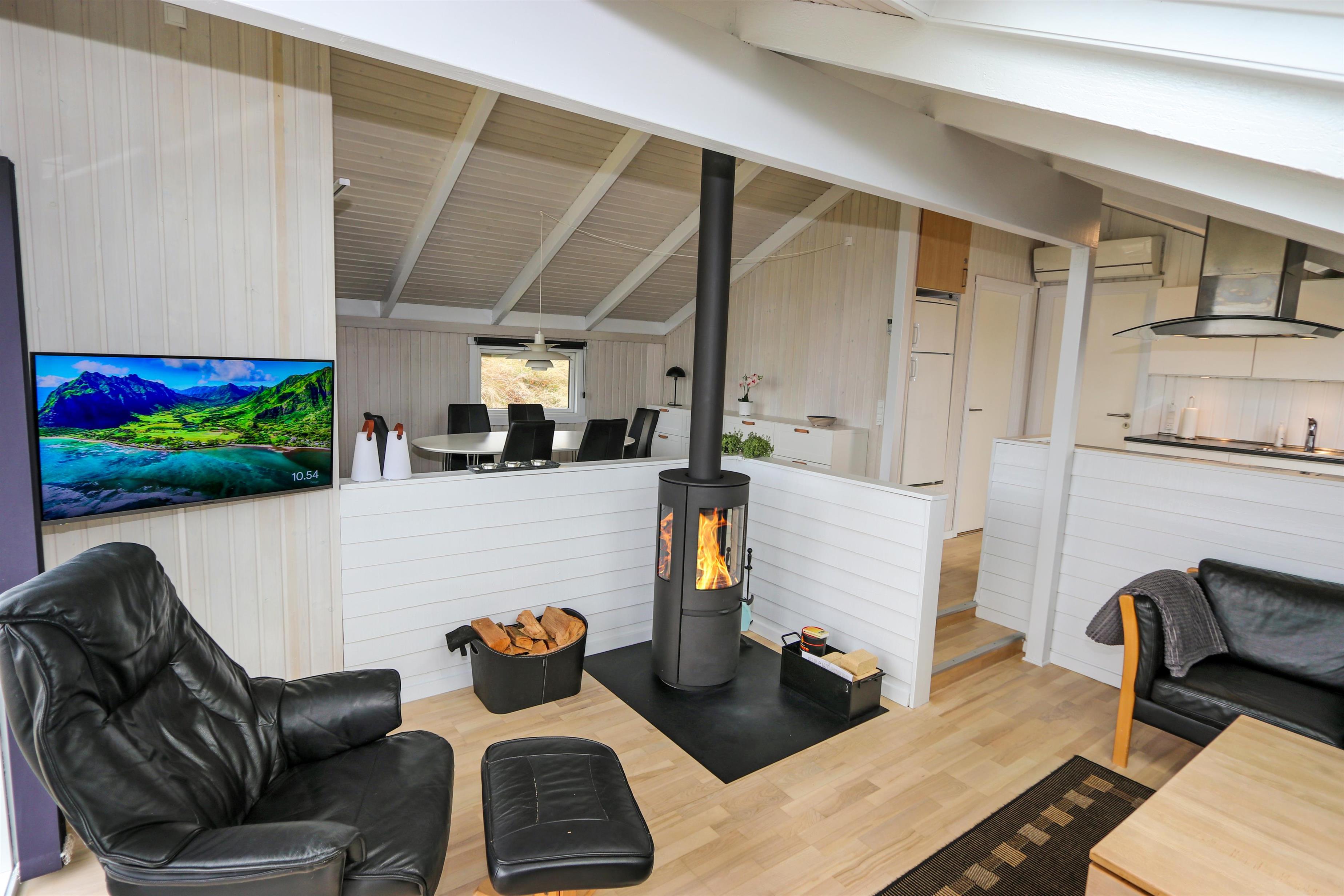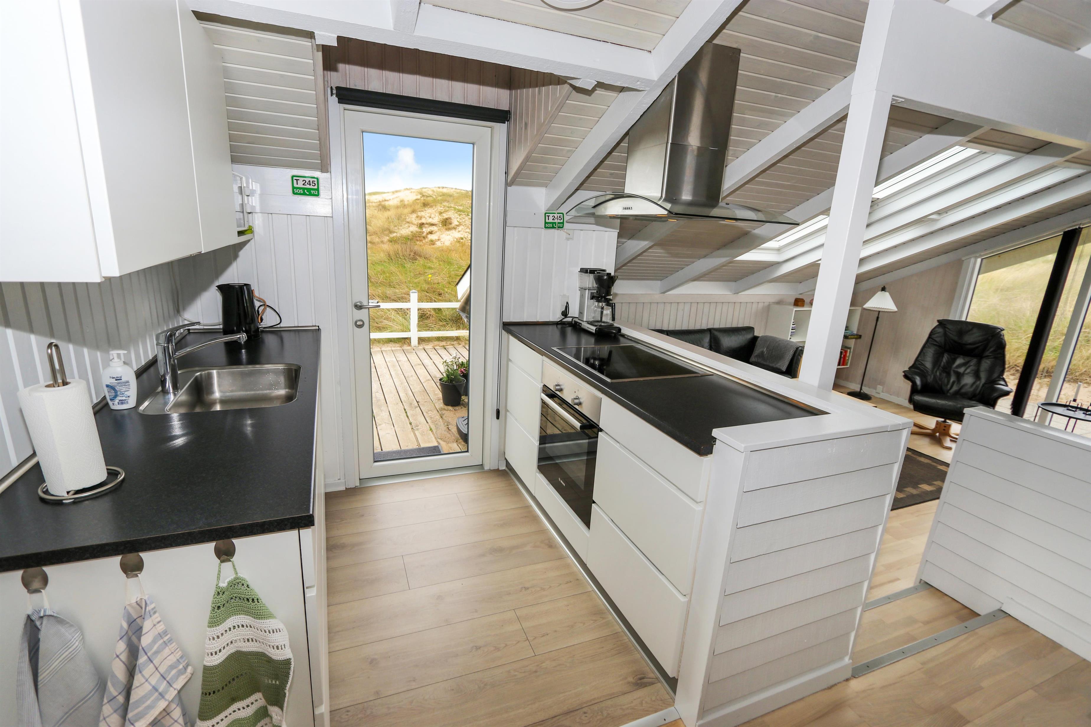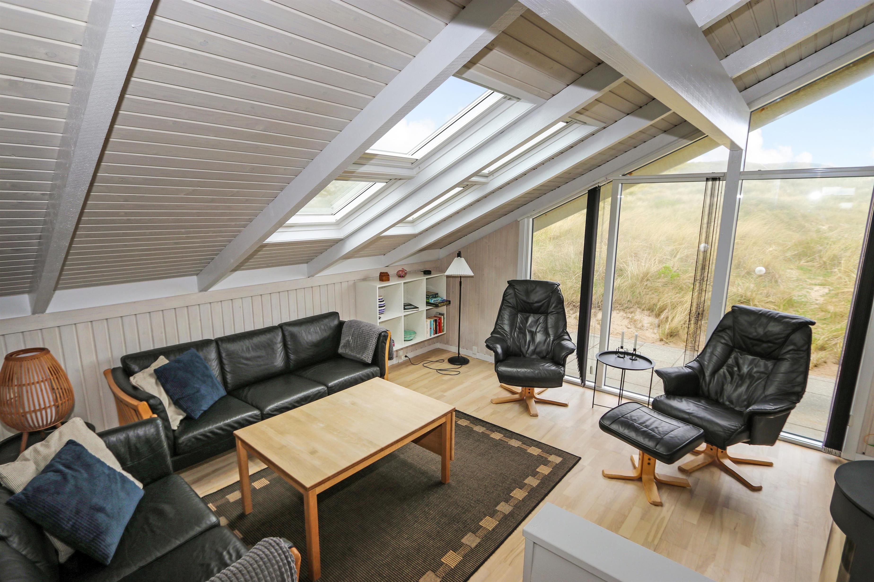 Offene Küche mit Wohn- und Essbereich, gut ausgestattet mit allen möglichen Geräten, u. a. Geschirrspüler, Mikrowelle und Kühlschrank mit Gefrierfach. Das Wohnzimmer ist zur Küche und zum Essbereich hin abgesenkt. Es ist eingerichtet mit komfortablen Möbeln, Flachbildschirm-TV mit dänischem (DR1) und deutschem Programm (Satellitenempfang). Setzen Sie sich auf die Couch vor den knisternden Holzofen, hören Sie Ihre Lieblings-CD und genießen Sie den Blick auf die Dünen. All das bietet das Haus für einen erholsamen Urlaub. 3 Schlafzimmer: 1 DB + 1 DB + 2 EB. Badezimmer mit Dusche, Toilette, Waschbecken, Sauna und Waschmaschine. Das Haus hat eine energiesparende Wärmepumpe installiert. Haustiere sind nicht erlaubt. Für Elektro-Autos gibt es beim Haus ein Auflader.