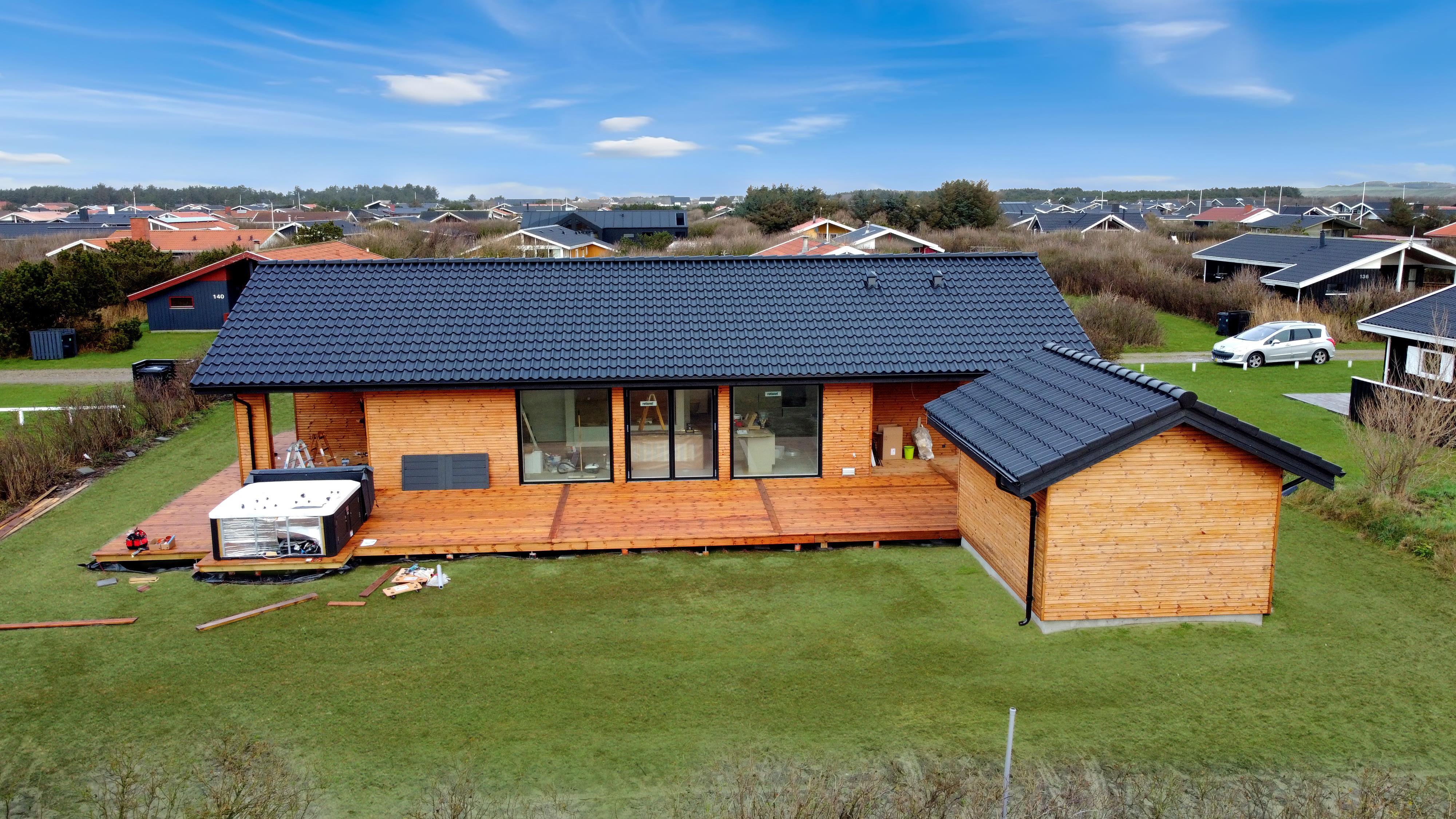 Das Ferienhaus befindet sich auf einem 812 m² großen Grundstück in fußläufiger Entfernung zu allen Einrichtungen in Vejlby Klit. In der Umgebung gibt es mehrere Spielplätze, einen Kaufmannsladen sowie das beliebte Restaurant John Wayne. Auch der Ferring See liegt nur wenige hundert Meter entfernt. Zur rauschenden Nordsee sind es lediglich ca. 350 Meter – ein kurzer Spaziergang führt Sie direkt dorthin.