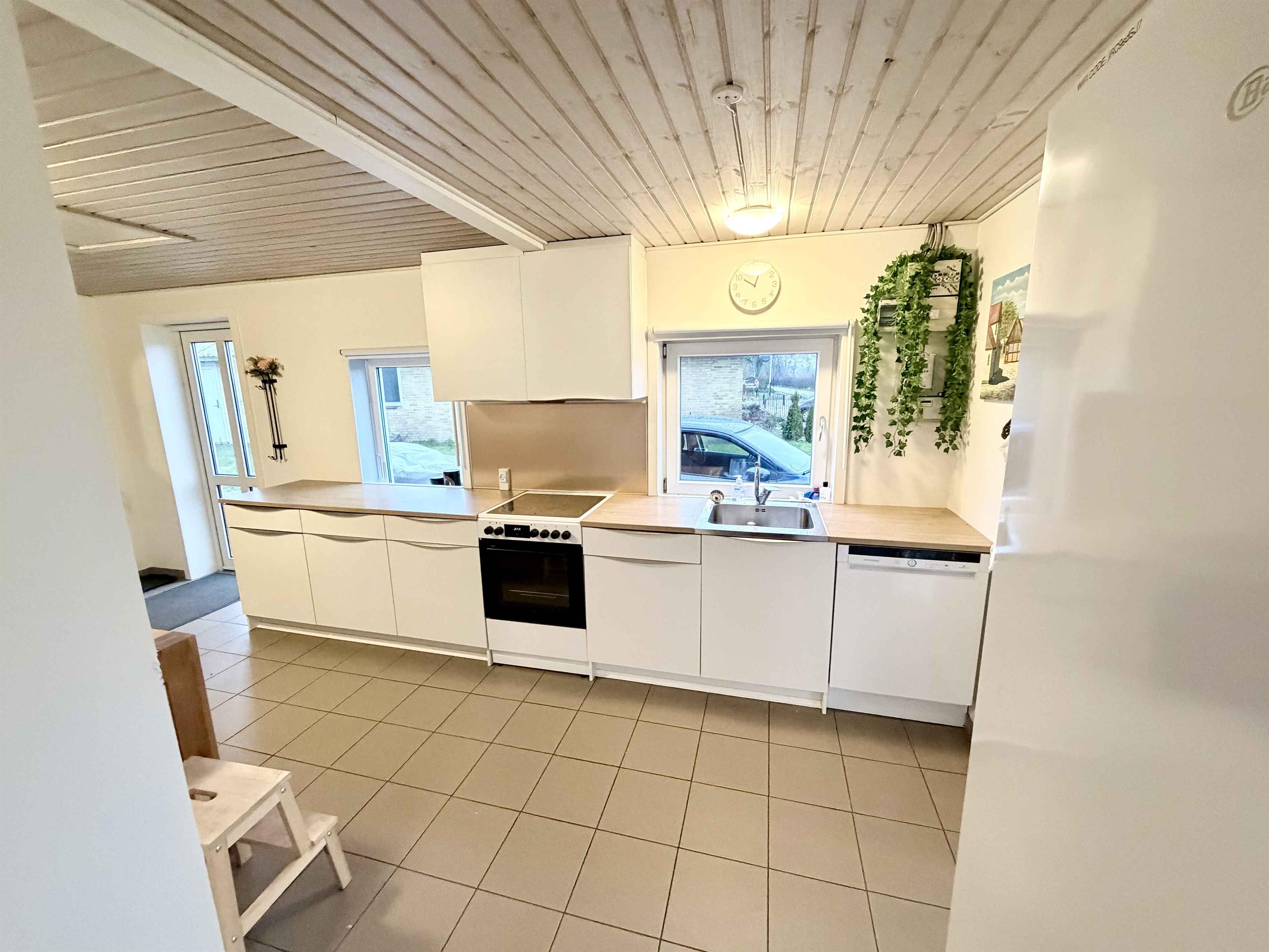 Have an unforgettable vacation in the beautiful nature of Thy, with this holiday home as your base, offering a stunning view of the Limfjord. The house is spacious, with room for the whole family, and provides 120 m² filled with relaxation and coziness. With three bedrooms and a total of 10 sleeping places, there's plenty of space for both friends and family. This inviting house is perfectly located for those seeking a vacation with plenty of outdoor activities. The home is bright and modern, with exposed brick and wooden walls. Enjoy your meals and cozy board game evenings around the long dining table, where you have a lovely view of the fjord. Relax in the soft living room furniture and talk about your plans for the next day while the fire crackles warmly in the stove. On the terrace, you can unwind after a long day of exploring and enjoy the long summer evenings with delicious grilled dishes. A holiday by the Limfjord offers unforgettable nature experiences, fantastic landscapes, swimming fun, and numerous activities for both children and adults. Go for bike rides and hikes in a diverse landscape that includes forests, lakes, and heathland. The house is located next to a campsite where you can use their pool for a fee. Have a great vacation!