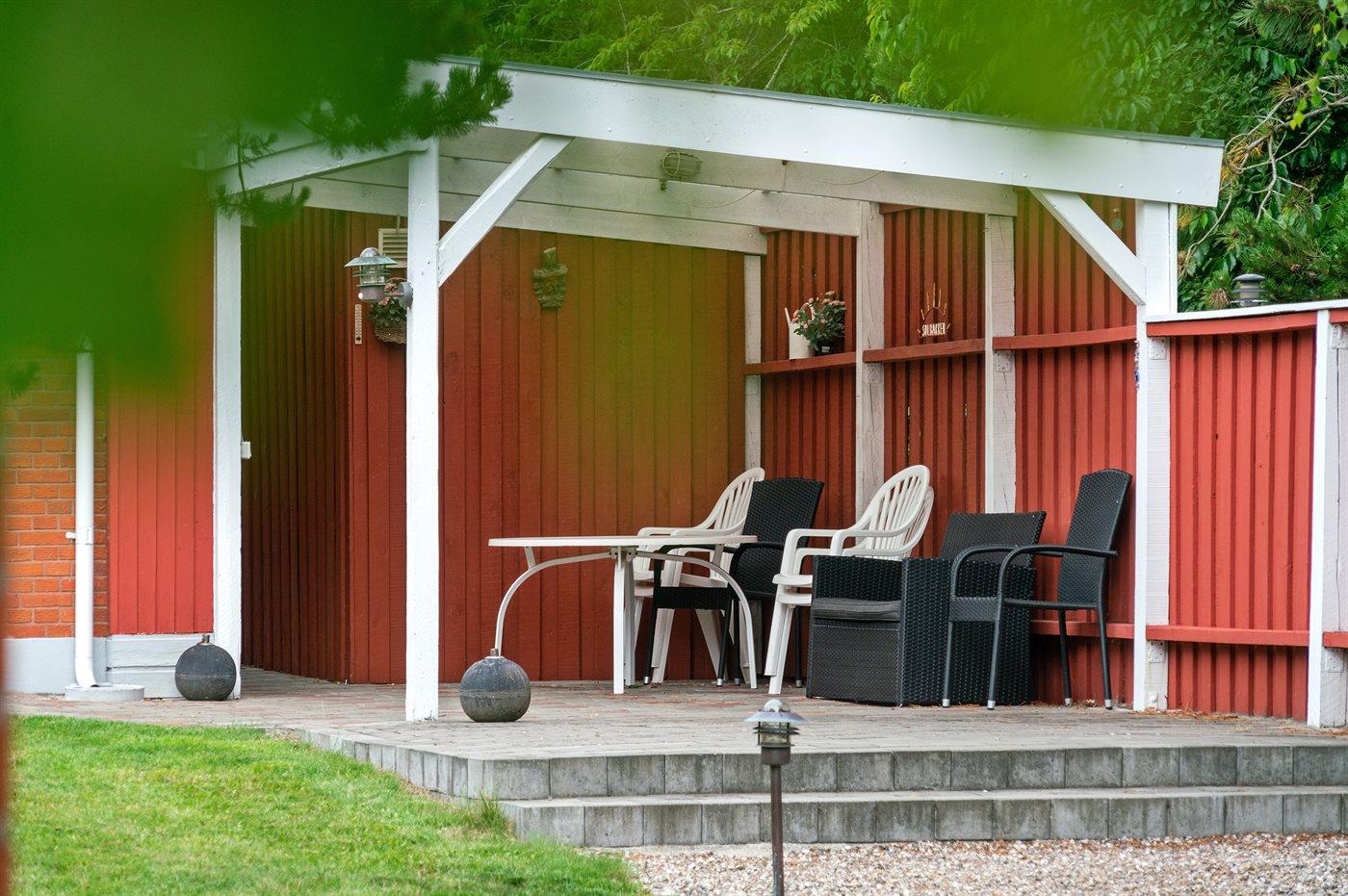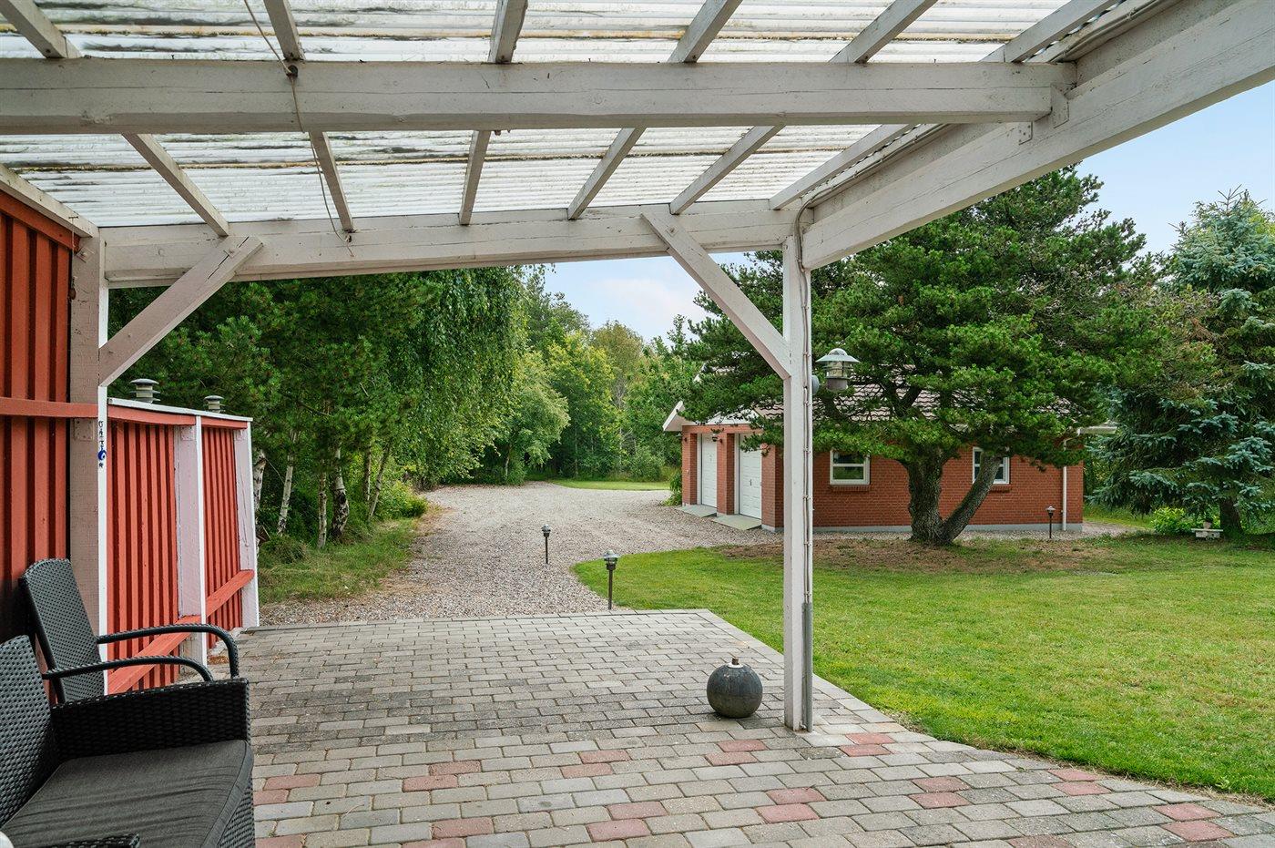 Ferieboligen er beliggende på en 8500 m² stor naturtomt. Avstand til hav er 2700 m.Avstand til Vadehavet er 800 m. Nærmeste butikk ligger i en avstand på 2300 m. Golfbane i en avstand på 2500 m. Til ferieboligen hører 55 m² terrasseareal. I tillegg er det 15 m² overdekket terrasse. P-plass ved huset.