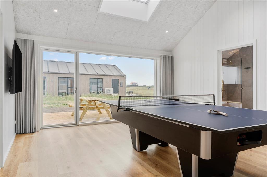 Beim Betreten des Hauses empfängt dich eine elegante und einladende Einrichtung mit hochwertigen Materialien und viel Liebe zum Detail. Der Wohnbereich mit offener Verbindung zwischen Küche und Wohnzimmer bildet das Herzstück des Hauses – ideal für gemeinsames Kochen, Essen und Zusammensein. Wenn es Zeit zum Entspannen ist, lädt die Sauna mit Blick auf die Terrasse zu Wärme und Wohlbefinden ein – so bleibst du trotzdem ganz nah am Draußenleben. Wer den Wettbewerb liebt, kommt im Aktivitätsraum auf seine Kosten, denn hier steht ein Billardtisch für kleine Turniere und viel Spaß bereit. Alles in allem ein perfekter Ort für einen Urlaub mit Familie oder Freunden, bei dem jeder genau das richtige Maß an Ruhe oder Aktivität finden kann.
