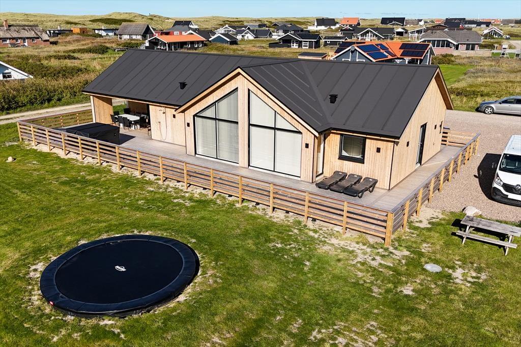 In der Slettevej 45 in Vrist erwartet dich ein modernes und stimmungsvolles Ferienhaus, das alles bietet, was das Urlauberherz begehrt – und noch ein bisschen mehr. Das Haus ist perfekt für alle, die Wert auf stilvolle Details, viel Platz und schöne Außenbereiche legen, in denen sich Erwachsene, Kinder und Hunde gleichermaßen wohlfühlen können. Mit Aktivitätsraum, Außenwhirlpool und Trampolin im Garten gibt es reichlich Möglichkeiten für Erholung und Spiel – und der Strand ist auch nicht weit entfernt.