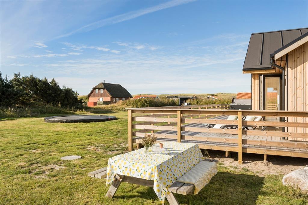 Der herrliche Terrassenbereich des Ferienhauses ist wie geschaffen für das Leben im Freien und für entspannte Momente an der frischen Luft. Der einladende Außenwhirlpool ist der perfekte Ort, um die Muskeln zu lockern, während du die frische Nordseeluft genießt. Nach einem Bad in der Nordsee oder einem Sprung in den Whirlpool ist die Außendusche ideal, um sich abzuduschen – oder du lässt dich einfach von der Sonne trocknen, während du auf einer Liege entspannst. Der Garten bietet auch ein Trampolin, das sicherlich vor allem bei den jüngsten Familienmitgliedern gut ankommt – und mit reichlich Platz für Spiel und Erholung ist für jeden etwas dabei. Die teilweise überdachte Terrasse sorgt dafür, dass du das Draußensein bei jedem Wetter genießen kannst – und es ist leicht, sich hier lange, laue Sommerabende mit Grill, Nähe und Gelächter unter freiem Himmel vorzustellen.