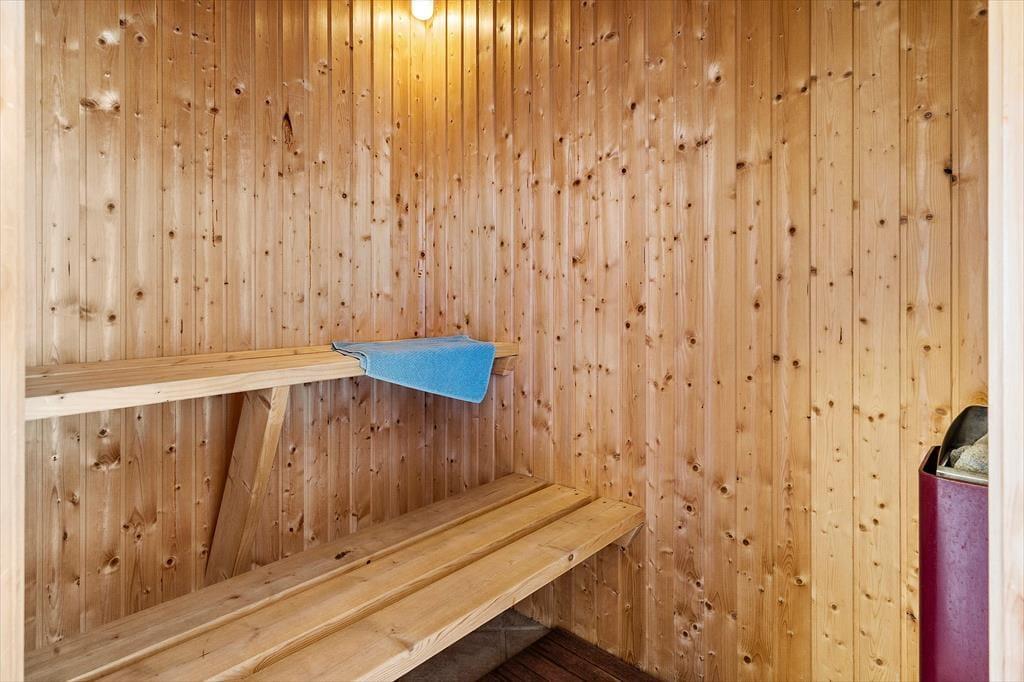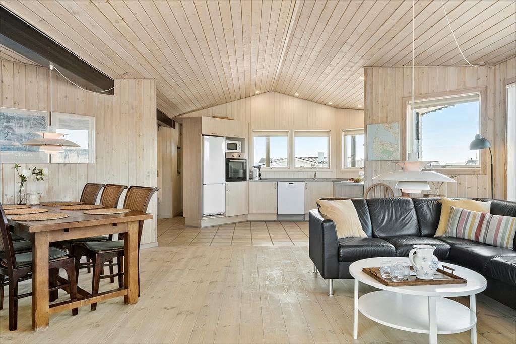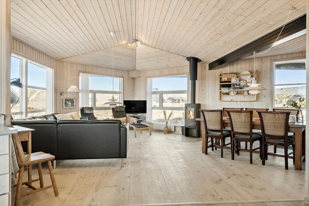 Das Erste, was dir im Ferienhaus auf Gloryvej 43 begegnet, ist ein heller und freundlicher Wohnbereich mit großen Fenstern, die das Tageslicht ins Haus holen und eine luftige, entspannte Atmosphäre schaffen. Der offene Grundriss zwischen Wohnzimmer und Küche lädt zum Beisammensein und Entspannen ein, und der gemütliche Kaminofen in der Mitte des Wohnzimmers wird schnell zum natürlichen Treffpunkt, wenn draußen der Wind weht. Zum Haus gehört auch ein schöner, heller Hems – ein zusätzliches, einladendes Plätzchen, in dem sich Kinder ihre eigene kleine Höhle zum Spielen oder Lesen einrichten können. Das Badezimmer ist modern und funktional und verfügt über eine schöne Sauna – ein Hauch von Luxus, der deinen Urlaub besonders macht. Kurz gesagt: Hier findest du alles, was du brauchst, um die Ferientage in Ruhe und Geborgenheit zu genießen.