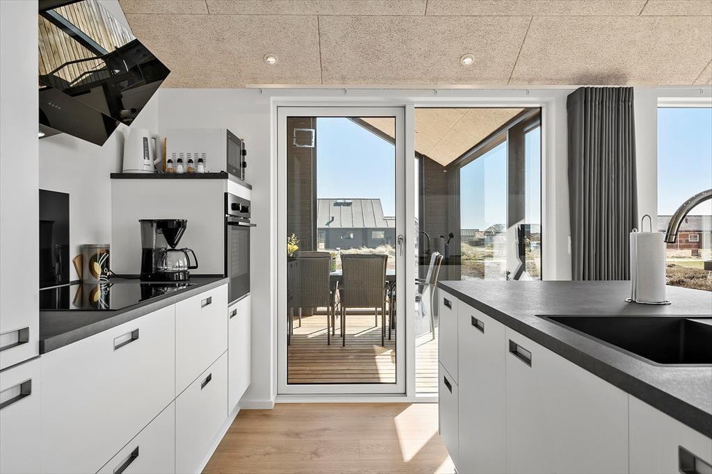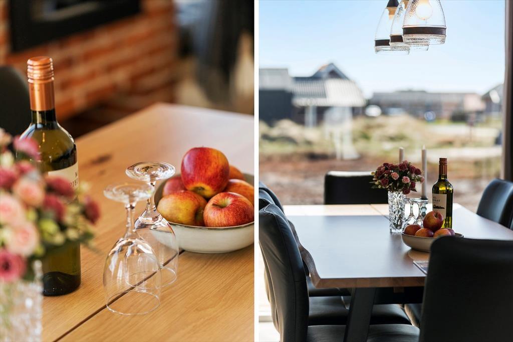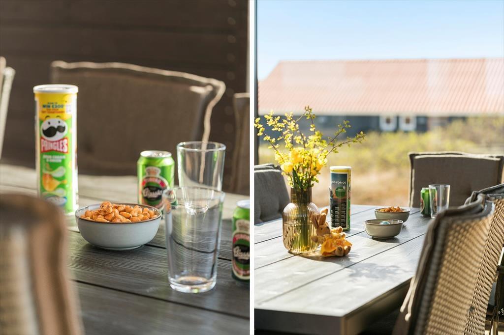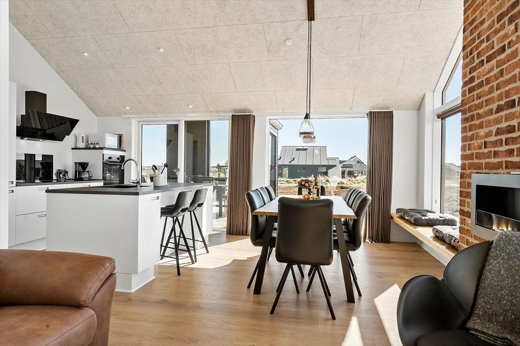 Wenn Sie das Ferienhaus in Charlottevej 6 betreten, werden Sie von hellen und geräumigen Räumen empfangen. Das Haus ist sowohl funktional als auch gemütlich eingerichtet und bietet somit die perfekte Basis für Ihren Urlaub. Das Wohnzimmer und die Küche sind offen miteinander verbunden, was das gemeinsame Kochen und gemütliche Stunden erleichtert. Große Fenster sorgen für viel natürliches Licht und bieten einen wunderschönen Blick auf die umliegende Natur. In den vier Schlafzimmern des Ferienhauses können Sie eine erholsame Nacht genießen.