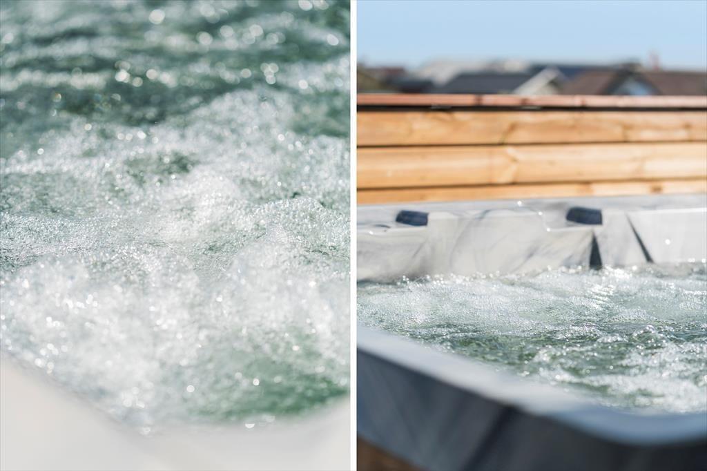 Der Außenwhirlpool ist eines der absoluten Highlights des Ferienhauses. Hier können Sie sich im warmen Wasser entspannen, egal ob der Tag Sonnenschein oder kühlere Temperaturen bringt. Der Whirlpool ist ideal für gemütliche Abende unter dem Sternenhimmel, wo Sie im warmen Wasser versinken und die Urlaubsstimmung auf sich wirken lassen können. Die Terrassenumgebung des Ferienhauses bietet außerdem mehrere schöne Plätze, um die Sonne oder ein gutes Buch zu genießen.