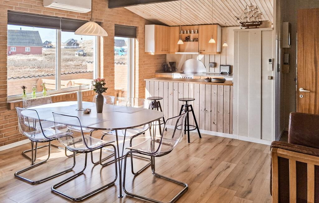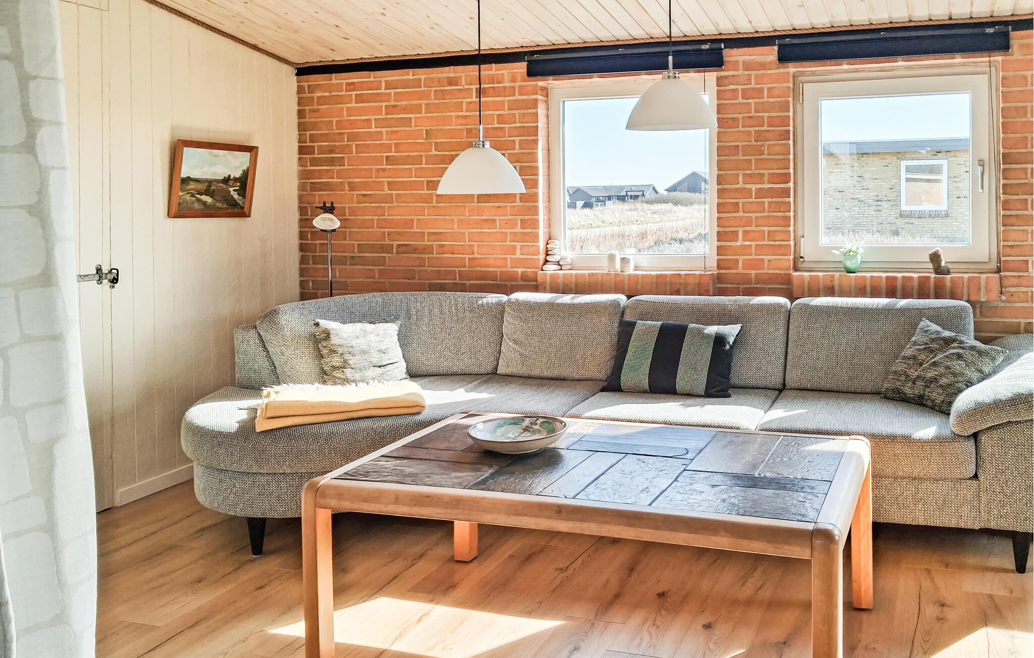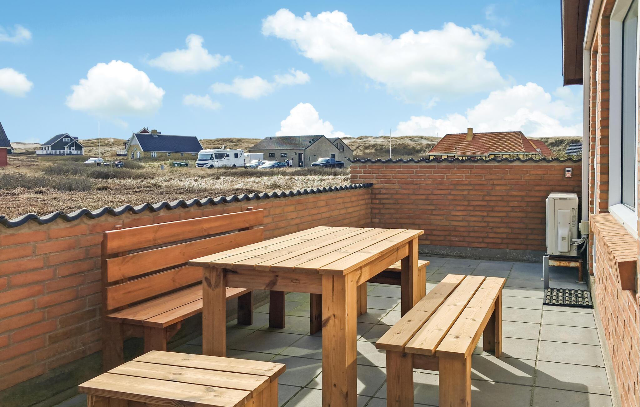 Hva er vel bedre enn å tilbringe ferien bare noen få meter fra en bred og vakker sandstrand ved Nordsjøen? Det er akkurat det du kan oppleve i dette velutstyrte feriehuset. De lyse rommene danner en perfekt ramme for familieferien, som dere kan starte med en felles frokost på det åpne kjøkkenet. Spis i spisestuen eller på den solfylte terrassen, og slapp av om kvelden i sofaene og varm deg ved vedovnen mens du ser på favorittfilmen din. Huset har alt du trenger for å føle deg hjemme, og i hagen er det plass til å grille eller leke med barna.