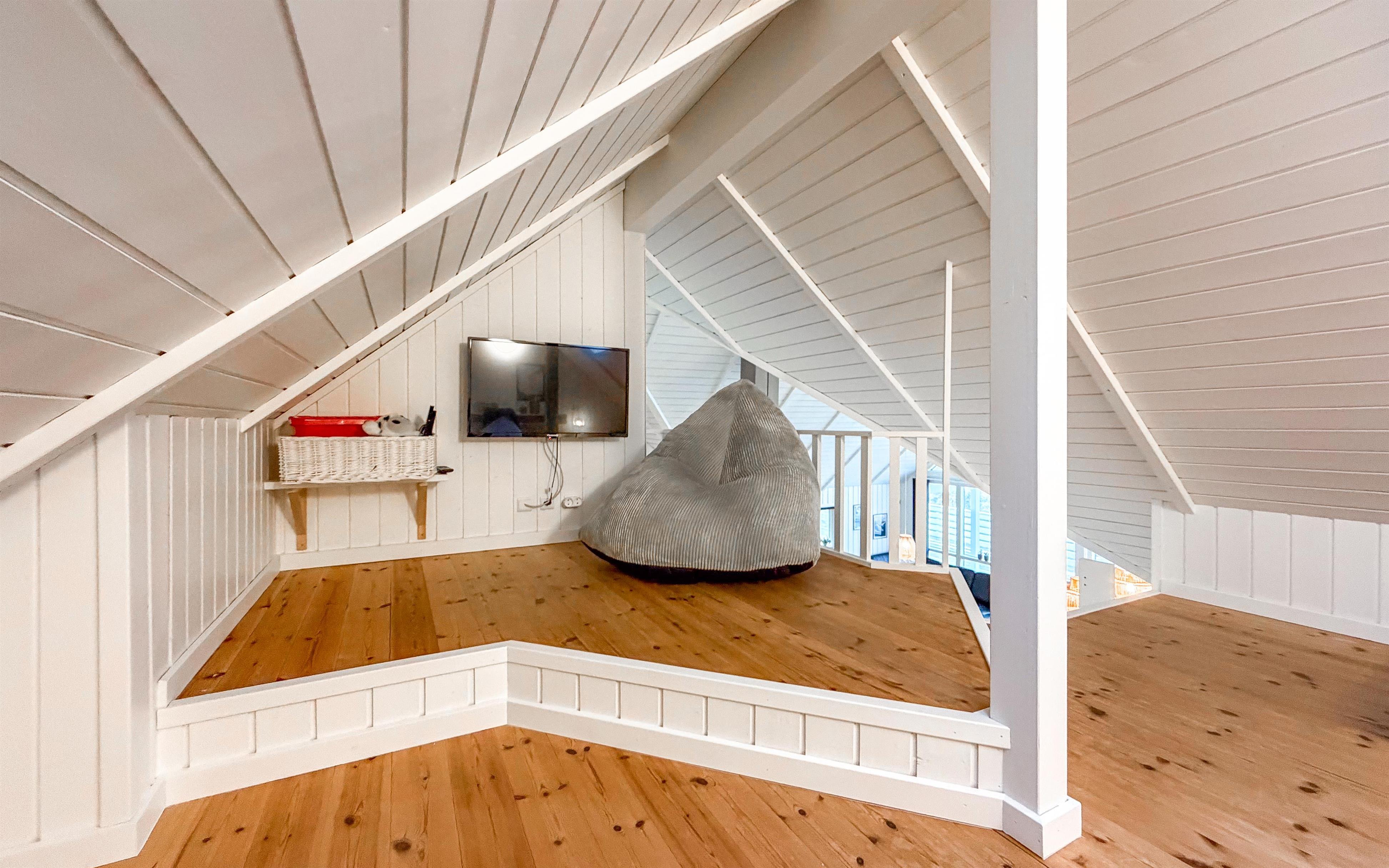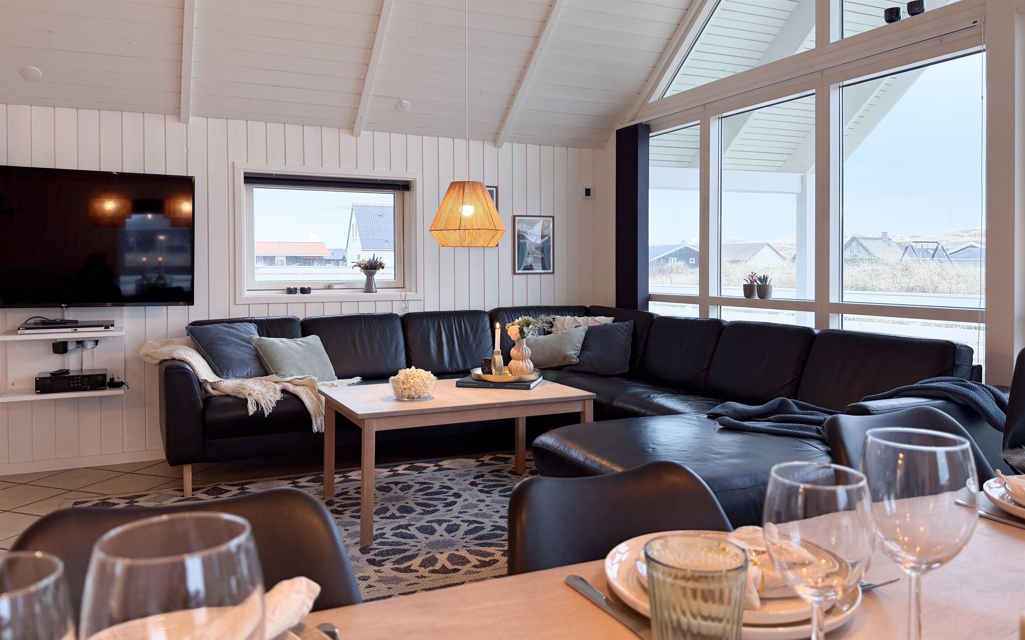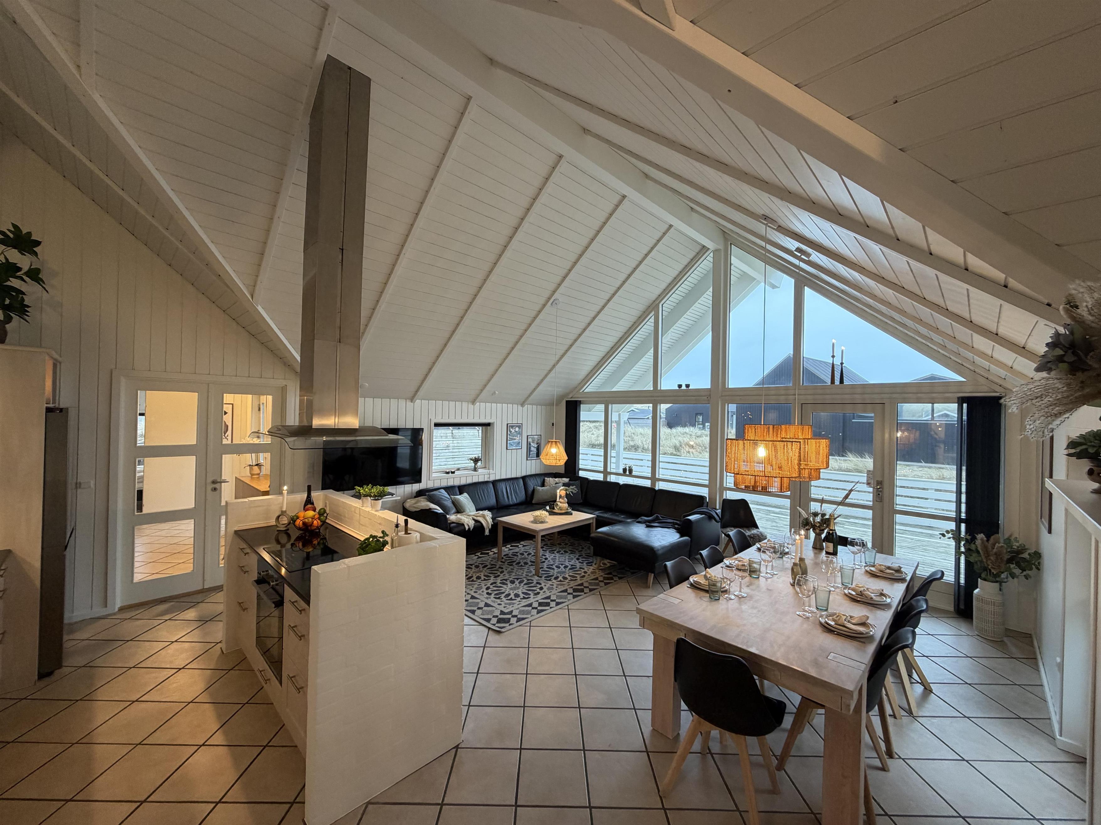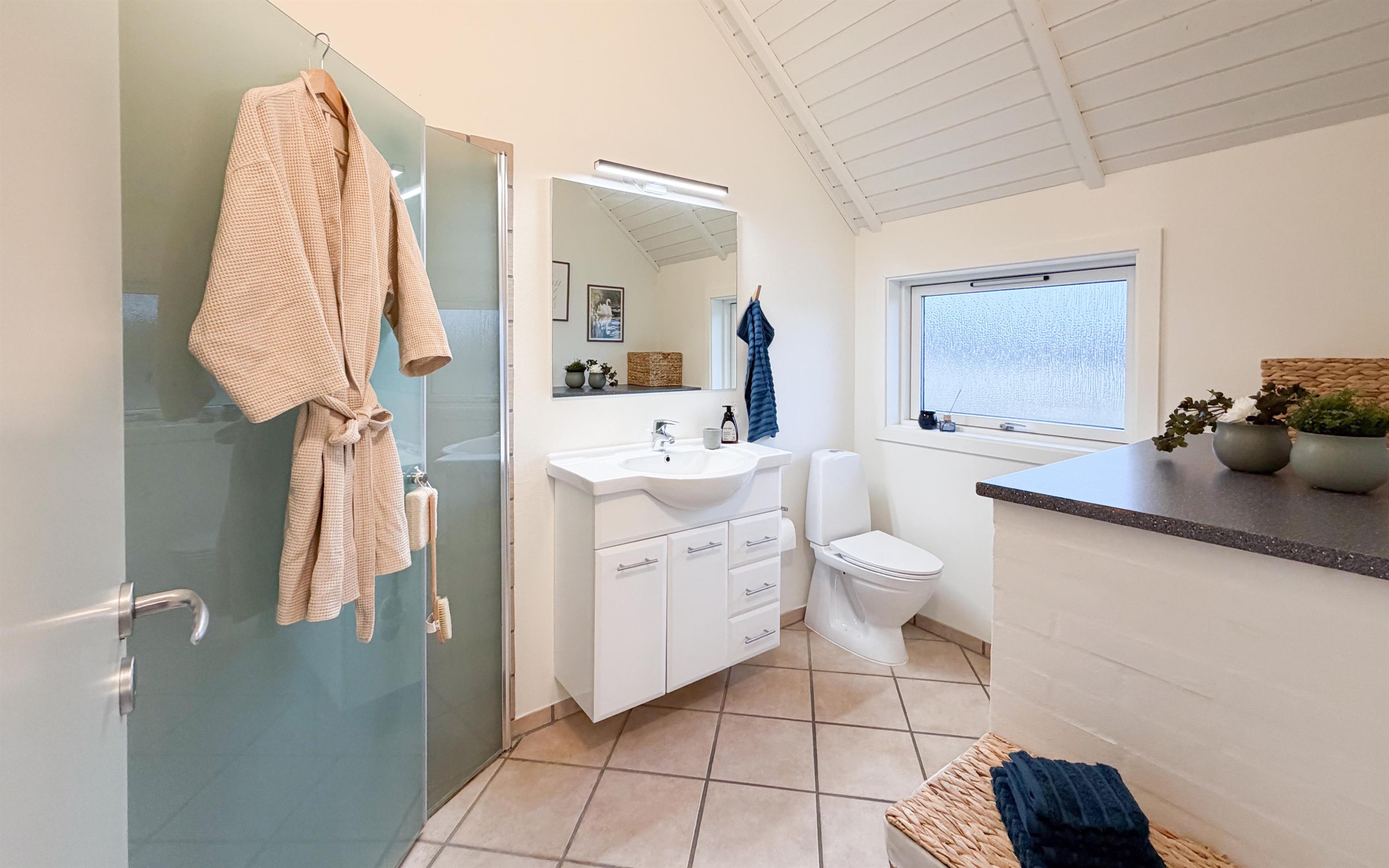 Im Inneren bietet das Haus 125 m² Wohnfläche mit einer durchdachten Raumaufteilung. Es gibt vier Schlafzimmer mit insgesamt vier Doppelbetten und einen Hems mit zwei Einzelbetten sowie zwei Badezimmer mit Dusche und WC. Eines der Badezimmer ist zusätzlich mit Waschmaschine und Trockner ausgestattet. Der natürliche Treffpunkt des Hauses ist der gemütliche Wohnbereich in offener Verbindung mit der Küche, wo Sie nach einem Tag am Meer gemeinsam kochen, essen oder entspannen können. Die Küche ist gut ausgestattet mit Herd, Dunstabzugshaube, Geschirrspüler, Mikrowelle, Kühlschrank, Gefrierschrank (60 l) sowie Kaffeemaschine. In Teilen des Hauses sorgt eine für zusätzlichen Komfort.