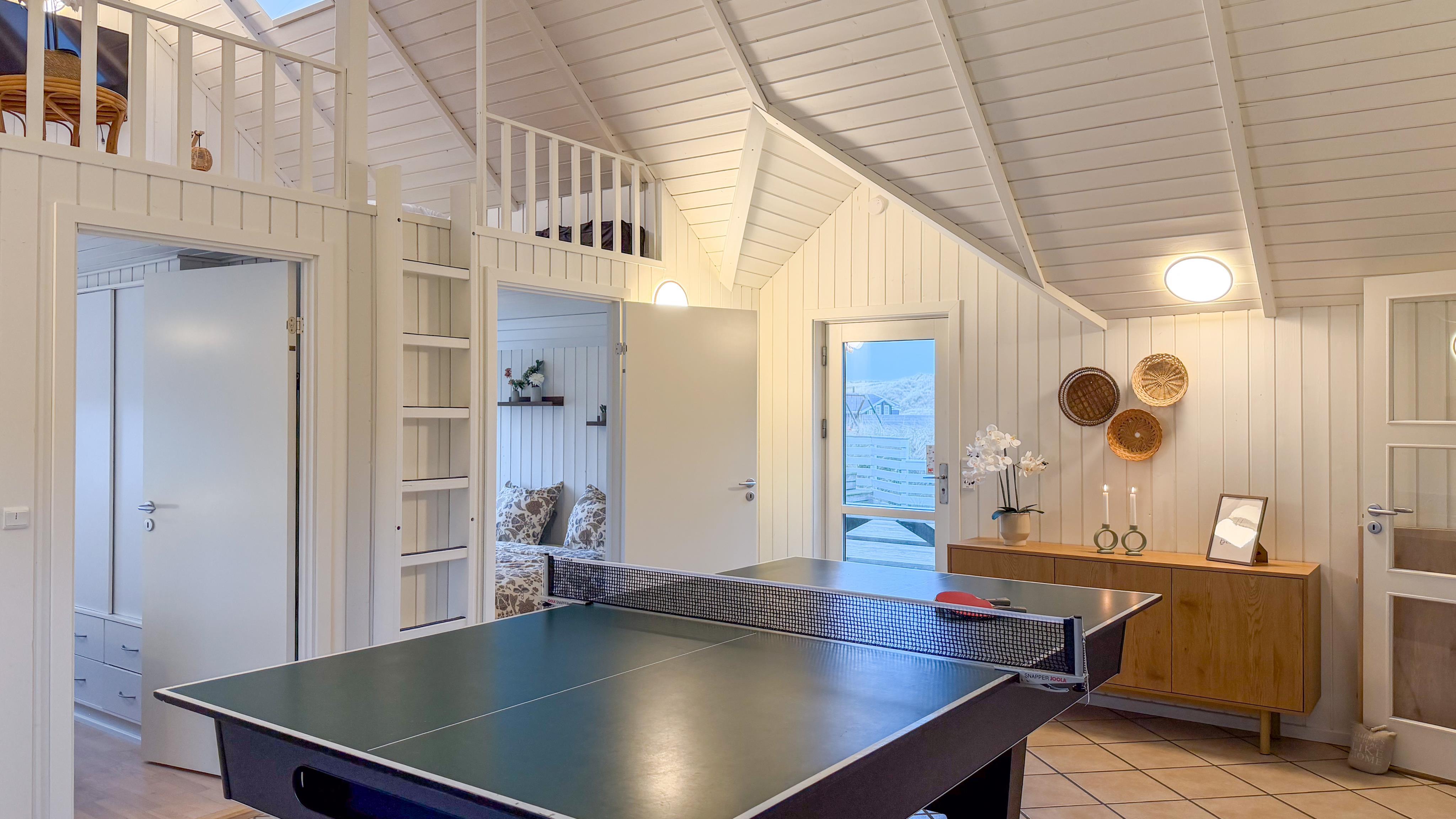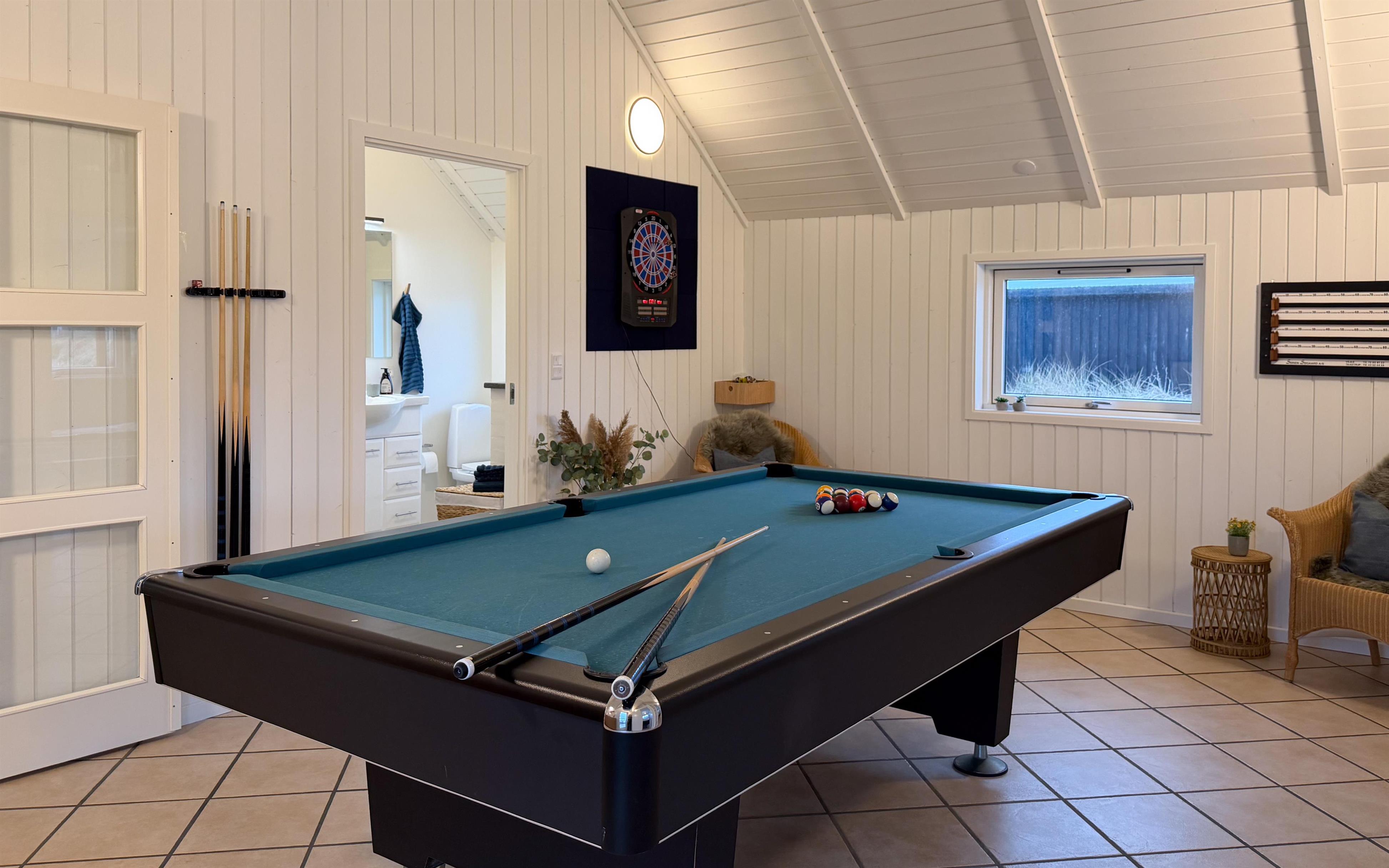 Draußen können Sie die Urlaubstage auf der geschlossener Terrasse mit Gartenmöbeln und Grill genießen und nach langen Strandspaziergängen die Abendsonne auskosten. Der Außenwhirlpool lädt zu entspannenden Momenten unter freiem Himmel ein. Für die kleinsten Gäste gibt es eine Schaukel und viel Platz zum Spielen auf dem großen Naturgrundstück. Die Umgebung von Vrist bietet zahlreiche Freizeitmöglichkeiten – versuchen Sie sich im Windsurfen, spielen Sie eine Runde Minigolf oder genießen Sie die Ruhe beim Angeln. Einkaufsmöglichkeiten befinden sich etwa 600 Meter vom Haus entfernt, das nächste Restaurant liegt rund 3 km entfernt. Ein Ausflug in den charmanten Hafenort Thyborøn mit dem Kystcentret und dem JyllandsAkvariet lohnt sich ebenfalls. Auch der Nationalpark Thy mit seinen beeindruckenden Dünenlandschaften und seiner reichen Tierwelt ist gut erreichbar.