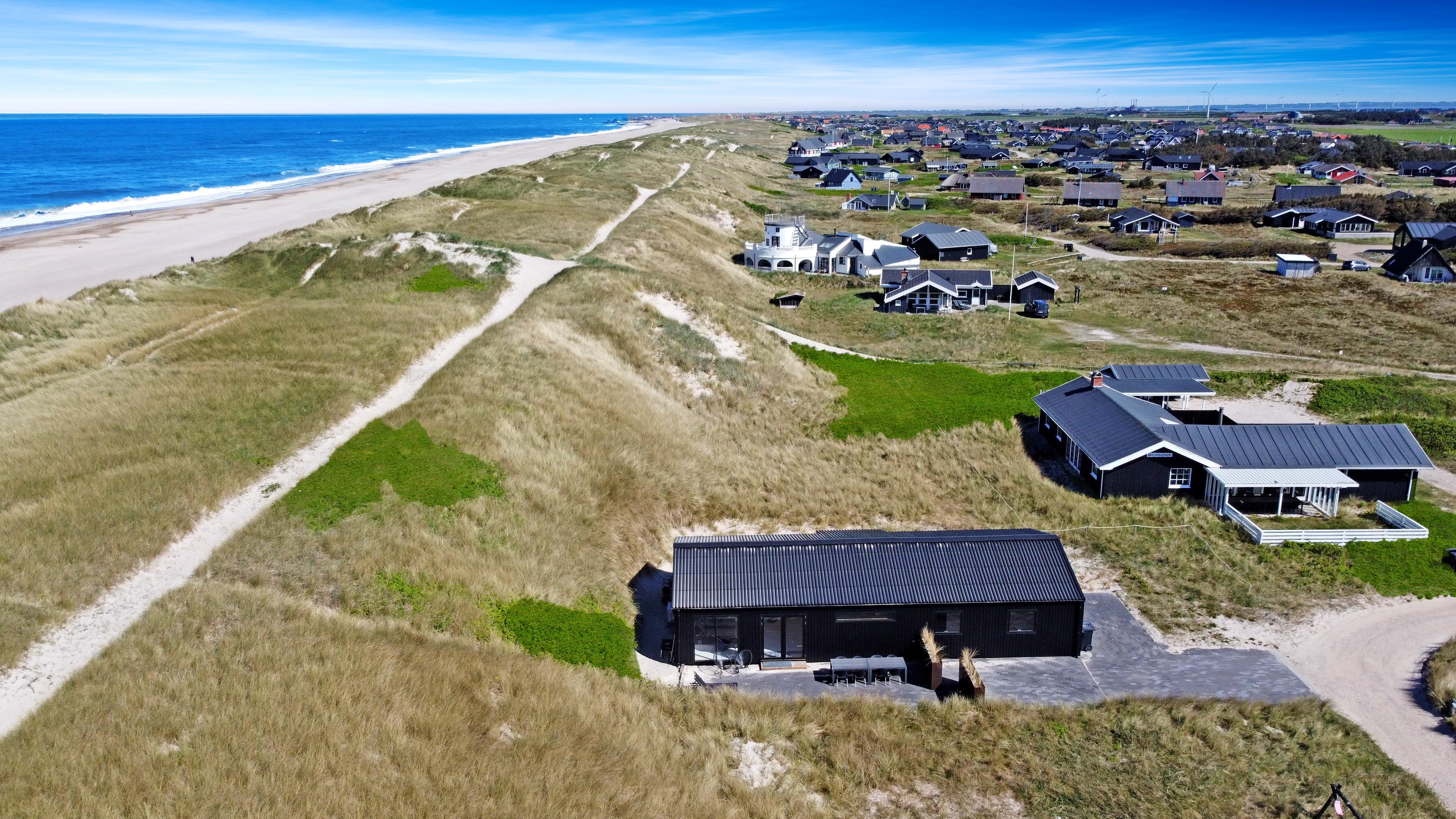 Das Haus liegt auf einem etwa 1.400 qm großen Dünengrundstück gerade vor dem Teich in Vrist. Es gibt eine schöne Terrasse, die bis zu den Dünen geht. Hier haben Sie Gartenmöbel, Sonnenliegen und Gas-Grill, die Sie nach Bedarf umstellen können. Wenn Sie auf der Terrasse sind, dann liegt das Haus so dicht an der Nordsee, dass Sie die Wellen hören können, und die Lage nur 50 m vom Haus zur Nordsee macht es einfach den Strand zu erreichen. Es gibt einen markierten Weg der zum Strand führt. Der Aufenthalt und das Klettern in den Dünen hinter dem Haus und entlang des Grundstücks ist nicht gestattet, da dies die Vegetation zerstört und die Sandverwehung verstärkt. Die Nordsee bietet jeden Tag neue malerische Erlebnisse und es gibt viele verschiedene Aktivitäten, die man am Strand unternehmen kann, wie zum Beispiel Schwimmen, Angeln, Sandburgen bauen, Drachen steigen lassen, Steine ??und Bernstein sammeln oder einfach nur sitzen und das Leben genießen und den Wind spüren, Sand und Salz im Gesicht. Vom Haus aus ist es nur eine kurze Fahrt zum Fischerort Thyborøn, der gute Restaurants, Geschäfte und Sehenswürdigkeiten bietet. Ebenso ist es mit dem Auto nicht weit nach Lemvig, das über eine schöne Hafenpromenade, gute Geschäfte und mehrere gute Restaurants verfügt. Ein Haus für diejenigen, die eine schöne Lage fast am Strand wünschen.