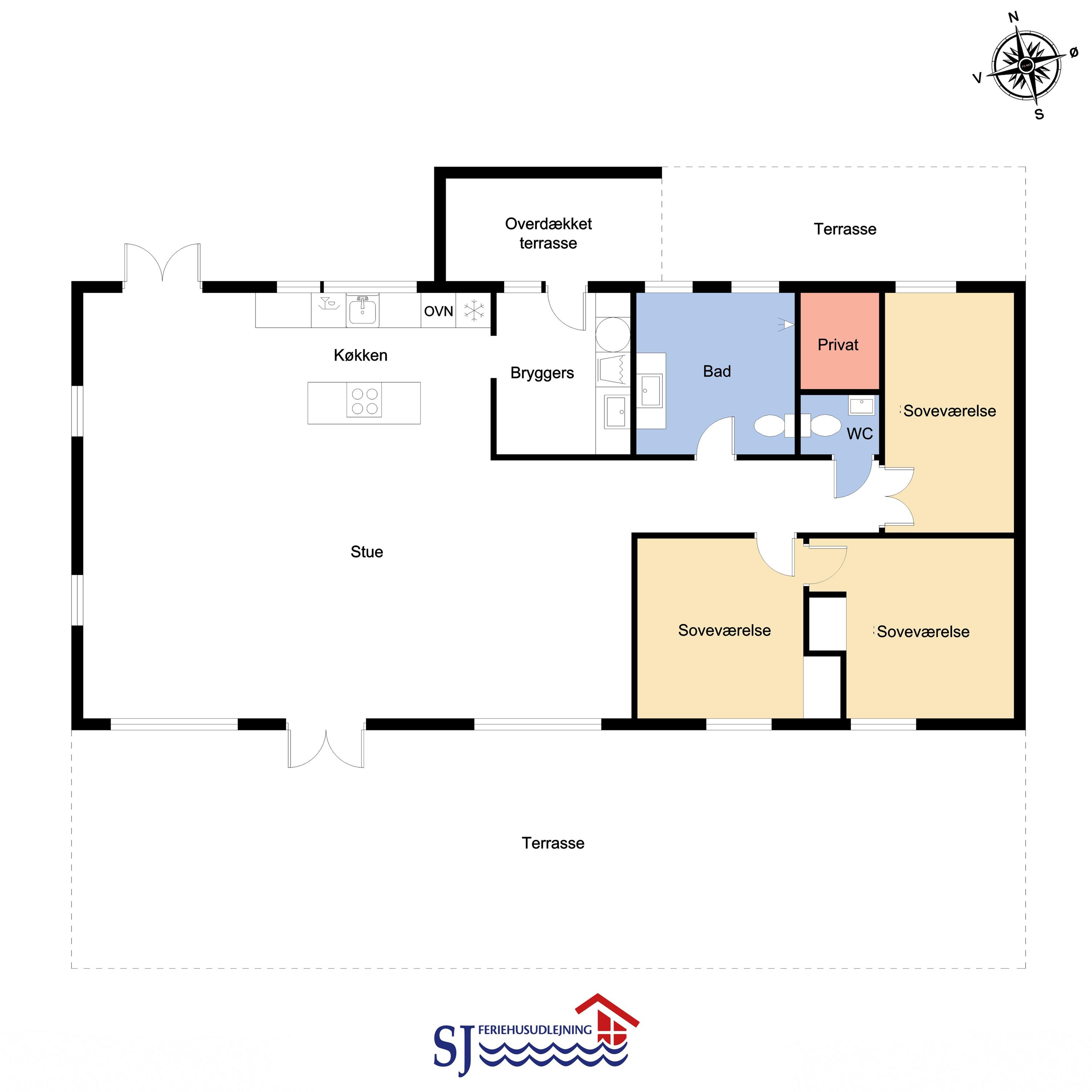 Dieses neu renoviertes Alternativ eingerichtetes Ferienhaus aus Holz ist mit einer kombinierten Küche und Wohnraum ausgestattet. Der Wohnraum ist mit Polstermöbeln, Esstisch und einer Wärmepumpe, die auch dabei hilft, die Nebenkosten-Rechnung niedriger zu machen. Es gibt auch ein TV mit Glasfasernetz-TV mit deutschen und dänischen Programmen. Die Küche ist ausgestattet mit einer Induktions-Herdplatte, eingebautem Ofen, Kühl-/Gefrierschrank und Geschirrspüler. Es gibt 3 gute Schlafräume jeweils mit 1 DB. Zwei von den Schlafräumen haben ein DB von 180x200 und ein Schlafzimmer hat ein DB 140x200 groß. 1 Badezimmer mit Toilette, Waschbecken, Dusche und Fußbodenheizung. Gäste-WC mit Toilette und Waschbecken. Außerdem gibt es auch im Haus eine Waschmaschine und einen Trockner. Es gibt freies Glasfasernetz und 1 Haustier ist erlaubt. Nichtraucher-Haus.