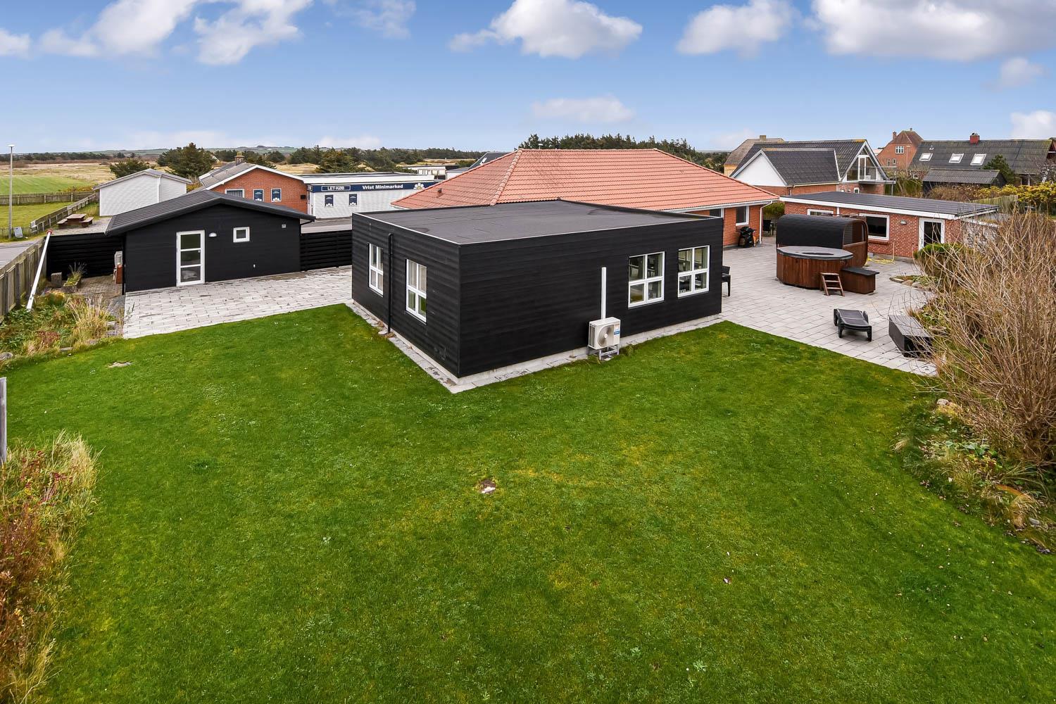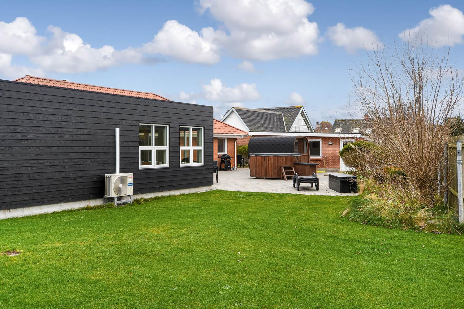 Es gibt viel Platz auf dem 1.340 qm großen, eingezäunten Grundstück. Und auf der prachtvollen Terrassenanlage gibt es viele Möglichkeiten einen Platz an der Sonne oder im Schatten zu finden, da ein Teil von der Terrasse teilweise überdacht ist. Es gibt natürlich Gartenmöbel, Sonnenliegen und Gasgrill. Oder wie wäre es mit einem Besuch im Außenwhirlpool oder in der Außensauna, die auch auf der Terrasse sind. Ein ganz spezielles Erlebnis ist die Benutzung des Außenwhirlpools in den dunklen Abenden mit einem klaren Sternenhimmel; dies ist reine Therapie für die Seele und den Körper. Vielleicht nehmen Sie ein frisches Bad in der Nordsee und begeben sich dann wieder zurück in die Außensauna? Aussendusche nur mit kaltem Wasser. Im Garten gibt es auch eine prachtvolle Orangerie mit Gartenmöbeln, dies ist immer perfekt, egal wie das Wetter ist. 5-10 Minuten vom Haus entfernt liegt die Nordsee, die immer auf einen frischen Spaziergang einlädt. Gerade gegenüber der anderen Straßenseite liegt der Kaufmann, der in der Saison geöffnet hat. In der Saison können Sie Ihre Brötchen dort abholen oder Ihre täglichen Einkäufe erledigen. Etwa 3.000 m vom Haus entfernt liegt ein kleines Restaurant, das allerdings auch nur in der Saison geöffnet ist. Innerhalb von 25-30 Minuten können Sie mehrere Aktivitäten und Einkaufsmöglichkeiten erreichen. Dieses ideale Haus ist für bis zu 15 Personen eingerichtet. Möchten Sie einen aktiven oder entspannten Urlaub, so ist dieses schöne Haus eine gute Wahl was Haus, Lage und Umgebung betrifft.