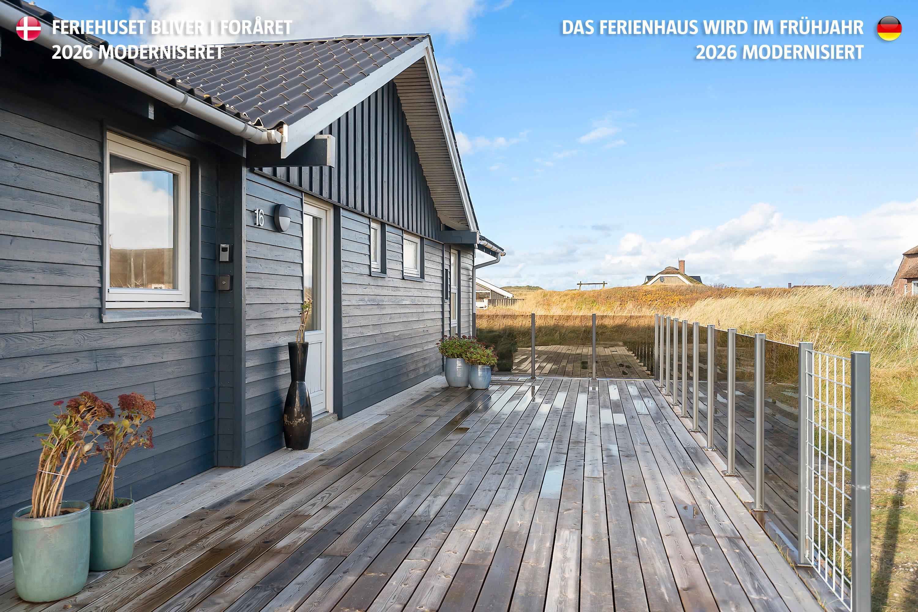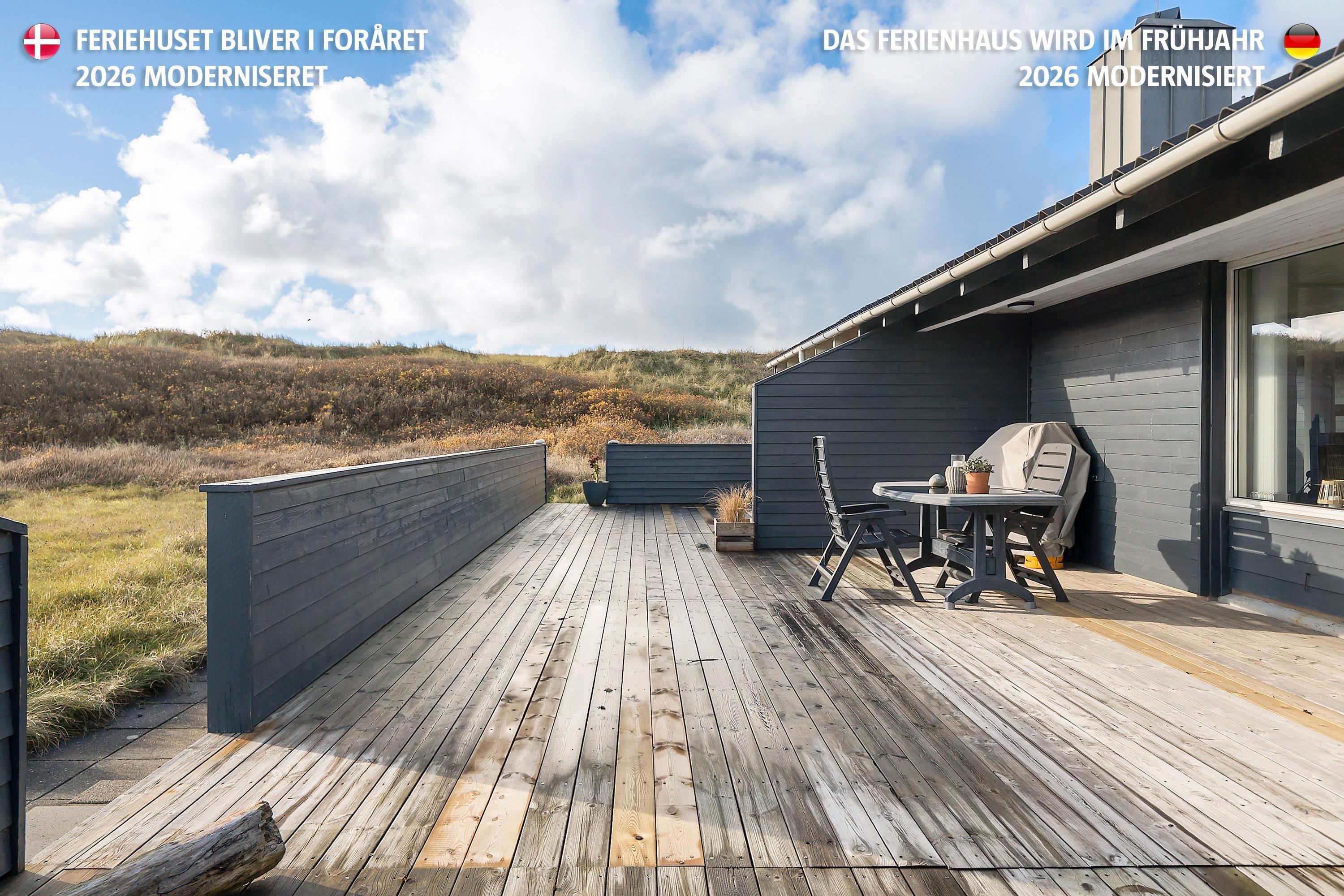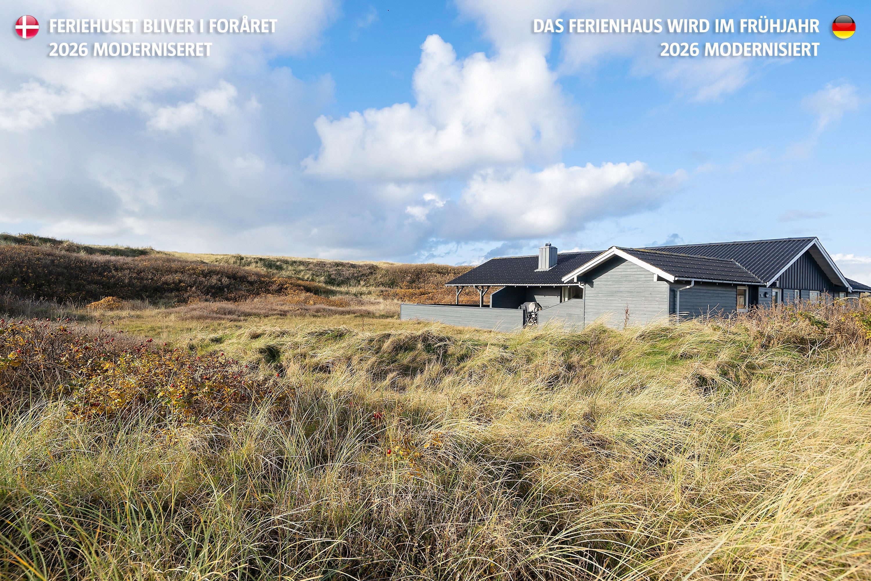 Träumen Sie von einem Urlaub ganz nah an der Nordsee, wo Natur, Dünen und das Rauschen des Meeres die perfekte Kulisse für Entspannung und gemeinsame Zeit bilden? Dann ist dieses gepflegte Ferienhaus in der Ll. Flyvholmvej 16 in Vrist eine ideale Wahl. Im Frühjahr 2026 wird das Ferienhaus modernisiert. Hier wohnen Sie in erster Dünenreihe, nur wenige Gehminuten vom Strand entfernt und mitten in der wunderschönen westjütländischen Natur.