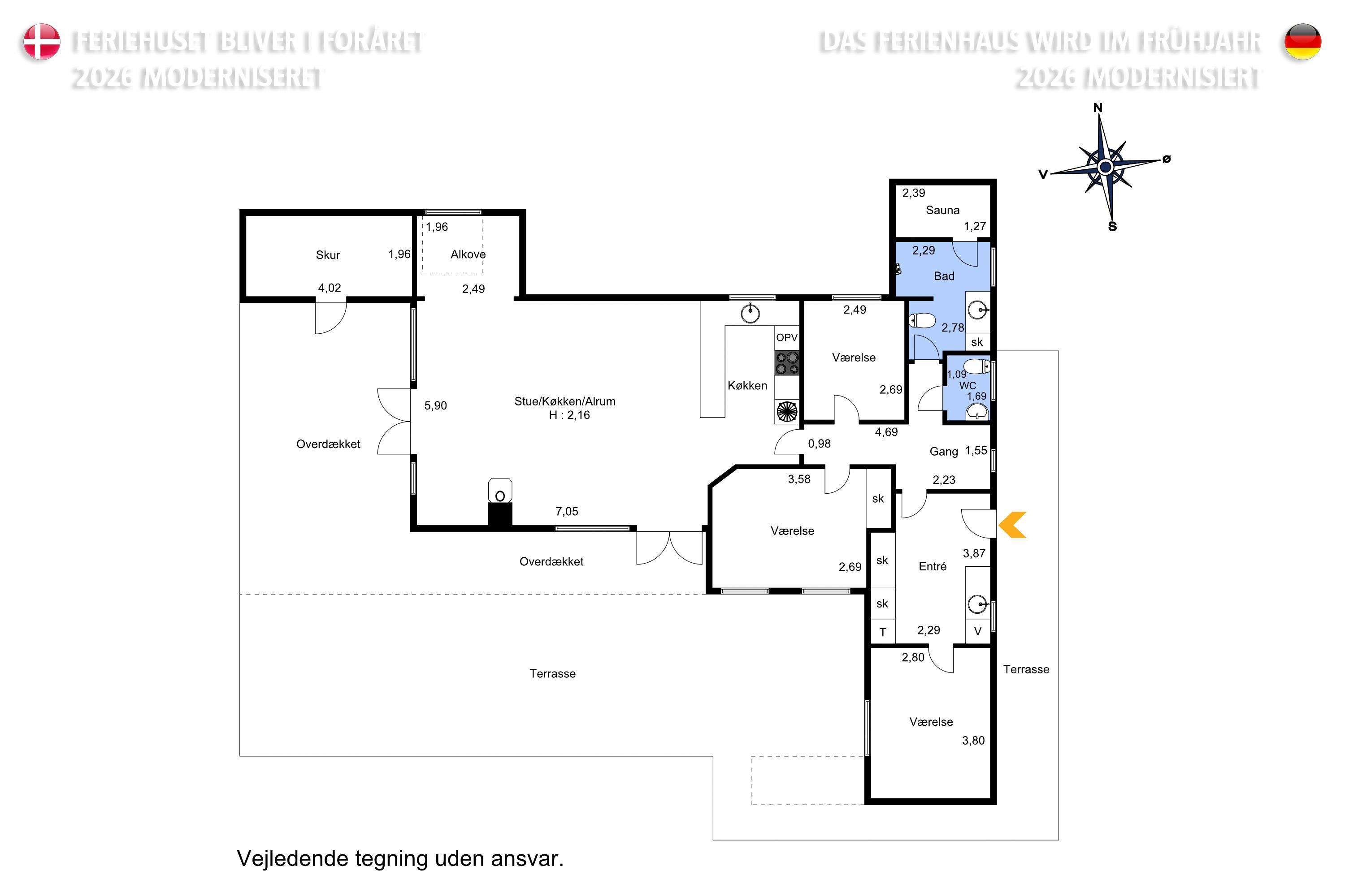 Im Frühjahr 2026 wird das Ferienhaus modernisiert. Unter anderem werden im gesamten Haus Laminatböden verlegt und alle Wände sowie Decken weiß gestrichen, was dem Haus ein noch helleres und moderneres Erscheinungsbild verleiht.