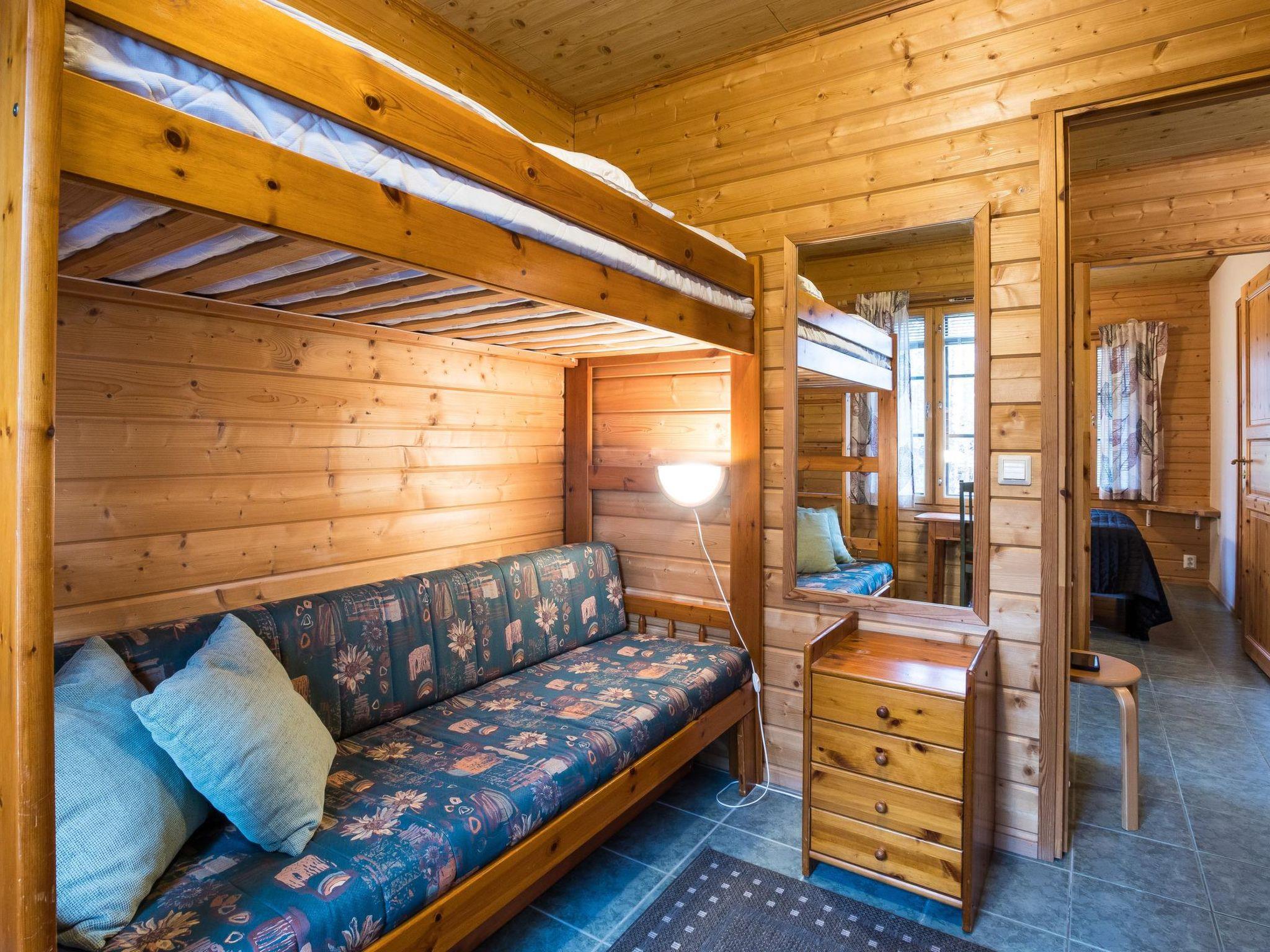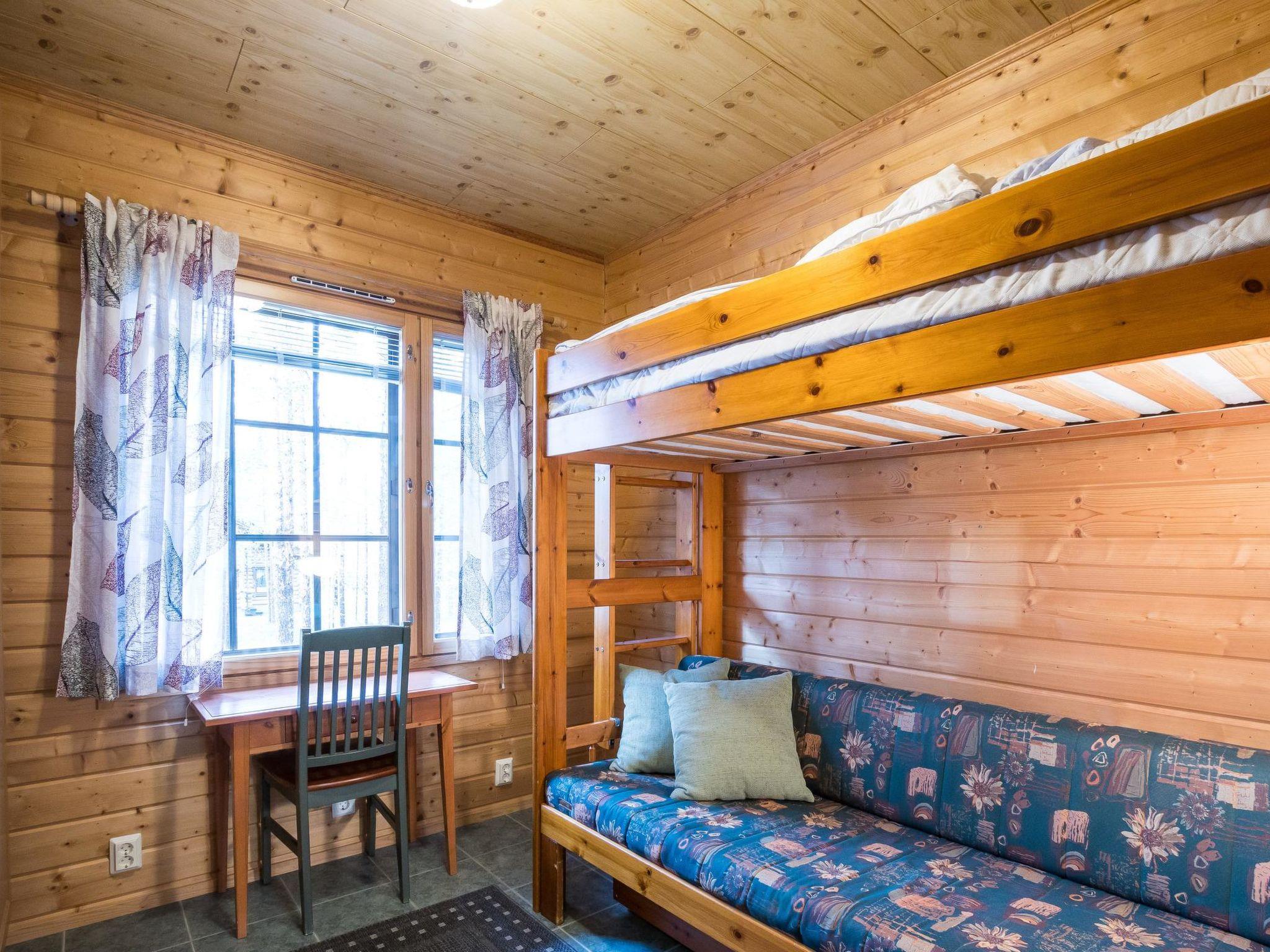 40 km north of Kolari, lake Äkäslompolo 1 km, swimming beach 2,5 km. Wooden semi-detached house apartment 2000. Livingroom/kitchen, two bedrooms, one with a double bed and the other with a bunk bed with expandable lower portion, sofabed in living room, sauna (electric), shower/toilet.