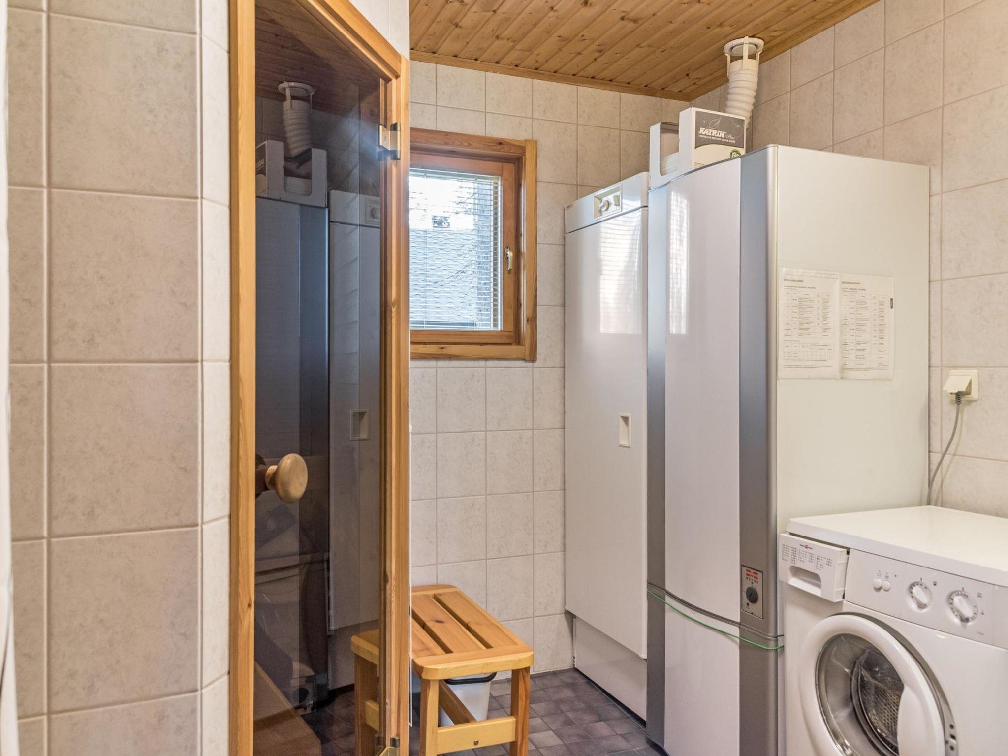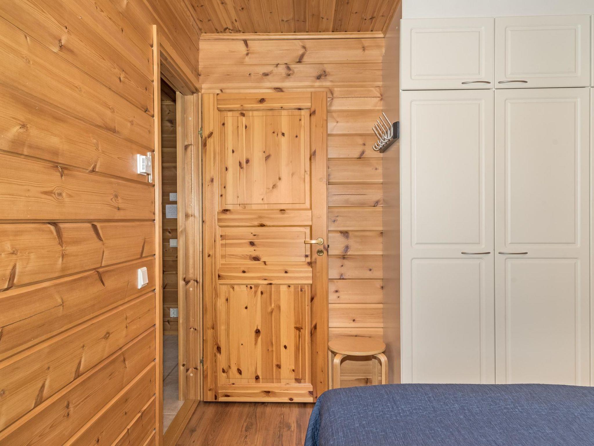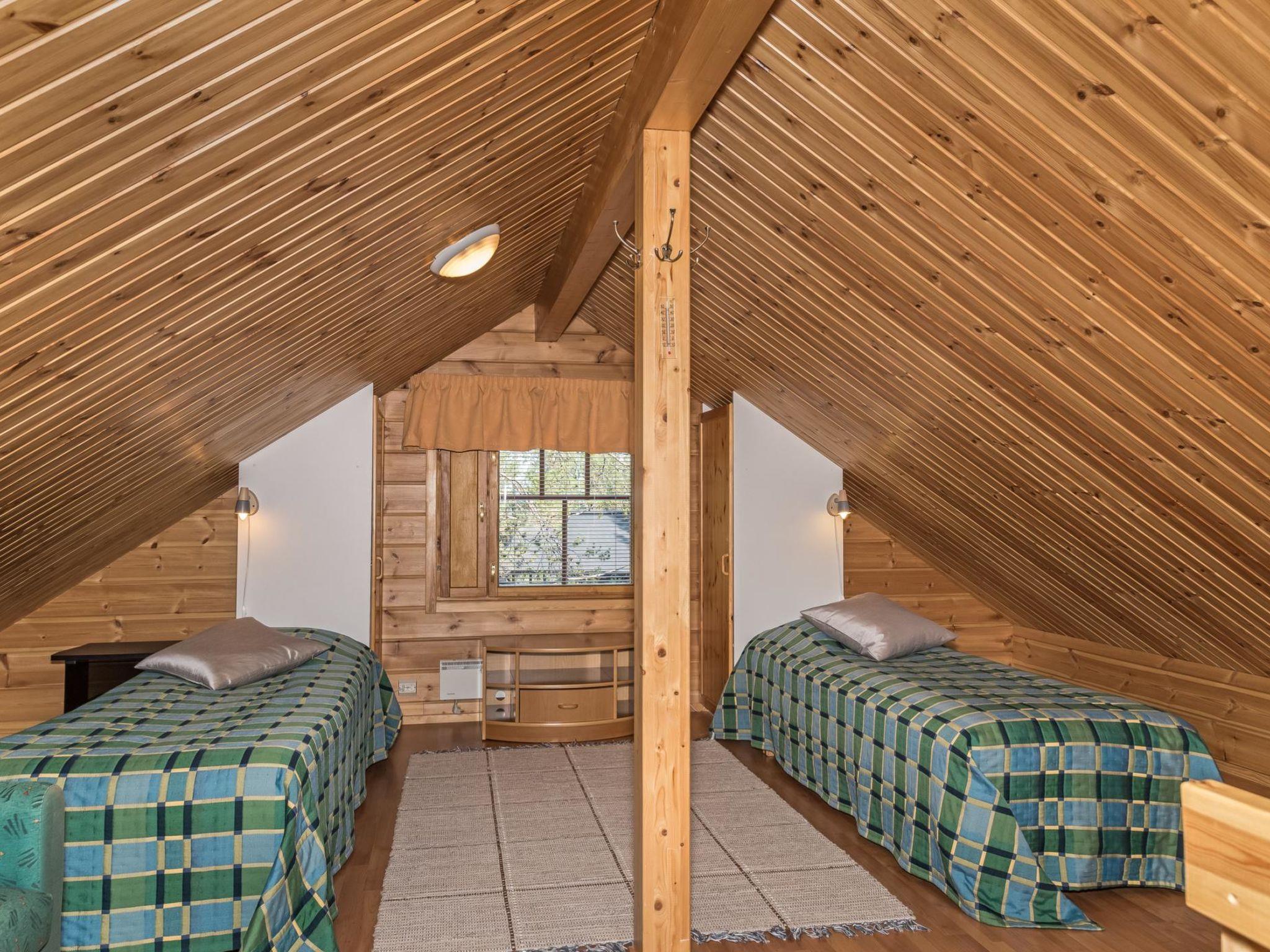 40 km North of Kolari, lake Äkäslompolo 1,5 km, swimming beach 3,5 km. Log cottage, built 2003. Livingroom/kitchen, two separate bedrooms, both with two separate beds, loft (sloping ceilings, highest point 2,3 m, 16 m2) with two separate beds and a bed sofa. Electric sauna, washing room, separate toilet. Lockable ski storage and ski maintenance room.