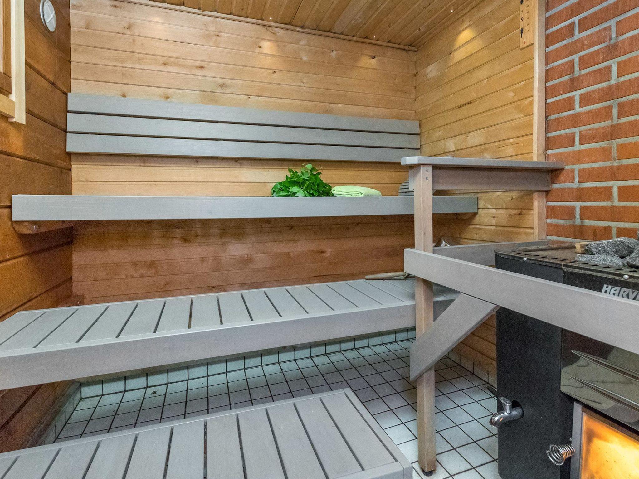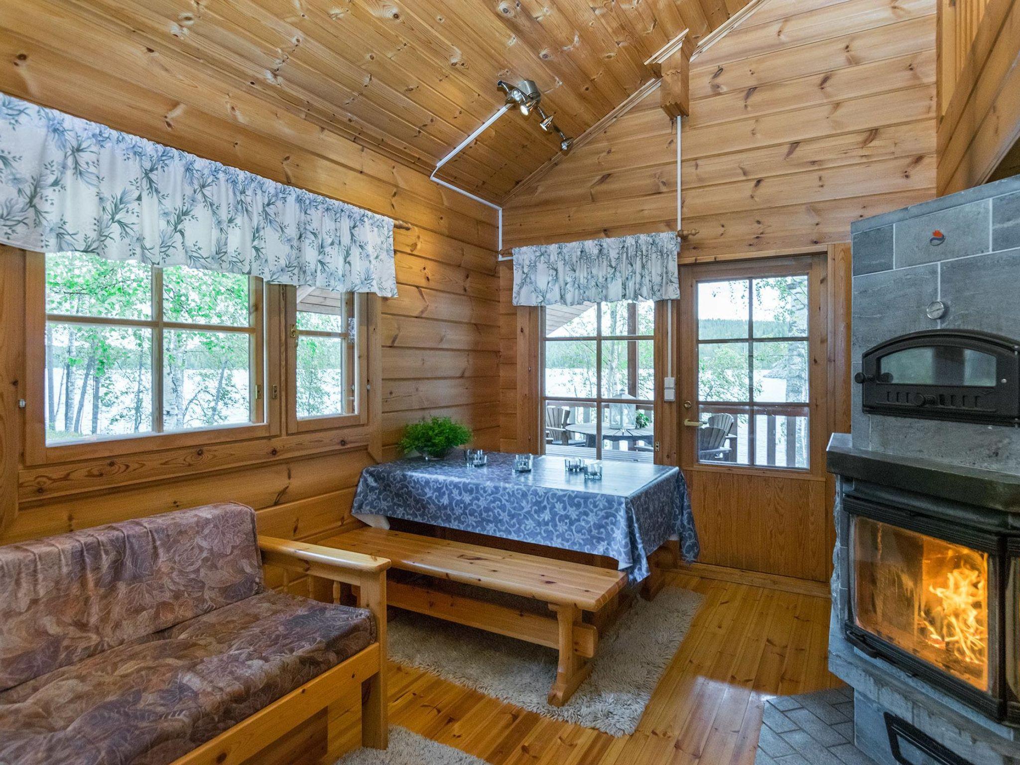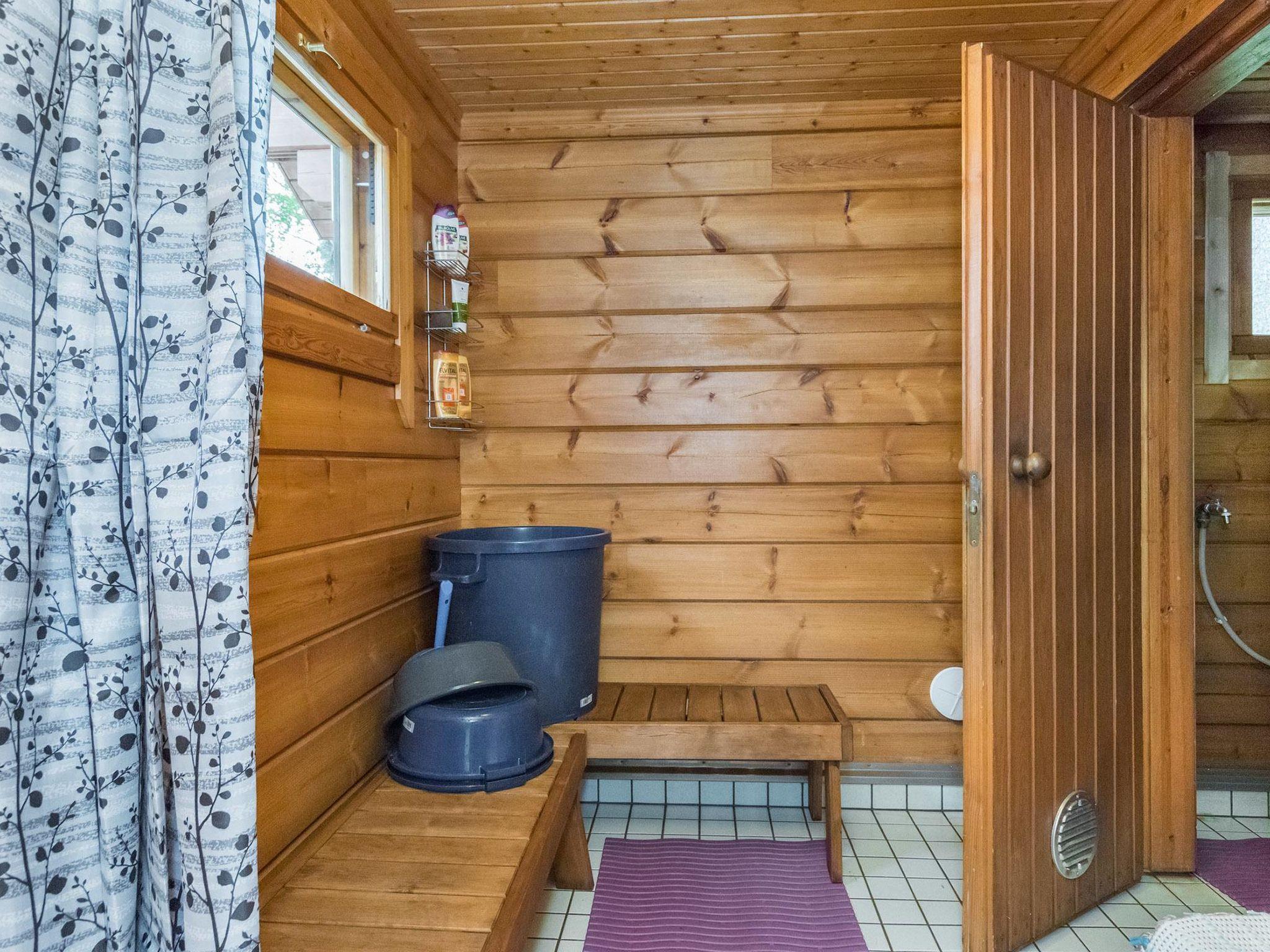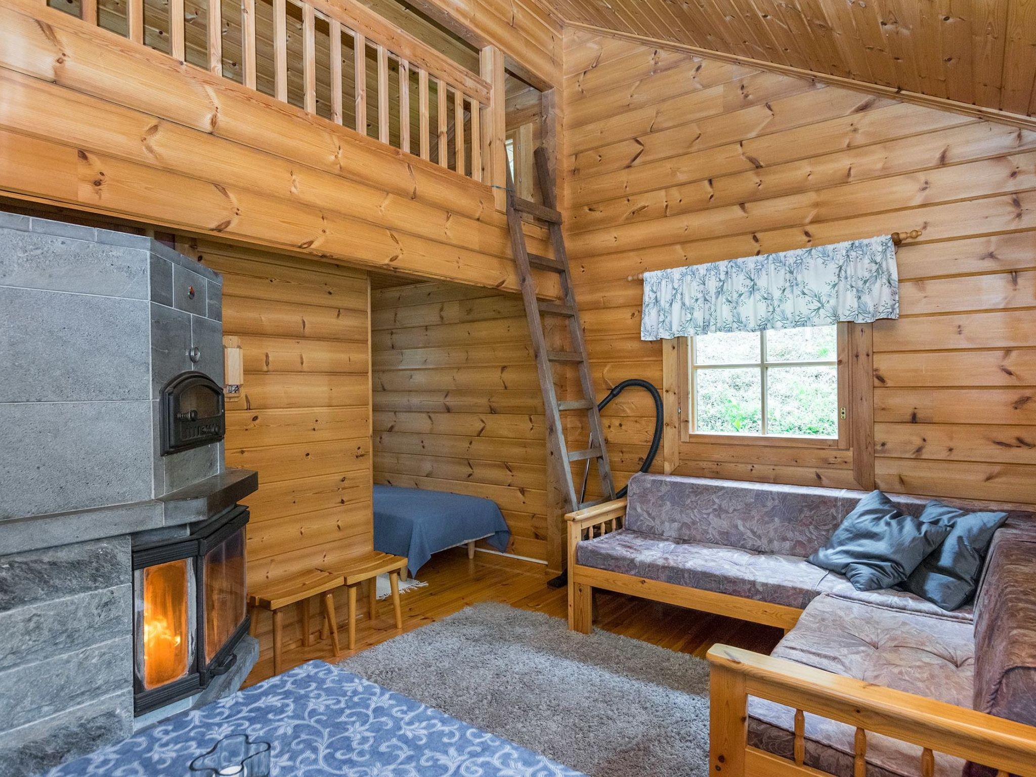 Lakeside sauna (26 m²), living room with fireplace, sleeping alcove with two single beds, loft, washroom and sauna (wood heated sauna stove), covered terrace. Washing water comes to sauna via pump.