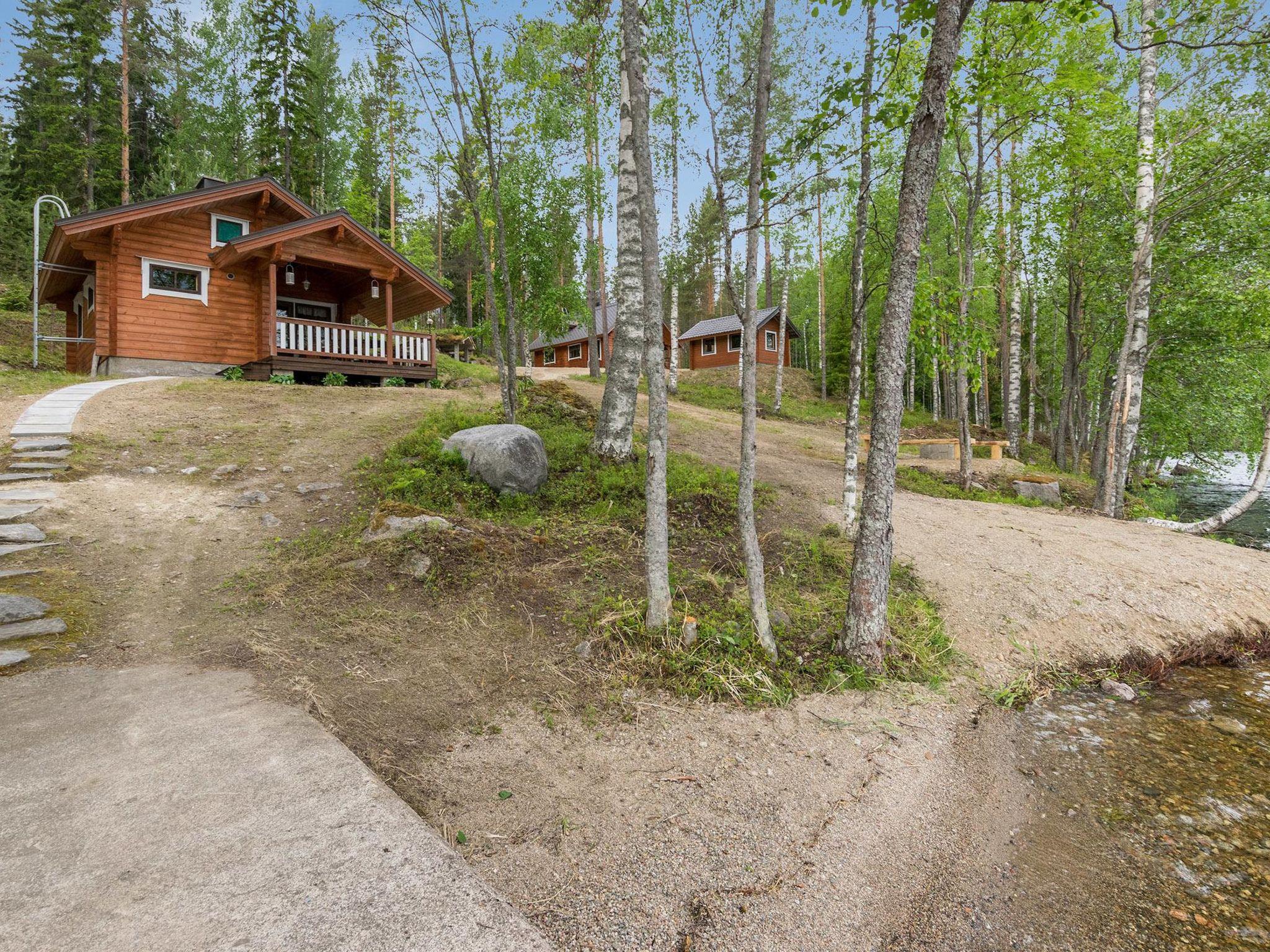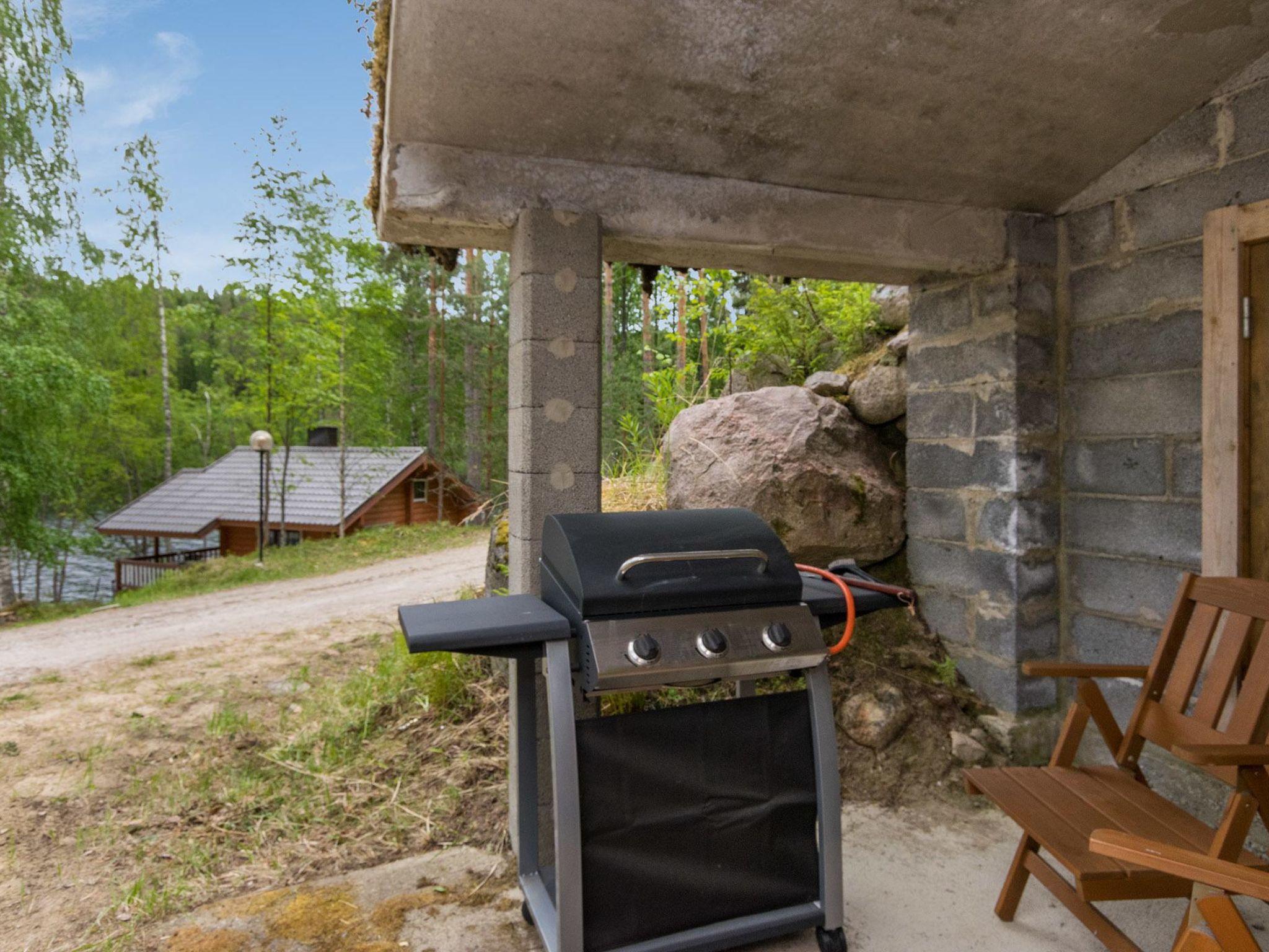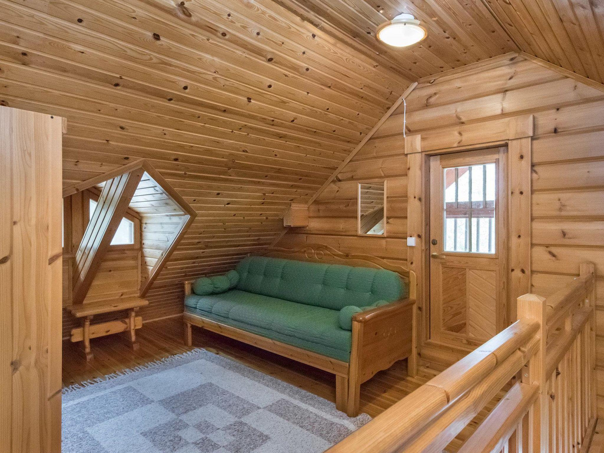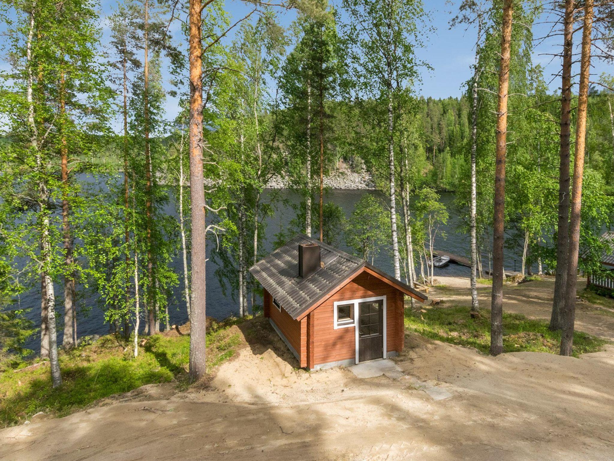 Lakeside sauna (26 m²), living room with fireplace, sleeping alcove with two single beds, loft, washroom and sauna (wood heated sauna stove), covered terrace. Washing water comes to sauna via pump.