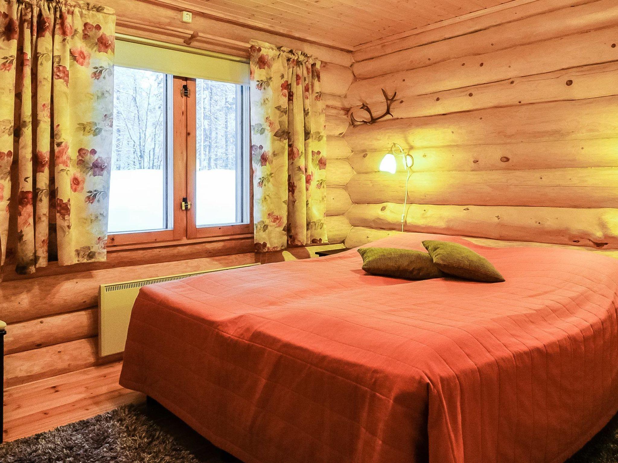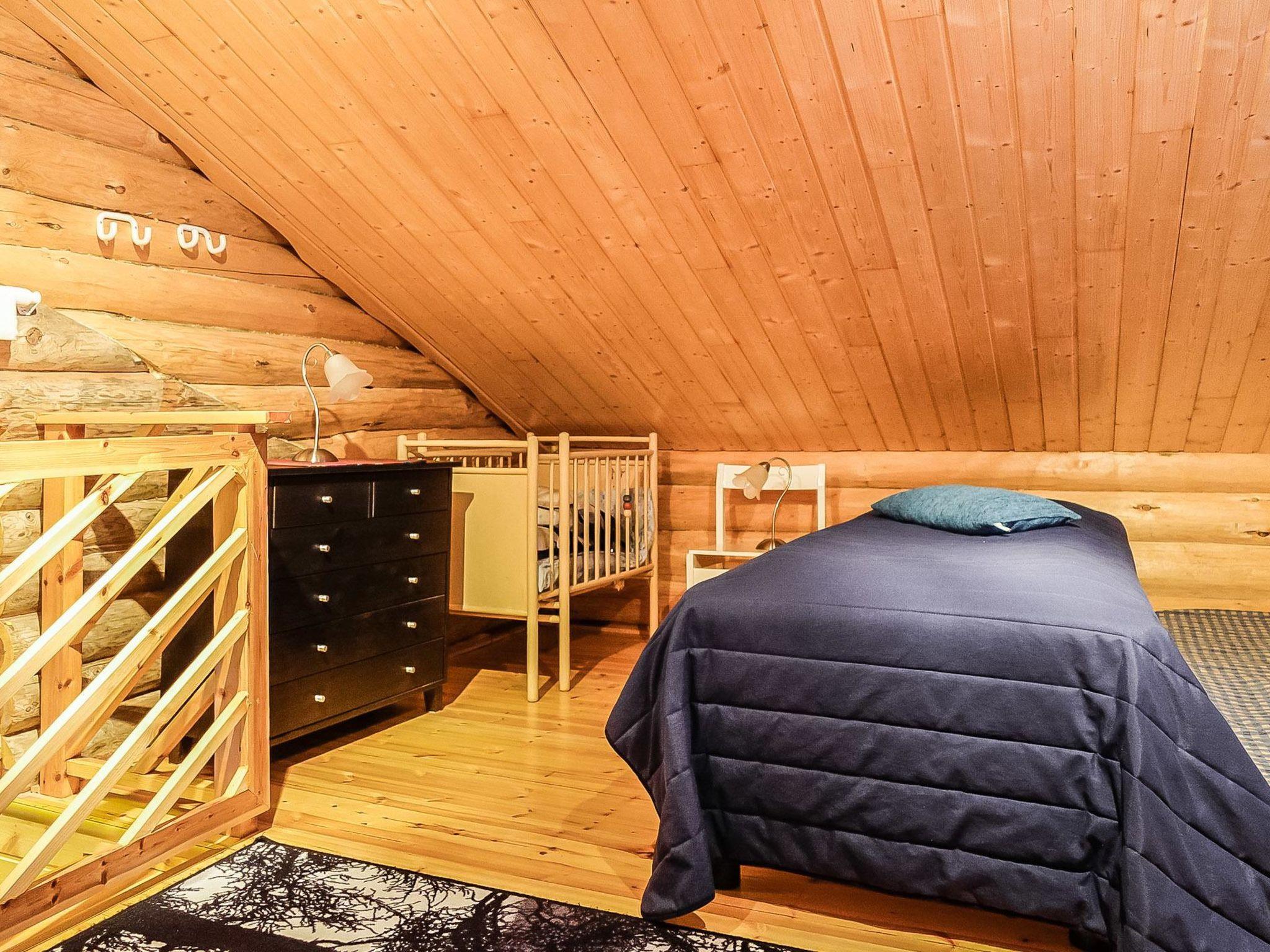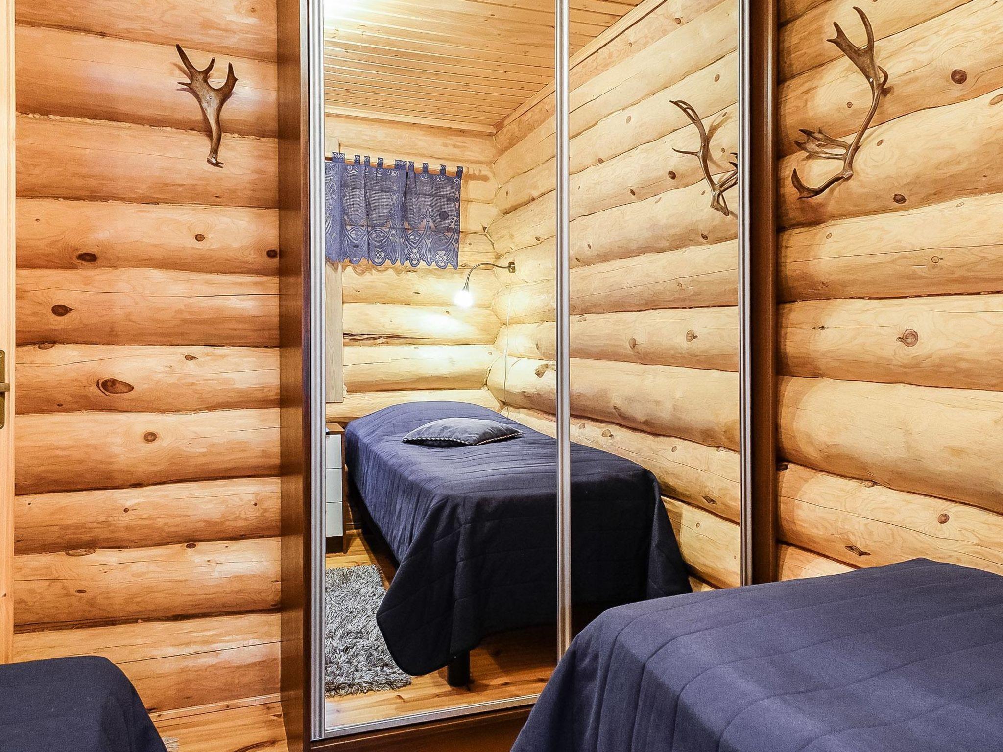 250 km north of Rovaniemi, L.Saivojärvi 100 m (length 1 km, width 200 m), shore shared with owner’s other cottage, shallow, soft mud bottom, jetty, shore unsuitable for children, own boat. Log building 1991, renovated and extended 2012, living room/kitchen, 2 bedrooms with 2 beds in each. Upstairs (no door) 1 bed, sauna (electric and wood burning stove), washroom, open porch. Shore has grill tepee shared with other cottage.