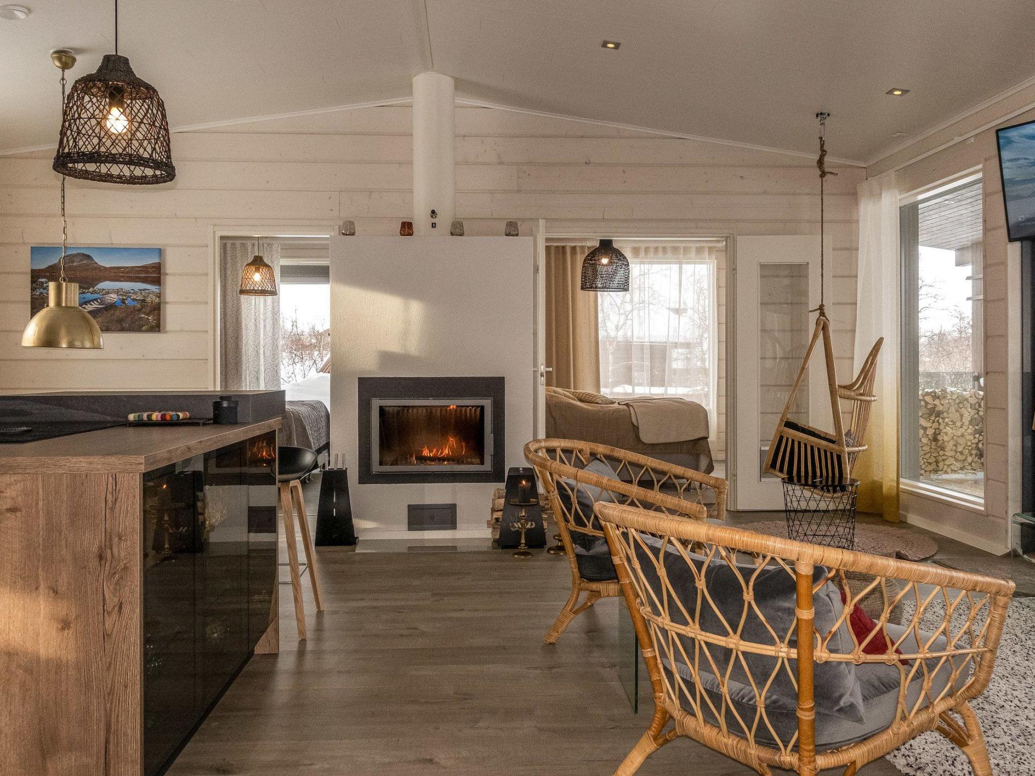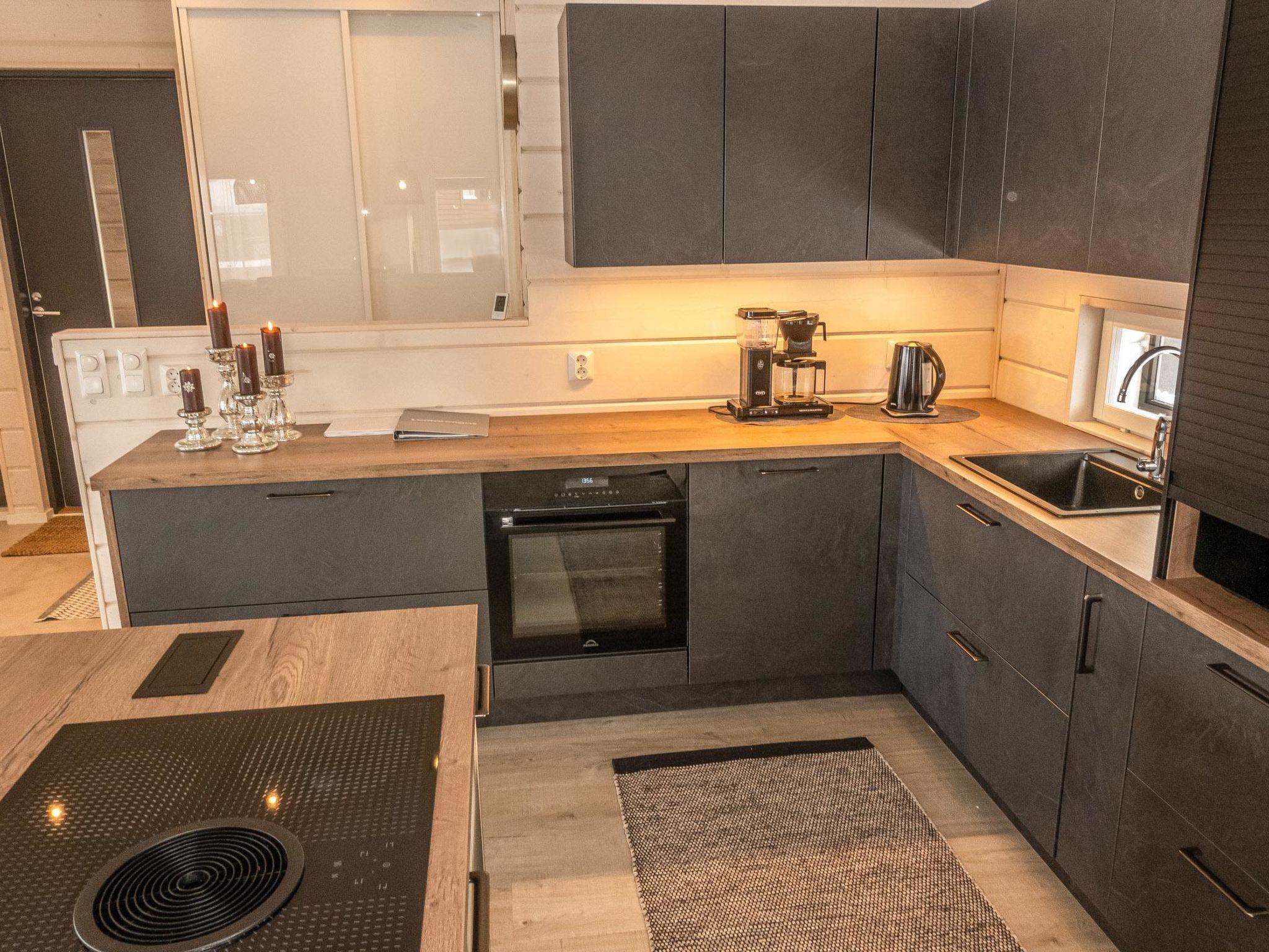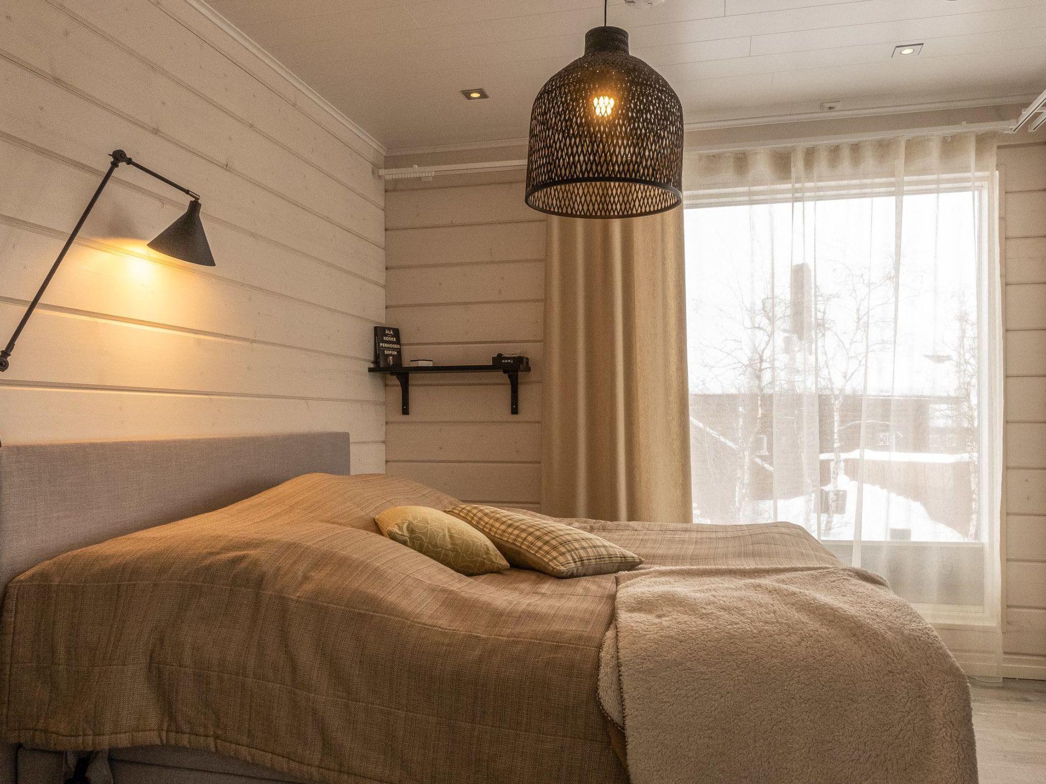 Thermal log villa, built in 2022. Large and bright living room / kitchen, 200 cm wide motorized double bed in the bedroom, view of the fell Saanatunturi from the bedroom, 160 cm wide double bed in the another bedroom. Separate WC with shower, utility room.