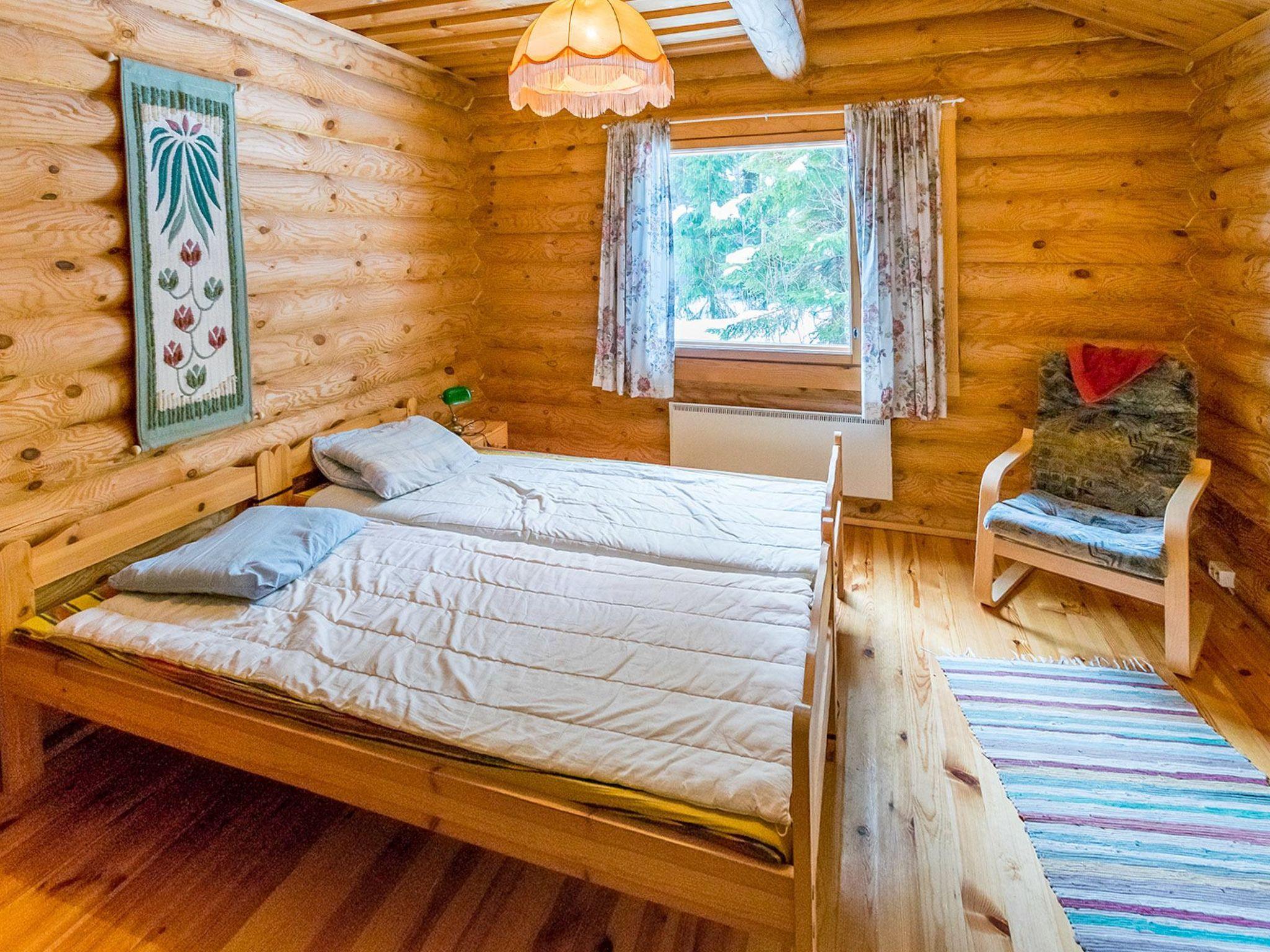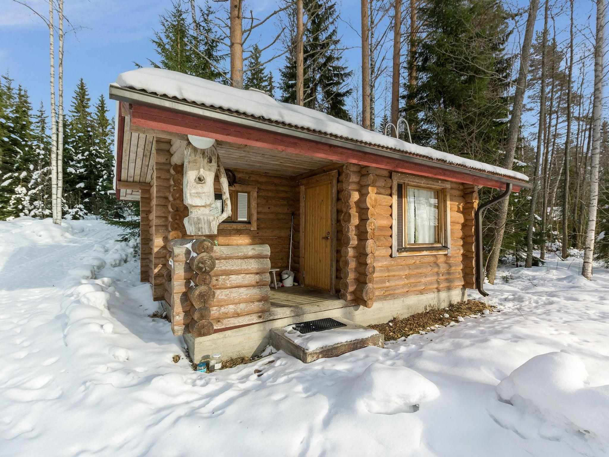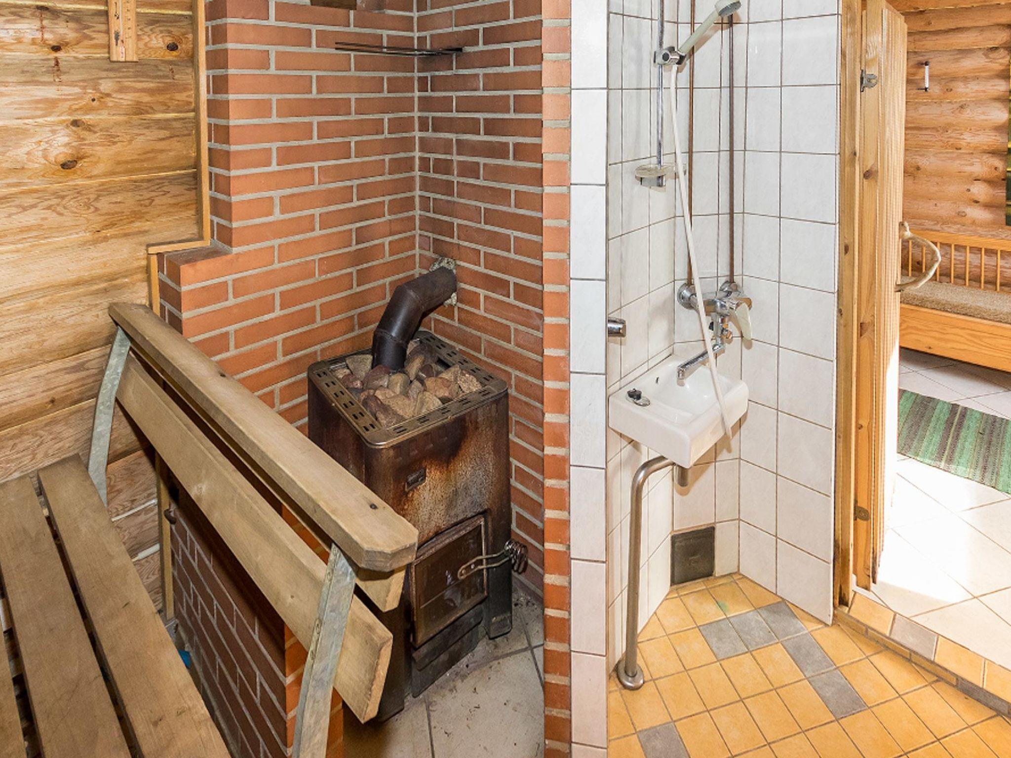65 km east of Jyväskylä. Lake Hankavesi 50 (length 7 km, breadth 3 km), shallow water, hard sandy bottom, also stones, pier, own boat. Log cabin 2001, living room/kitchen, 2 bedrooms with 2 beds in each, sleeping loft 2 beds and 120 cm wide mattress, sauna (elec. stove), washroom, vestibule, open veranda. Wood-heated lakeside sauna (20 sqm) with lounge with fireplace, elec. light, -heating, hot and cold running water, shower.