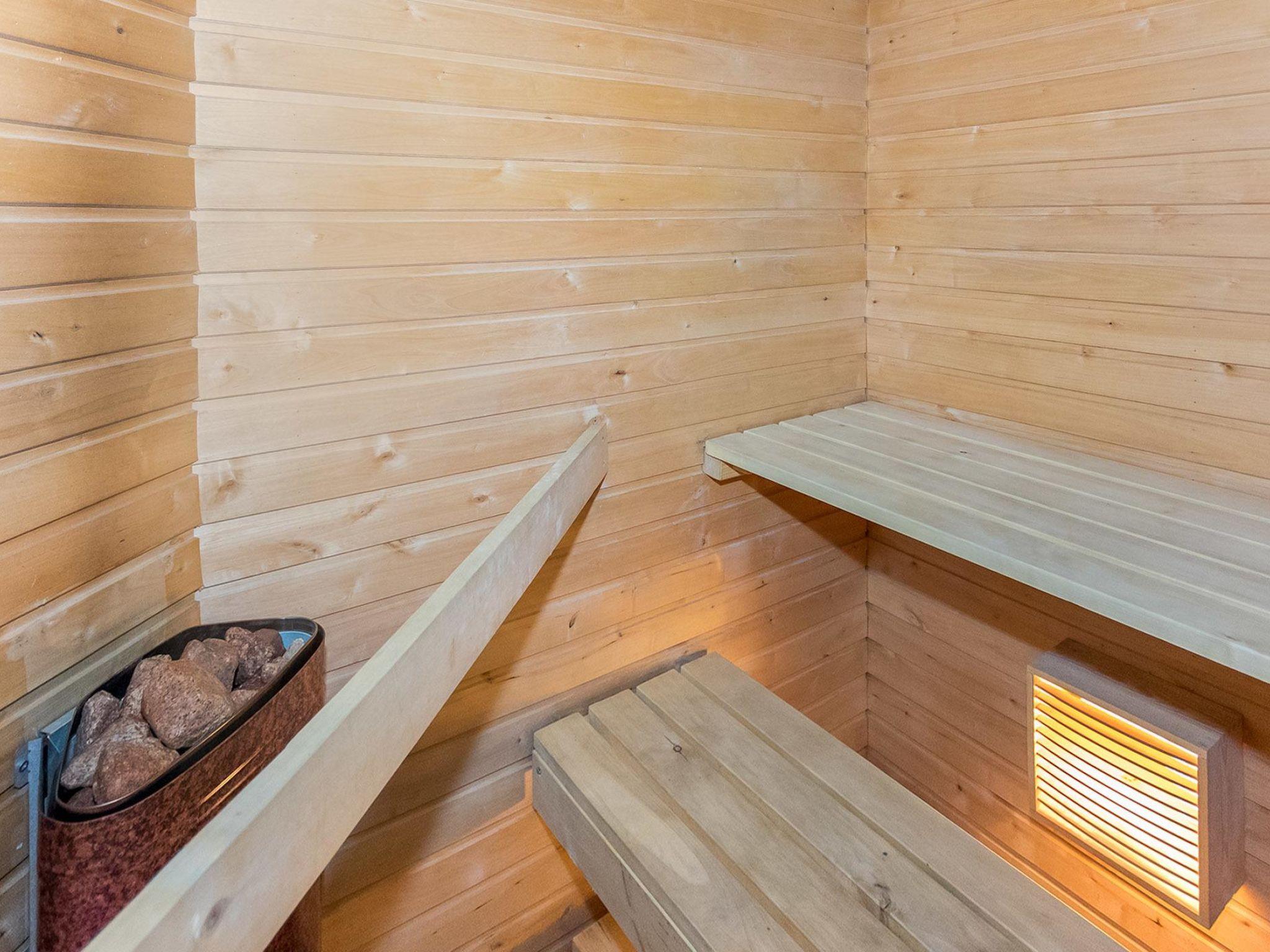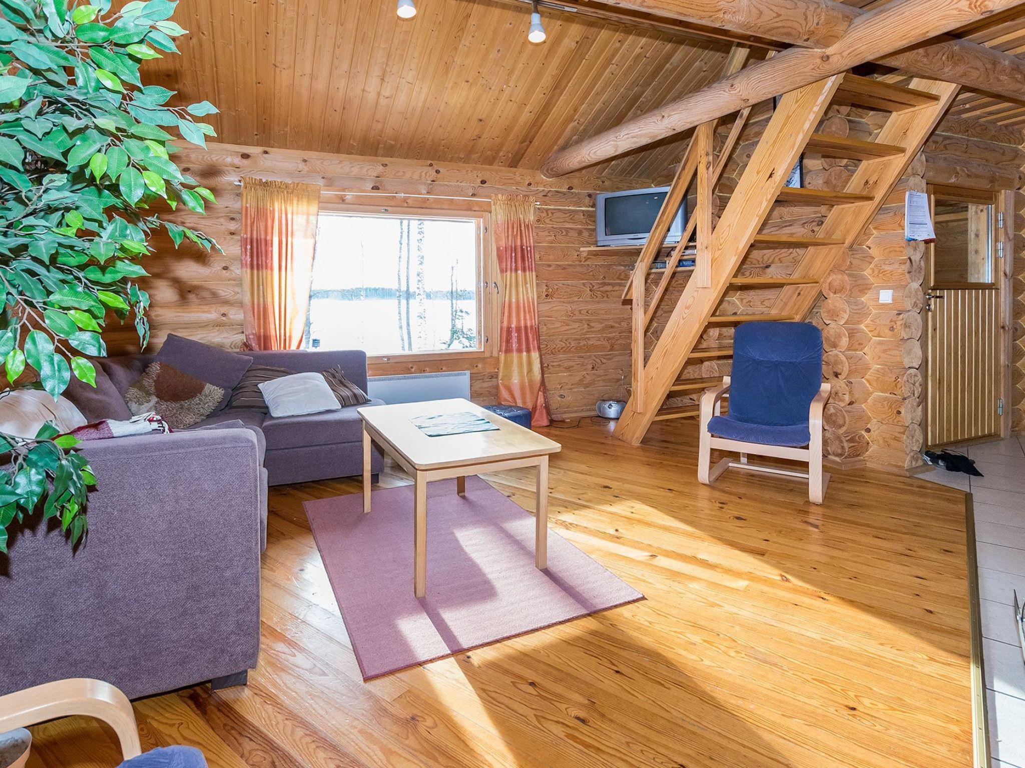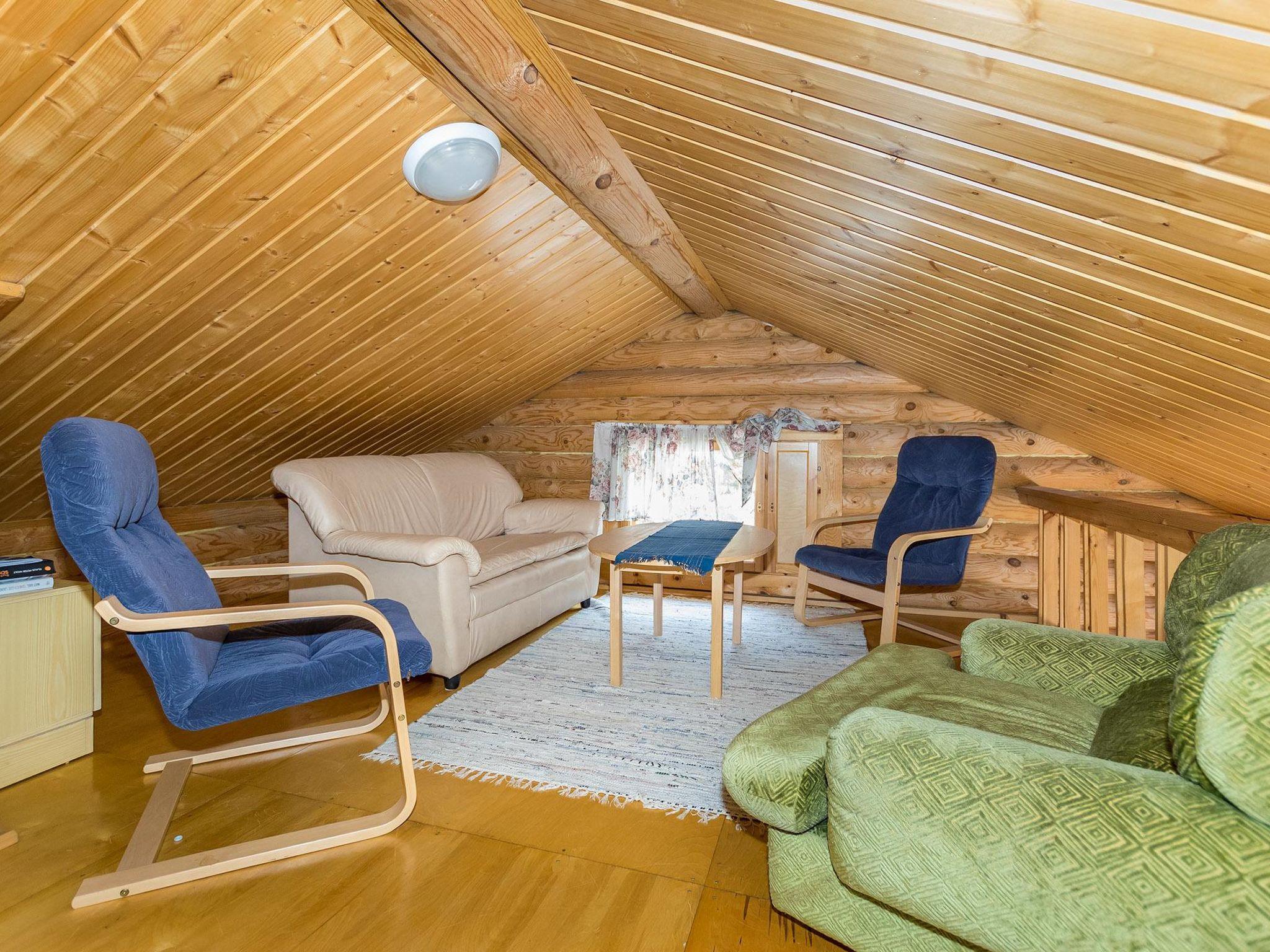 65 km east of Jyväskylä. Lake Hankavesi 50 (length 7 km, breadth 3 km), shallow water, hard sandy bottom, also stones, pier, own boat. Log cabin 2001, living room/kitchen, 2 bedrooms with 2 beds in each, sleeping loft 2 beds and 120 cm wide mattress, sauna (elec. stove), washroom, vestibule, open veranda. Wood-heated lakeside sauna (20 sqm) with lounge with fireplace, elec. light, -heating, hot and cold running water, shower.