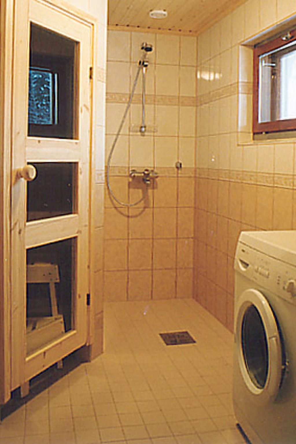 Log cottage 2001, kitchen, living room, bedroom 2 beds, sleeping loft (9 m²) 4 beds , washing room, dressing room, sauna (electric stove), open porch. Cottage fireplace also has bake oven. There is an air source heat pump with cooling and warming functionality on the cabin.