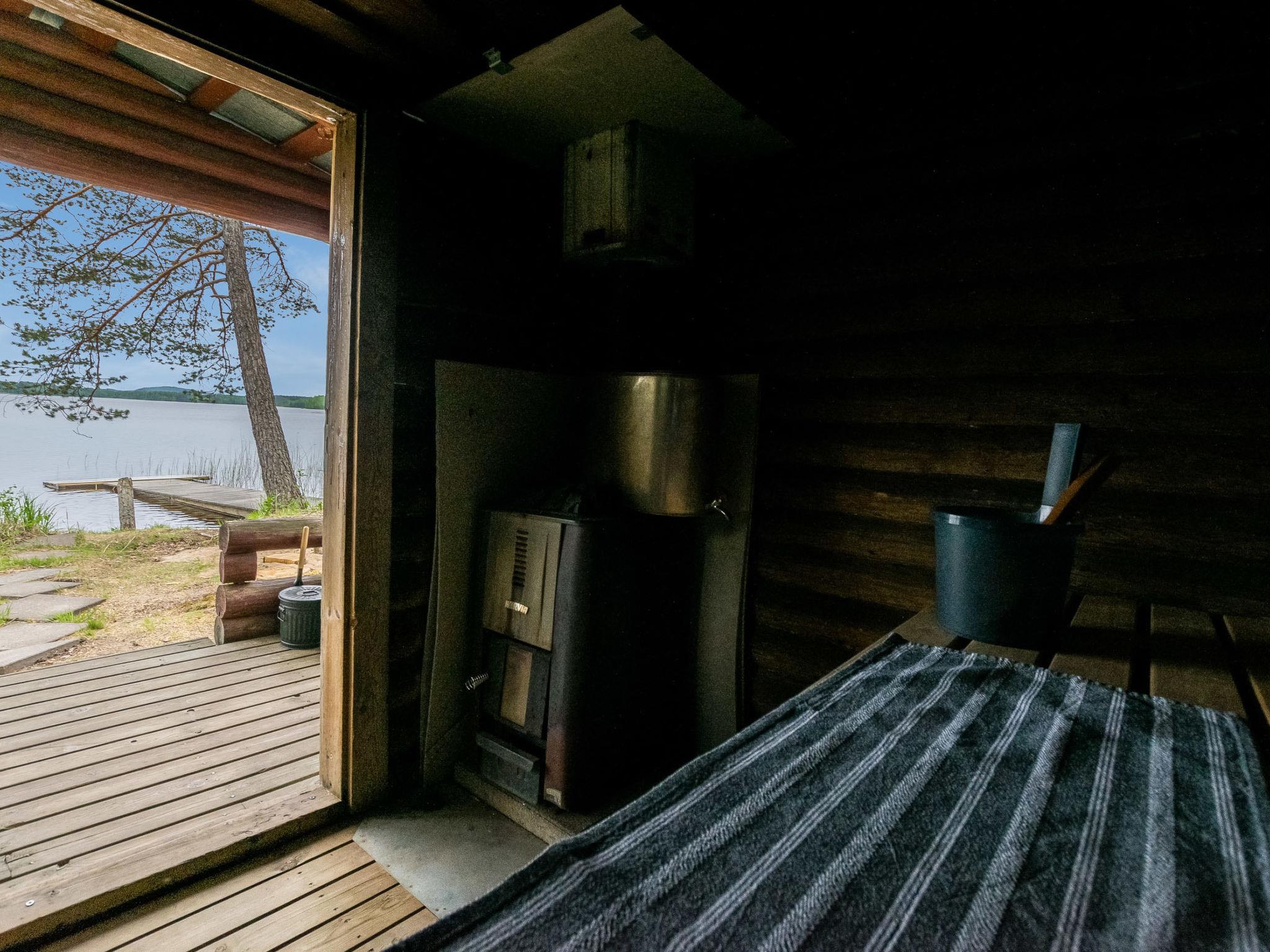 Lakeside sauna (8 m²) in summer use, built in 70s', wood-heated sauna stove, water must be carried from the lake and heated by wood.