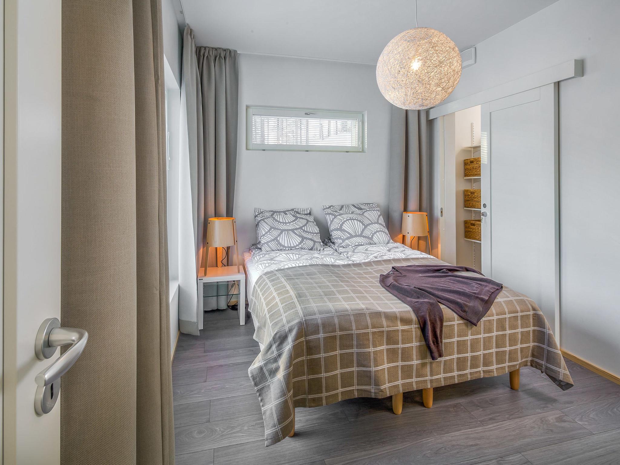 2-storey villa built of stone and log in 2014, in upstairs there are combined livingroom-kitchen, bedroom with double bed, bedroom with bunk bed (lower bed 120 cm, upper bed 80 cm) and bathroom with shower and toilet. In downstairs there are bedroom with 2 beds, livingroom, utility room, bathroom (2 showers), electric sauna and separate toilet.