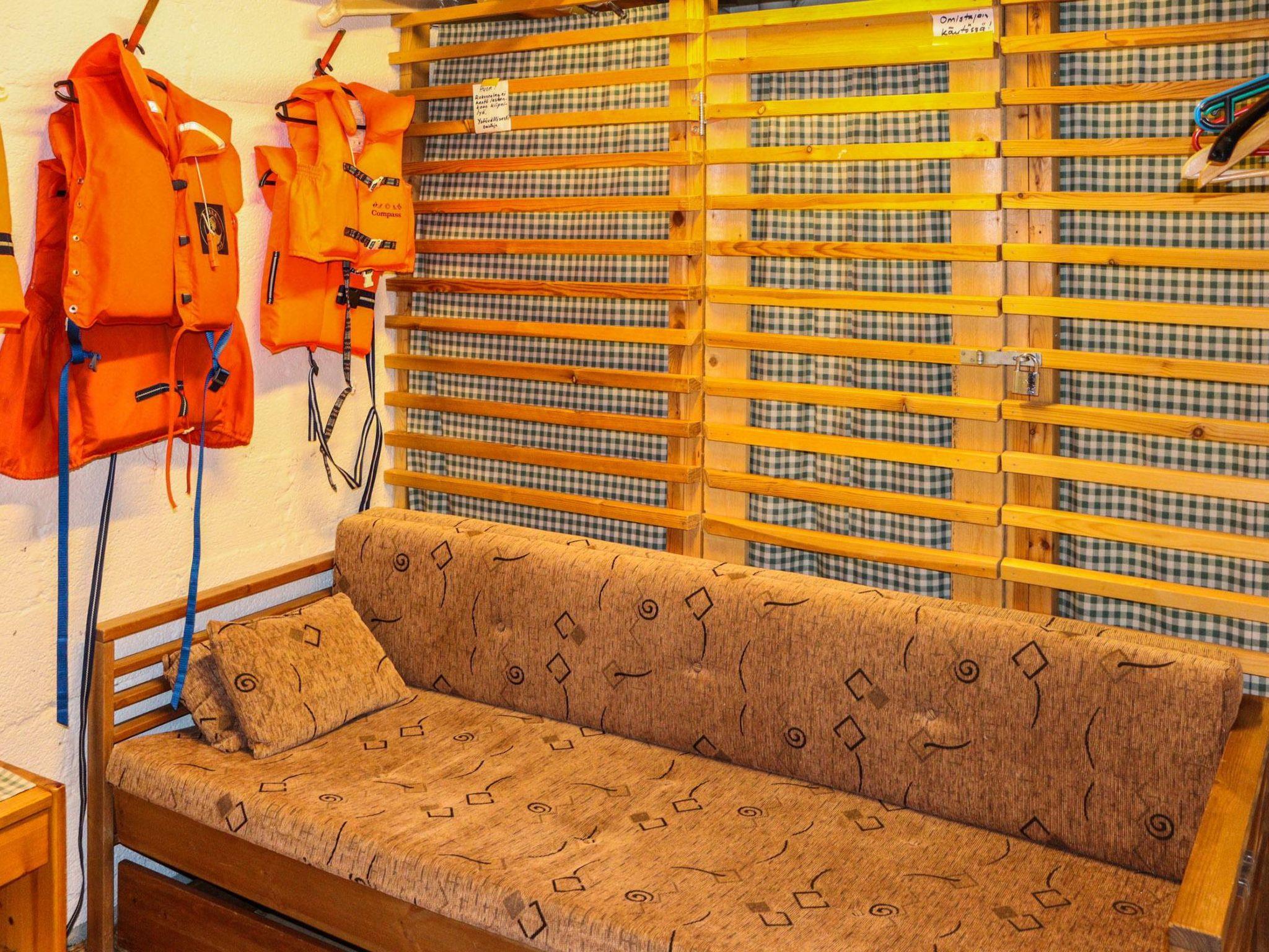 Combined kitchen-livingroom, 2 bedrooms, loft (steep stairs), sauna, shower room, separate toilet downstairs (steep stairs), dressing room, balcony, terrace, vestibule, storage, fireplace and firewood.