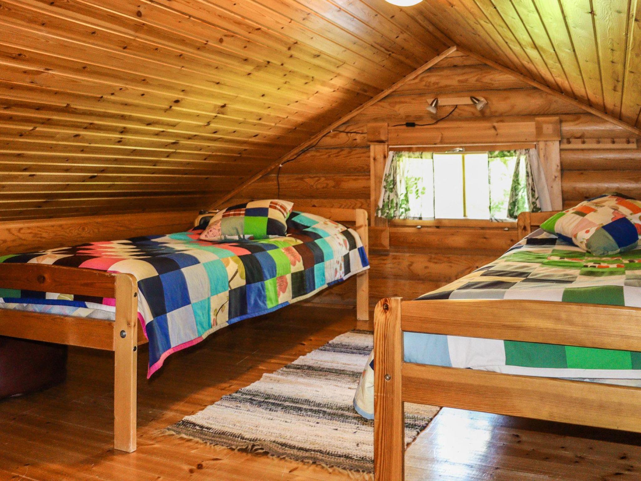 Double beds in both bedrooms, 5 beds on the loft and 1 bed in the basement floor. High chair for babies, baby travel bed, boat and an outdoor grill in summer use, sandbox and swing for children.