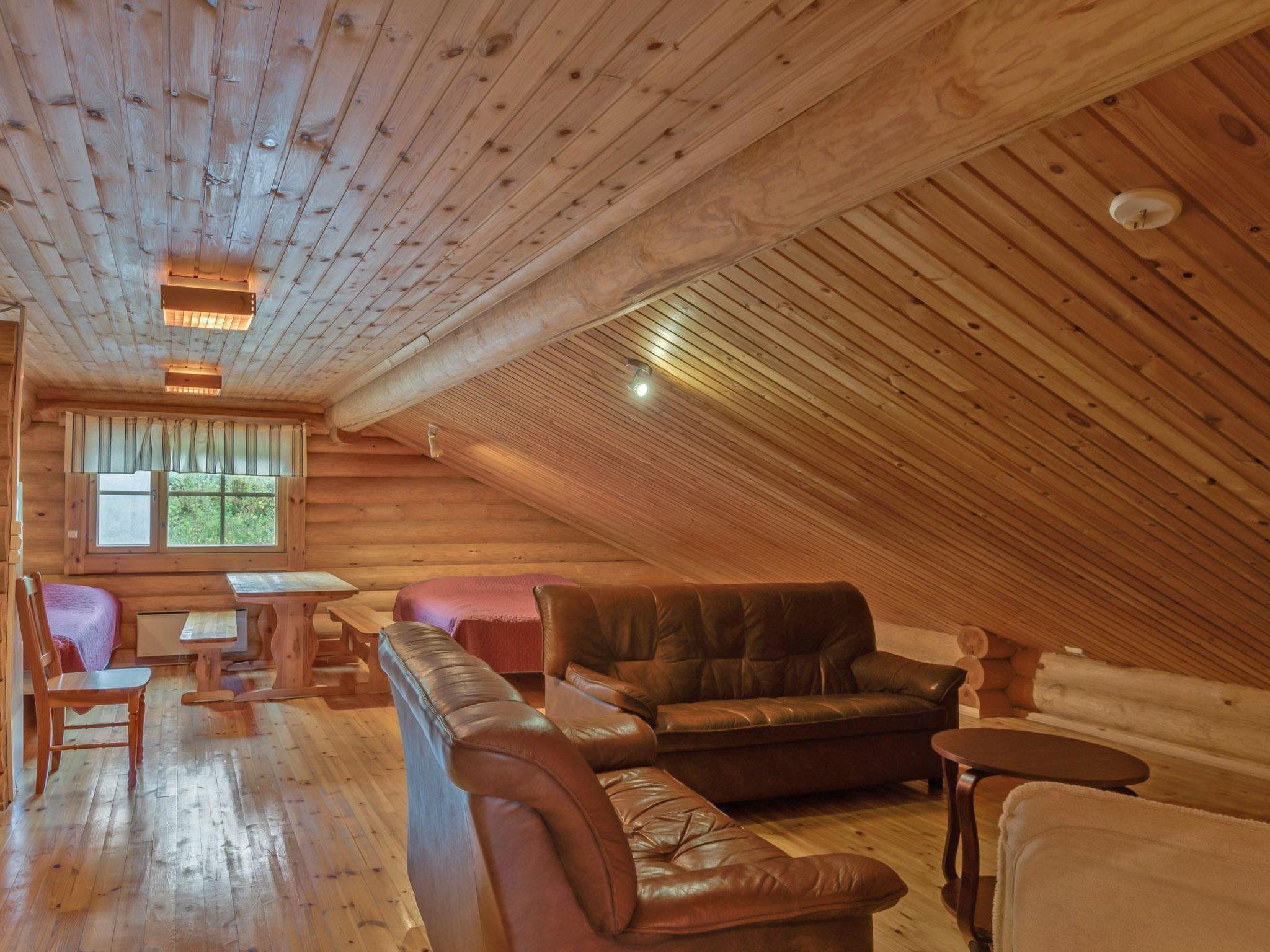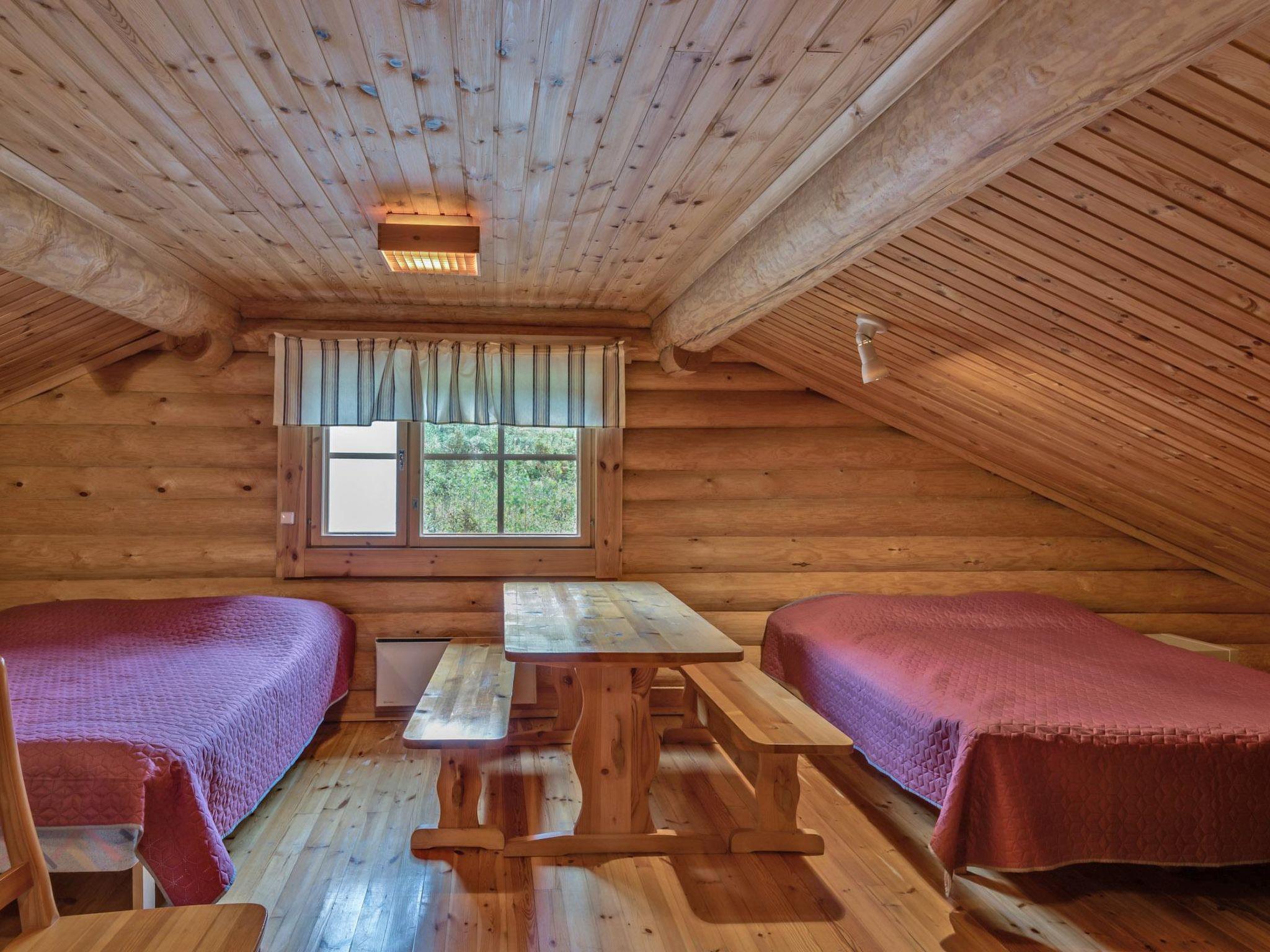 Log cabin 1995, living room/kitchen, 2 bedrooms with 2 beds in each, sleeping loft with 4 beds, dressing room, washroom, sauna, foyer, open veranda.