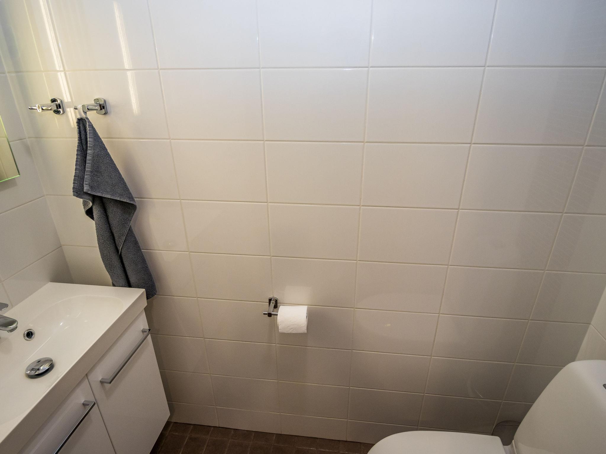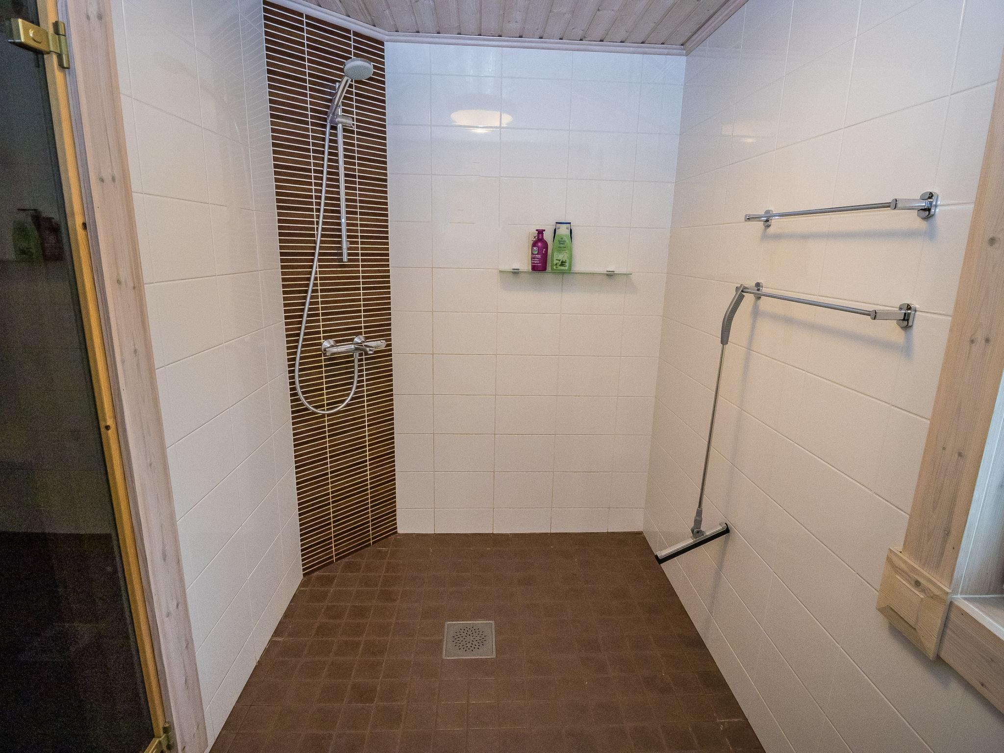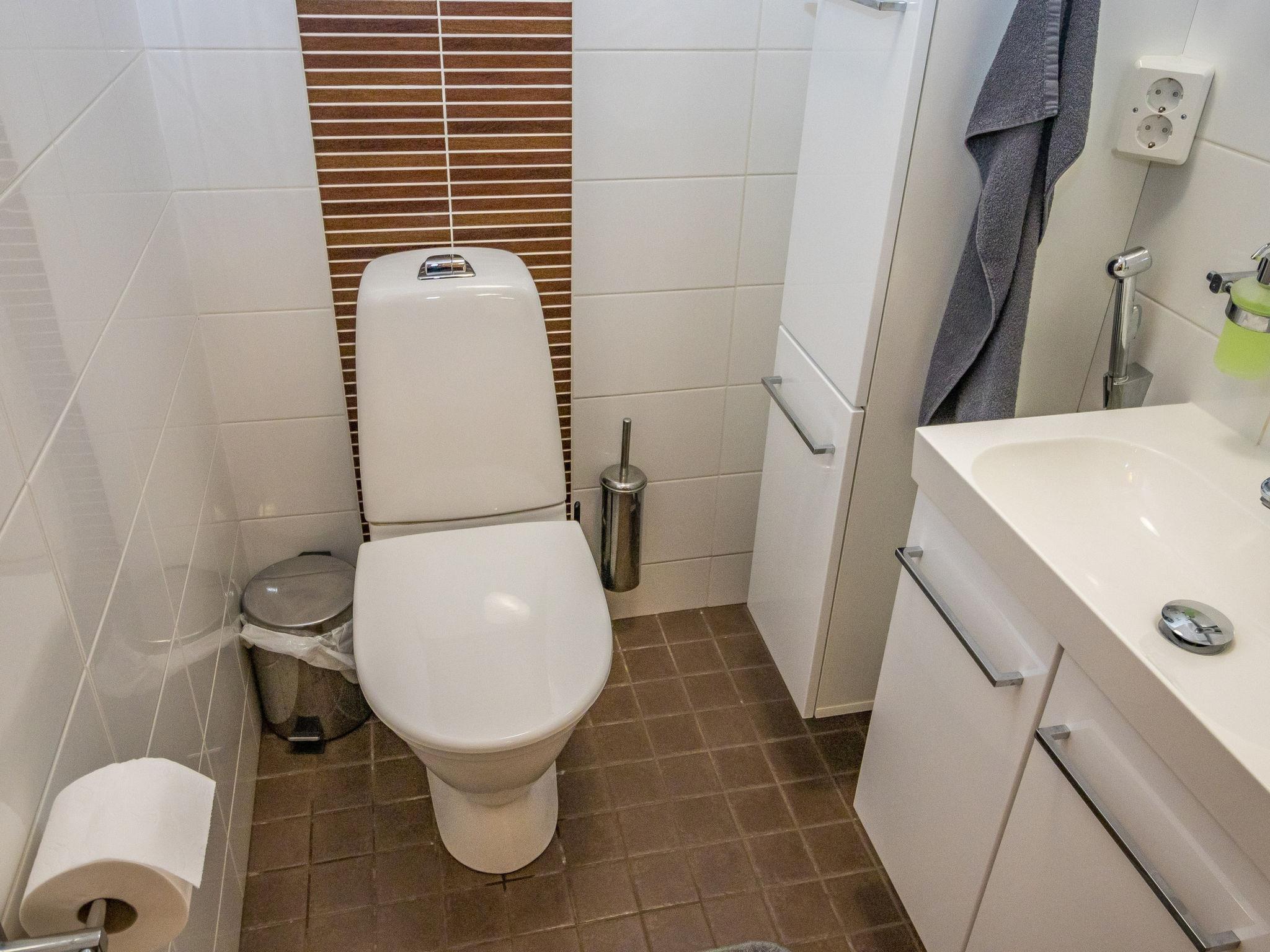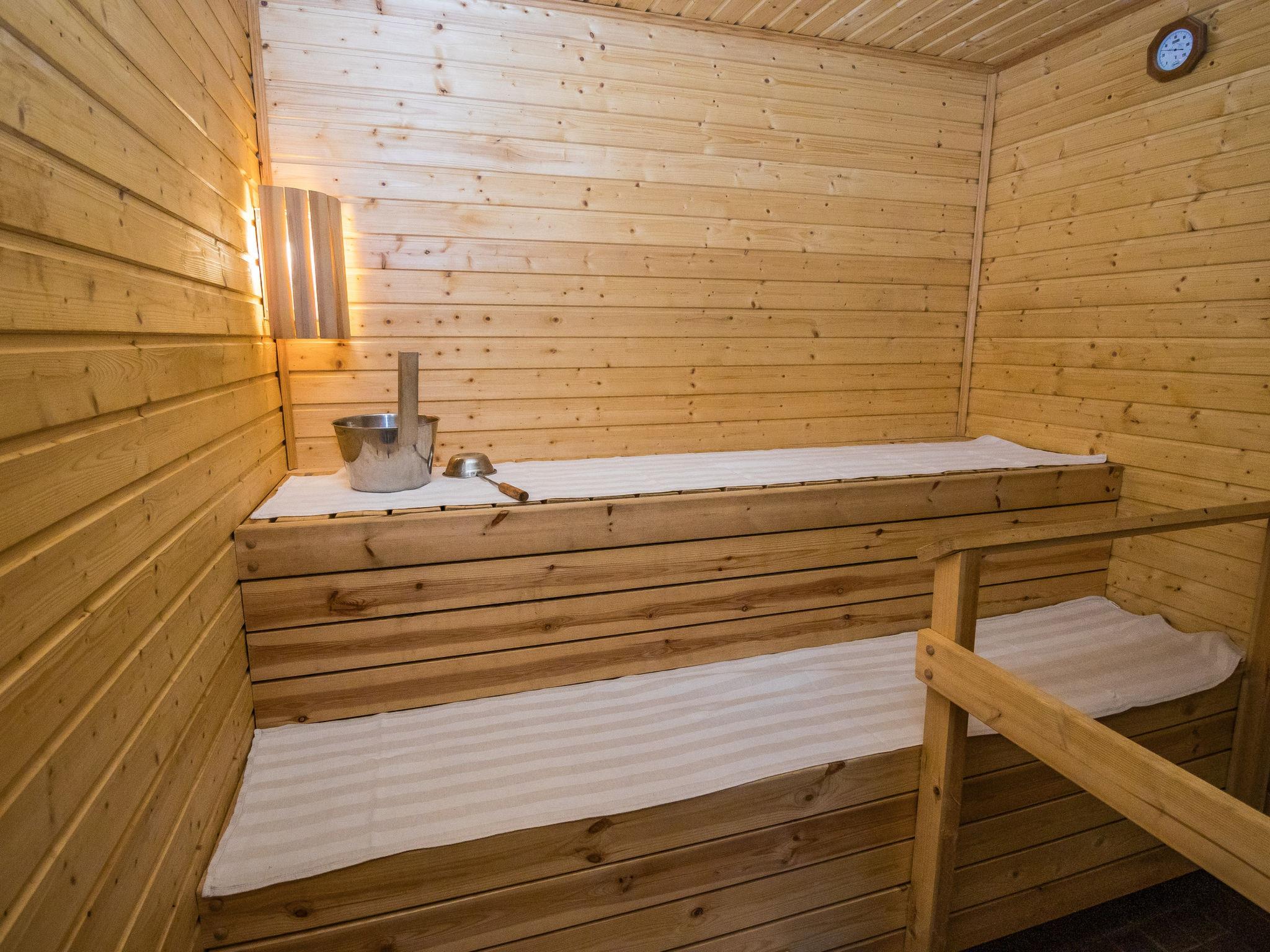 The cabin features three bedrooms: two with double beds and one with two separate 90 cm wide beds. The spacious kitchen is connected to the living room and the utility room, which has its own exterior door for cooling off after the sauna. From the utility room, there is access to the washroom with a shower and an electric sauna. The cabin also includes two separate WCs.
