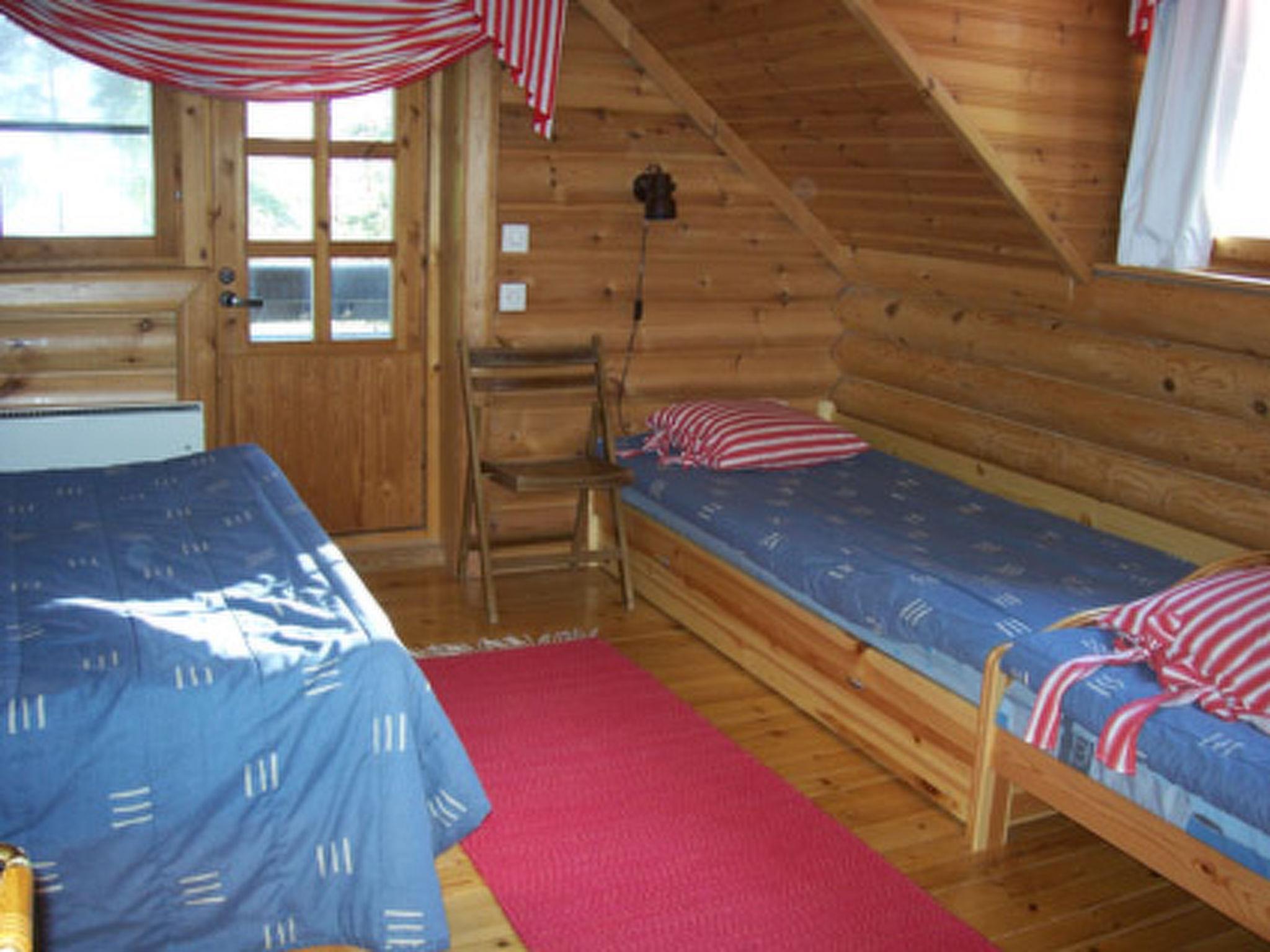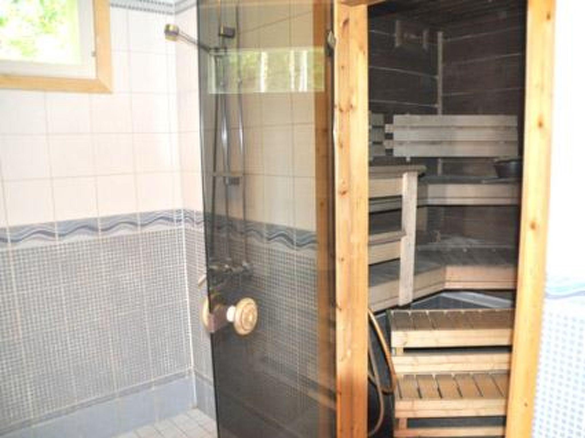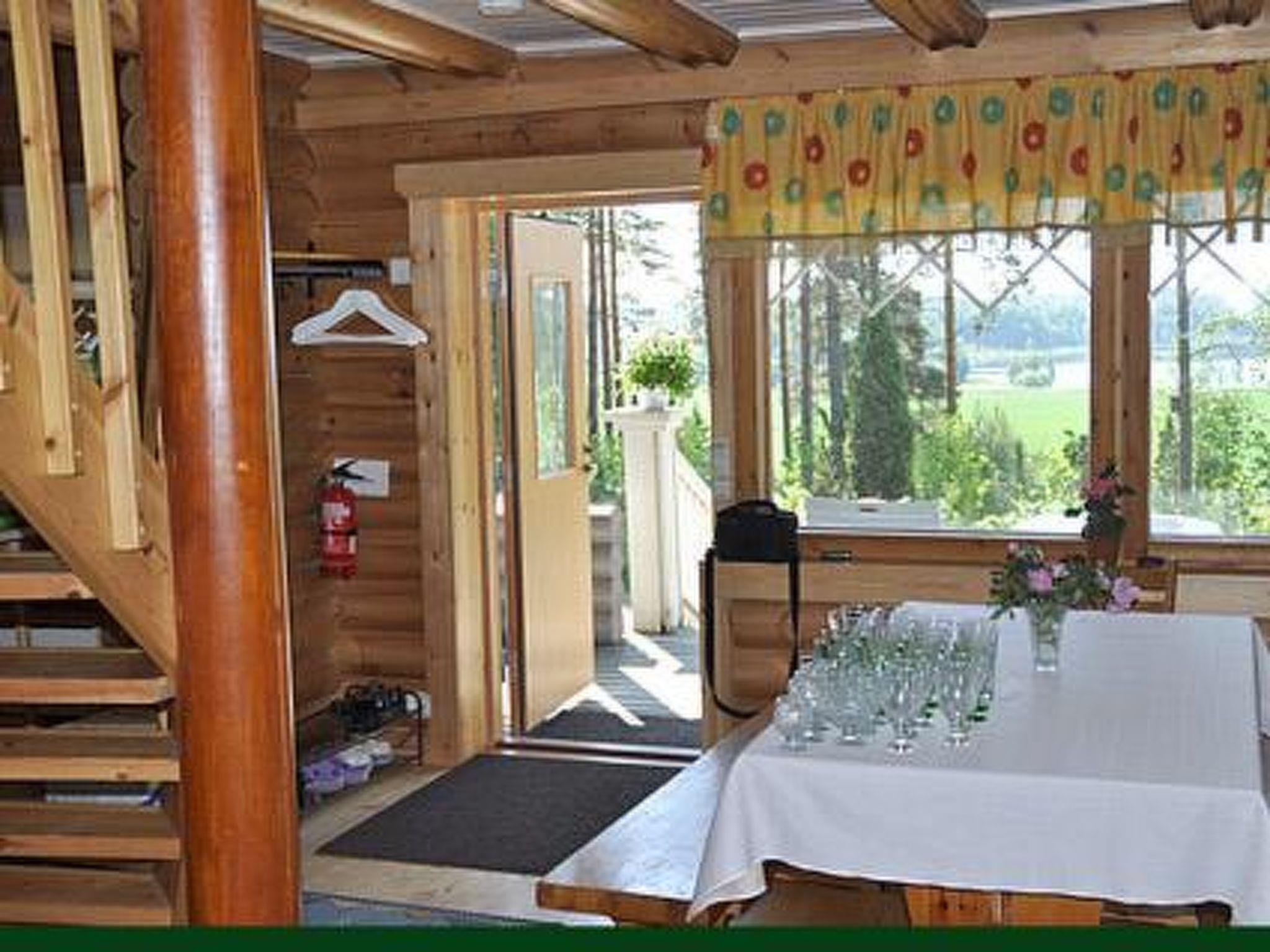 25 km south-east of Tampere. Lake Roinejärvi 140 m (length 10 km, breadth 5 km), shallow water, firm sanded clay bottom. Own boat. Log cabin 1989, kitchen/living room, 3 bedrooms with 2 beds in each, 1 bedroom with 2 beds + 2 extra beds, washroom, electric sauna, open veranda. Separate lakeside sauna (wood heated sauna stove) with a hearth room with fridge, washing room, dressing room, shower, WC. Lakeside sauna is located about 110 m distance from the cabin and it can be used year-round.
