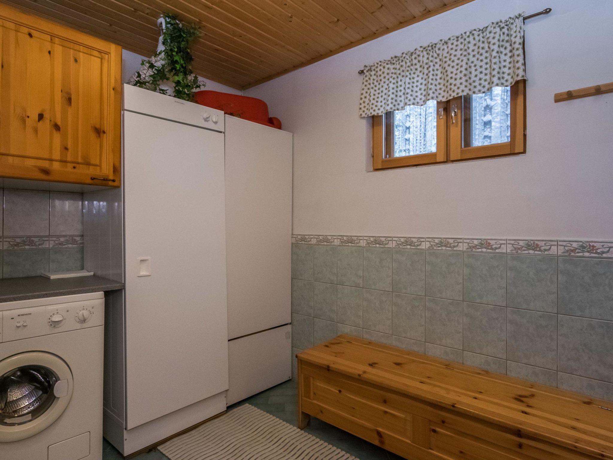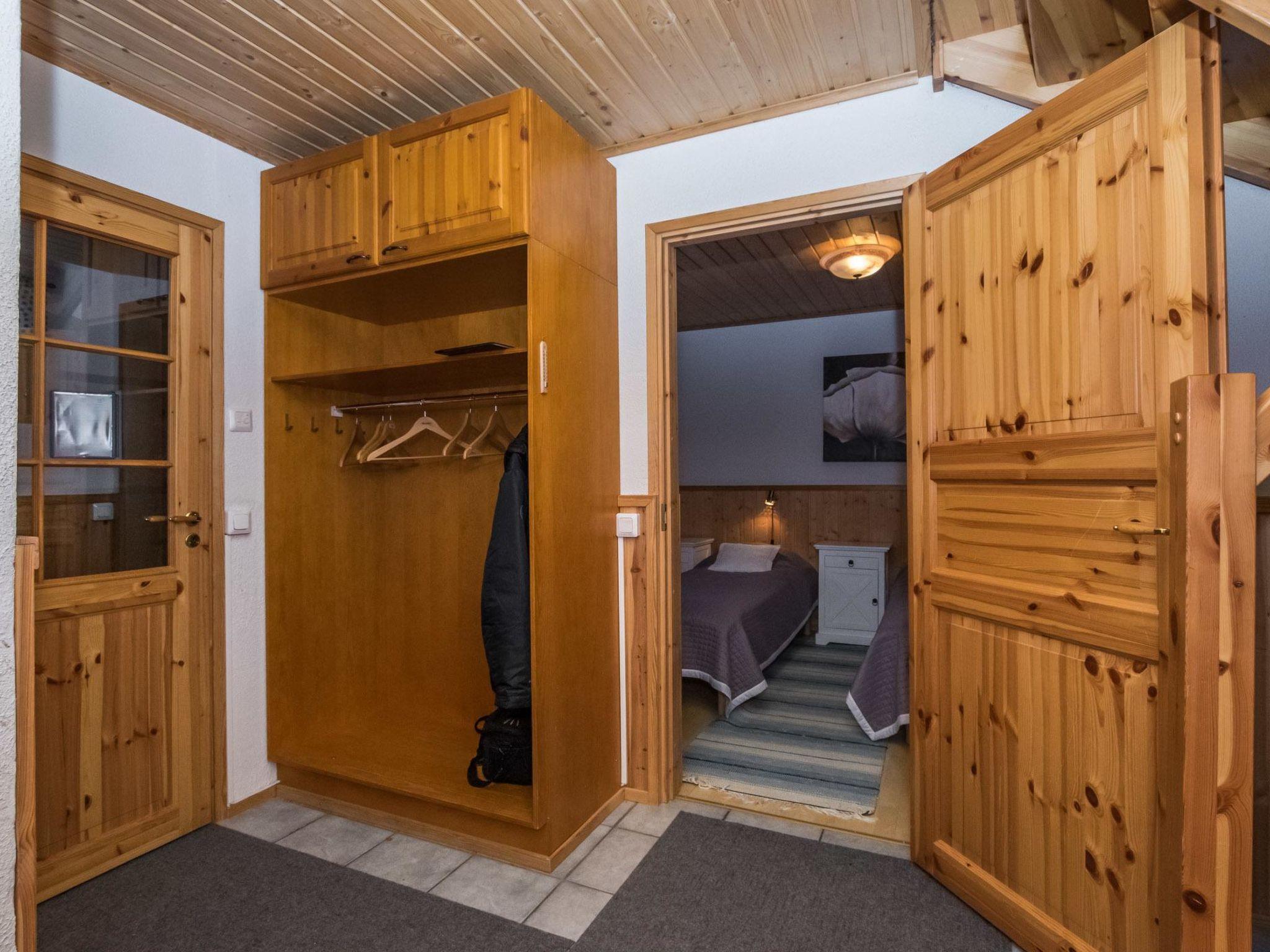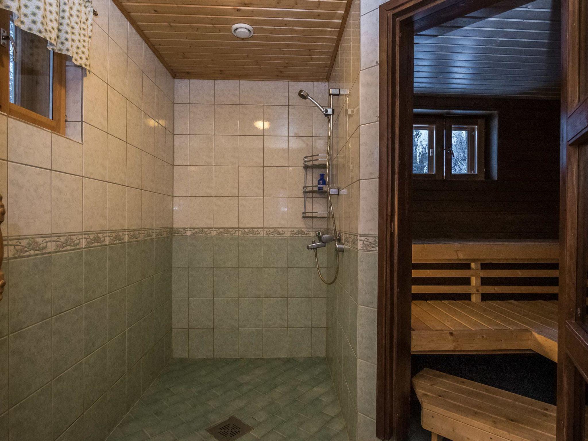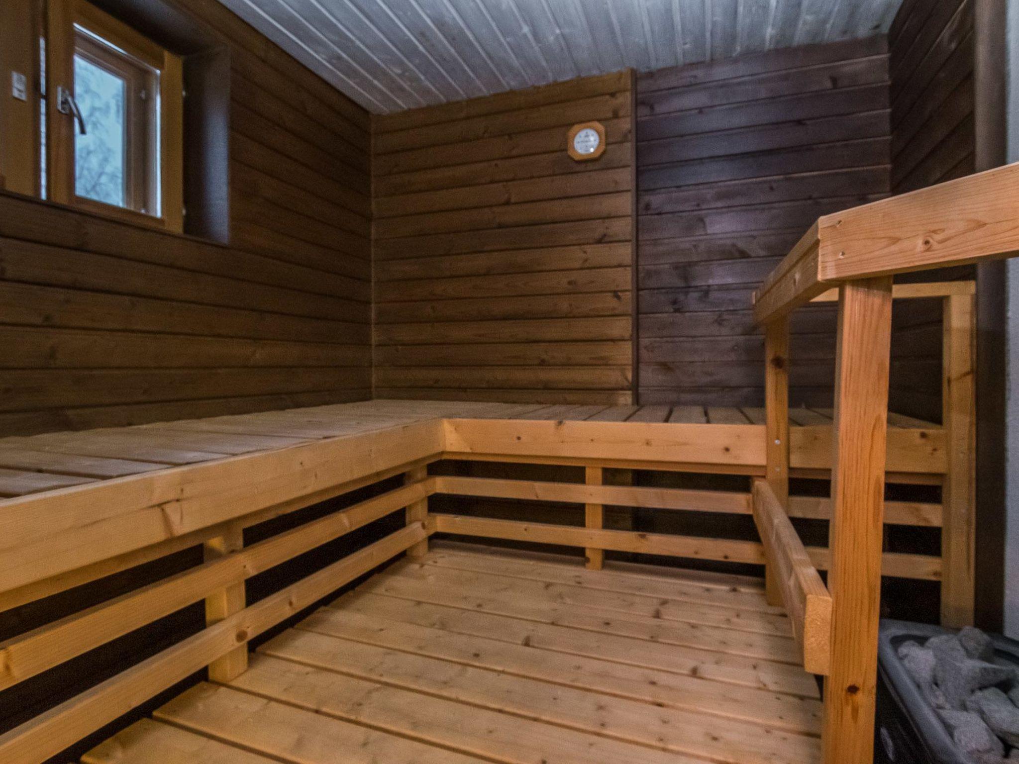 Downstairs: bedroom with two beds, dressing room, washroom, sauna, toilet, hallway, open porch.