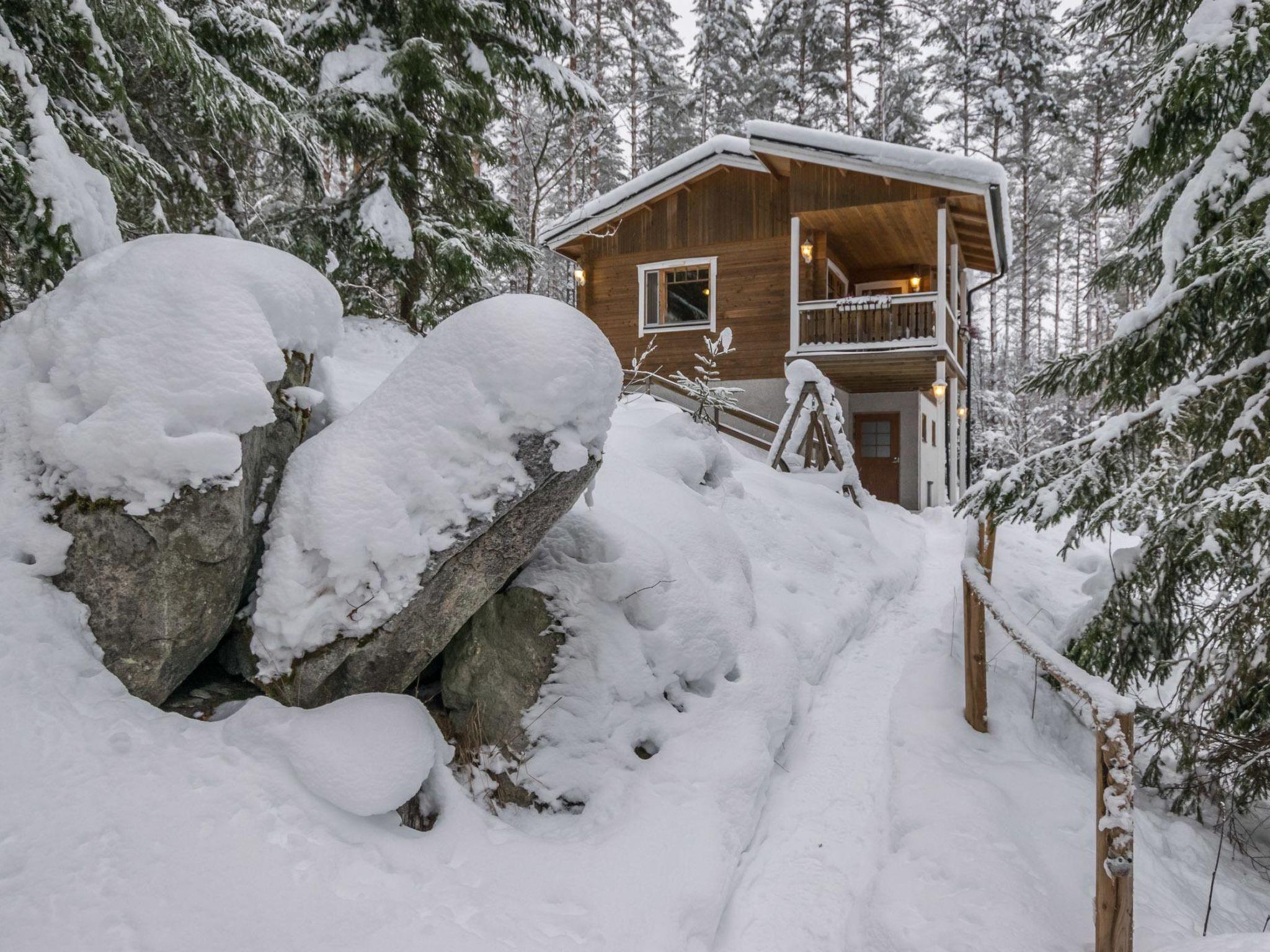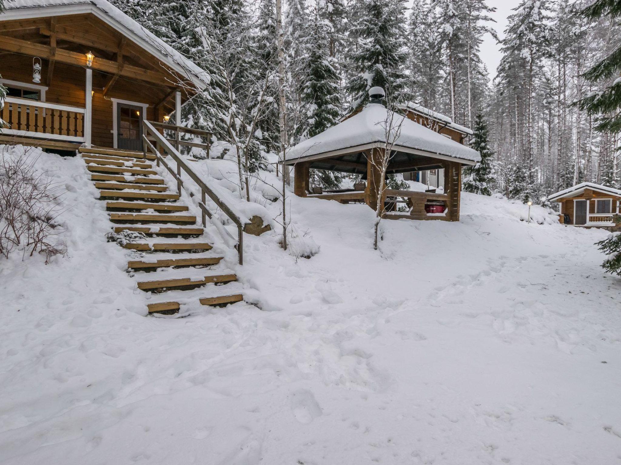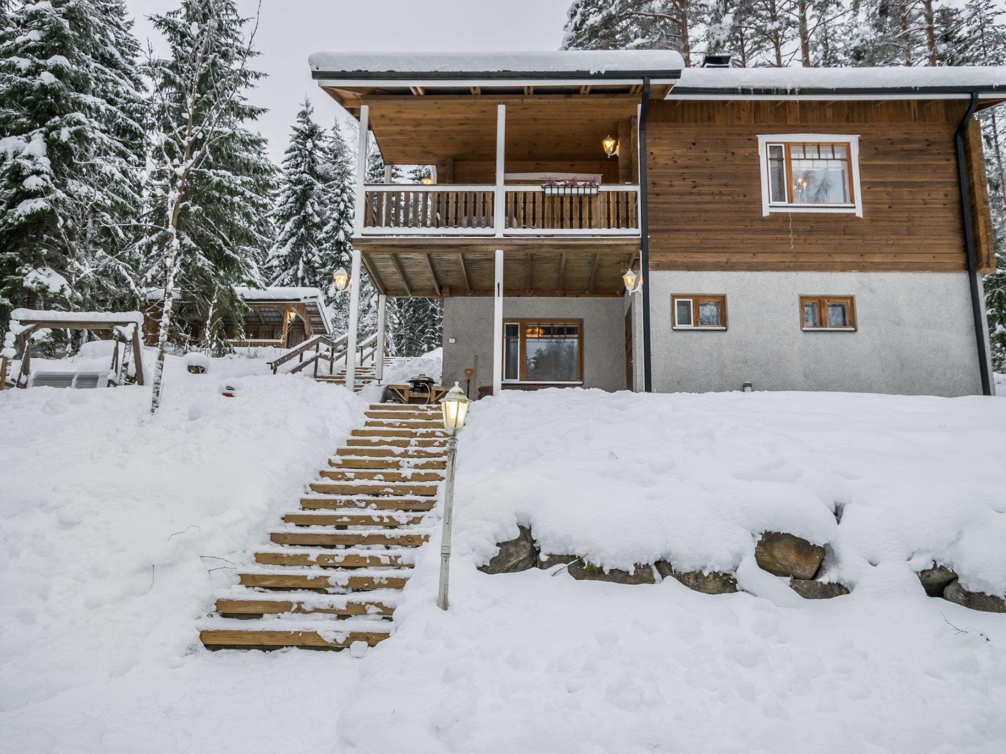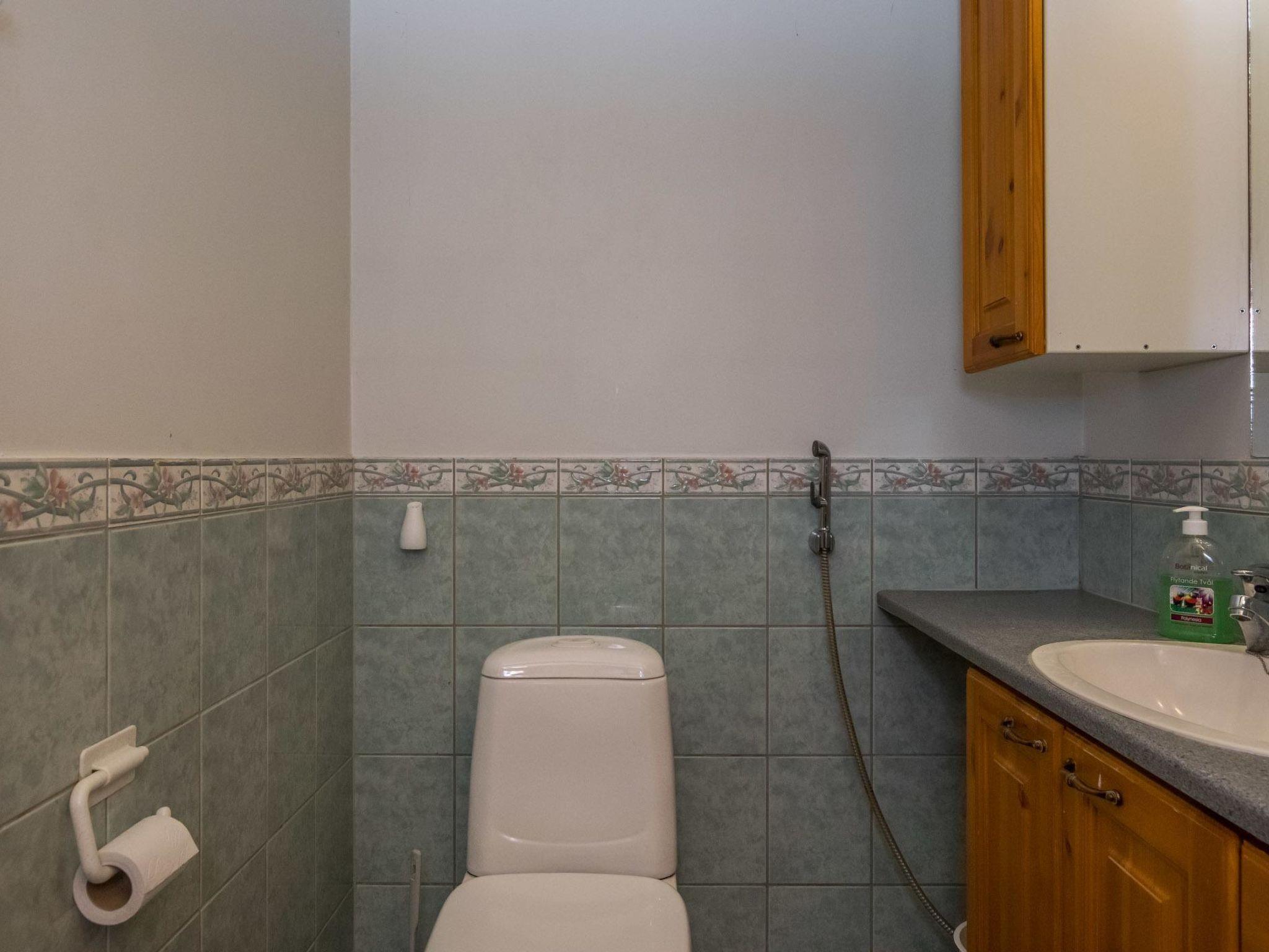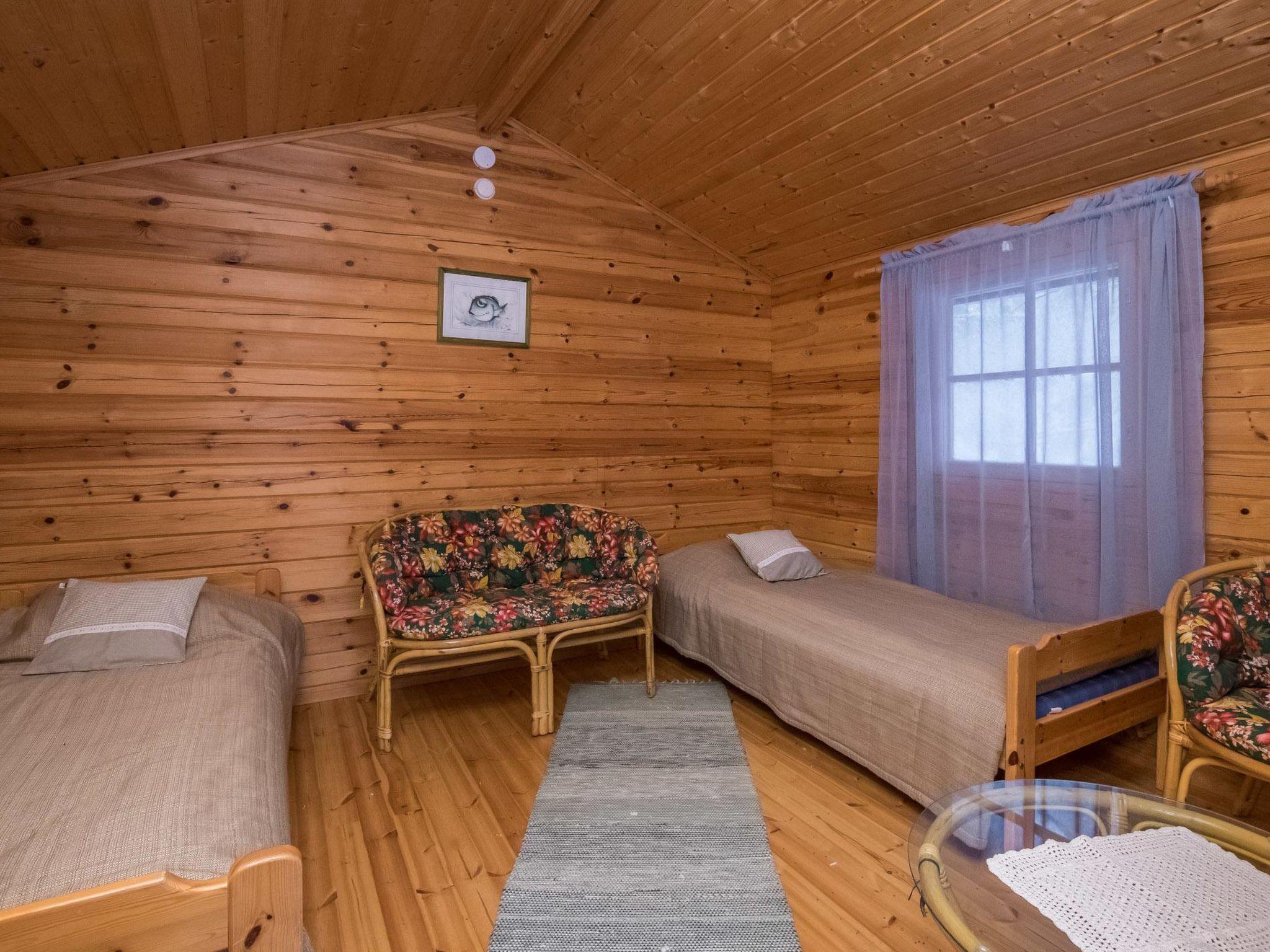 Downstairs: bedroom with two beds, dressing room, washroom, sauna, toilet, hallway, open porch.