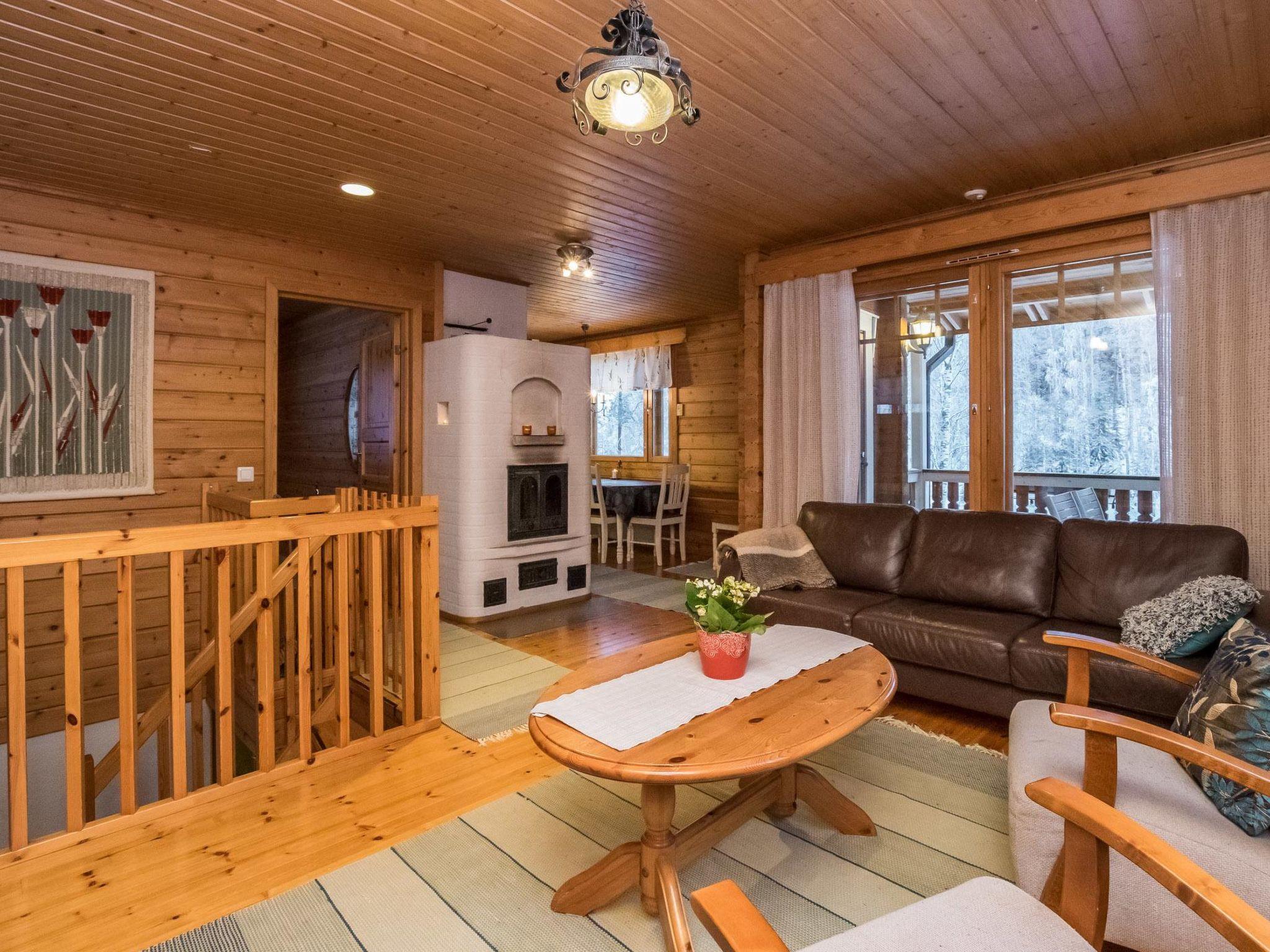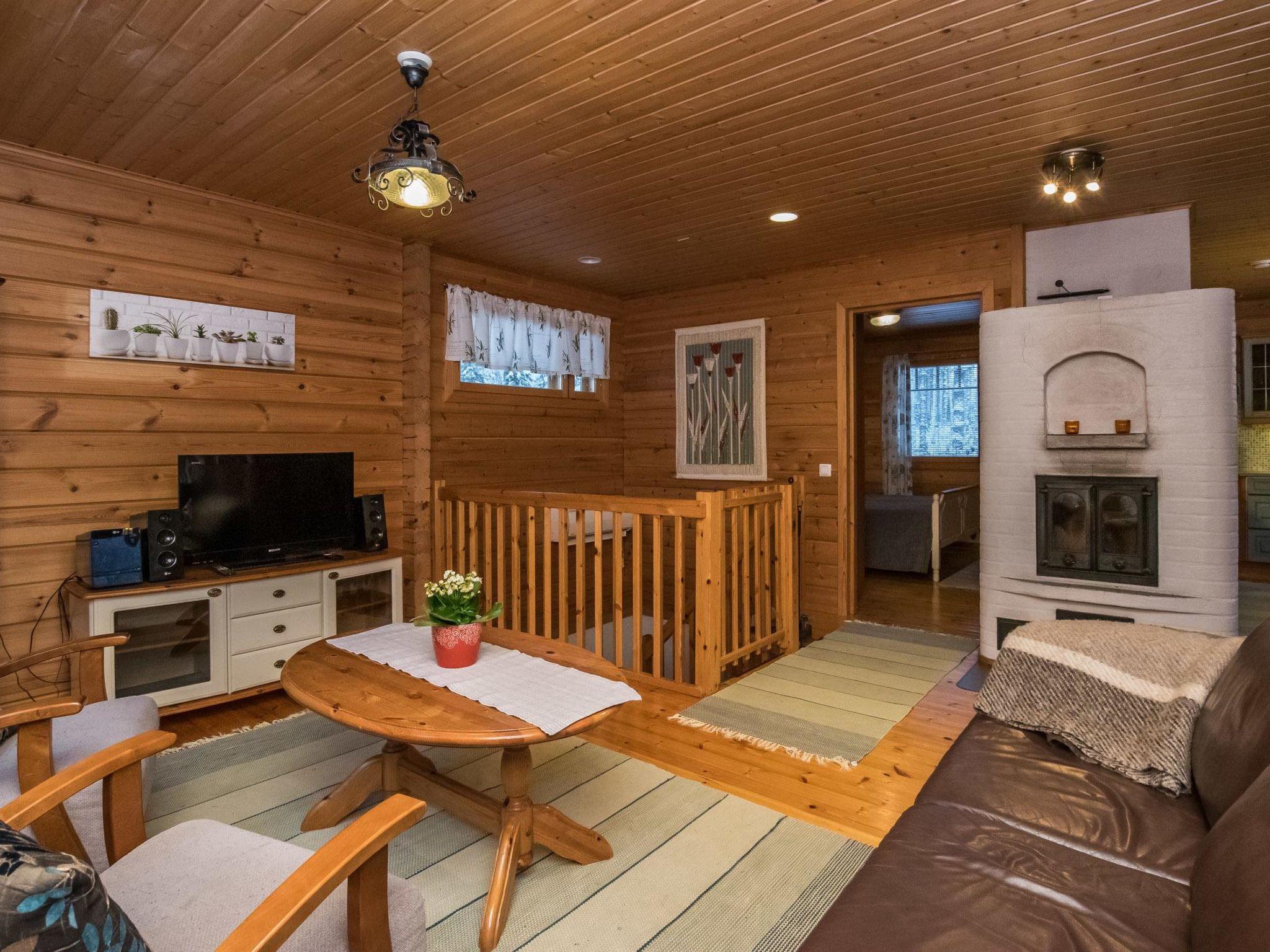 Two-storey log house 2000, upstairs: kitchen, living room with 2 extra beds (sofa bed), bedroom with double bed, balcony, air source heat pump, Wi-Fi connection.
