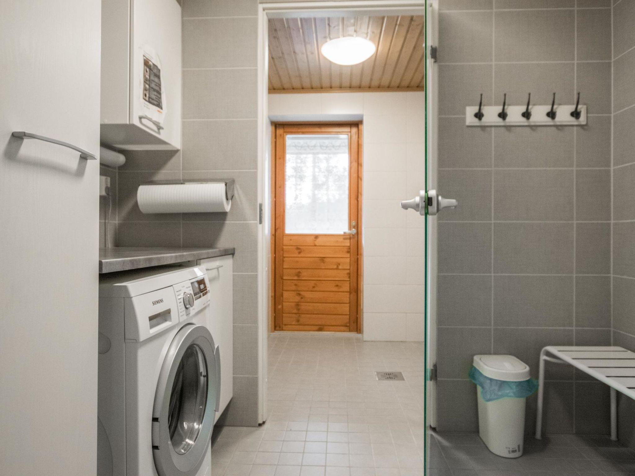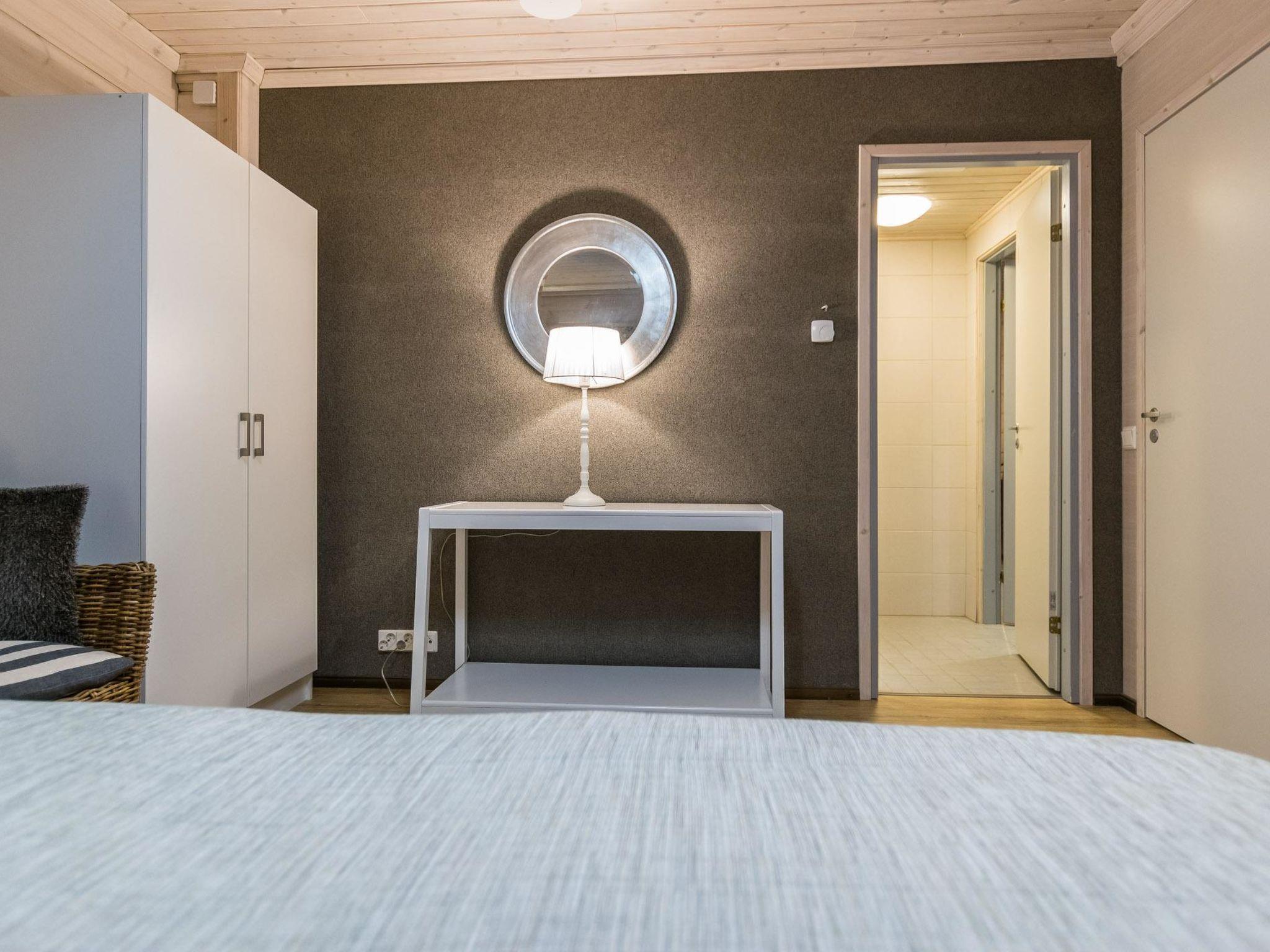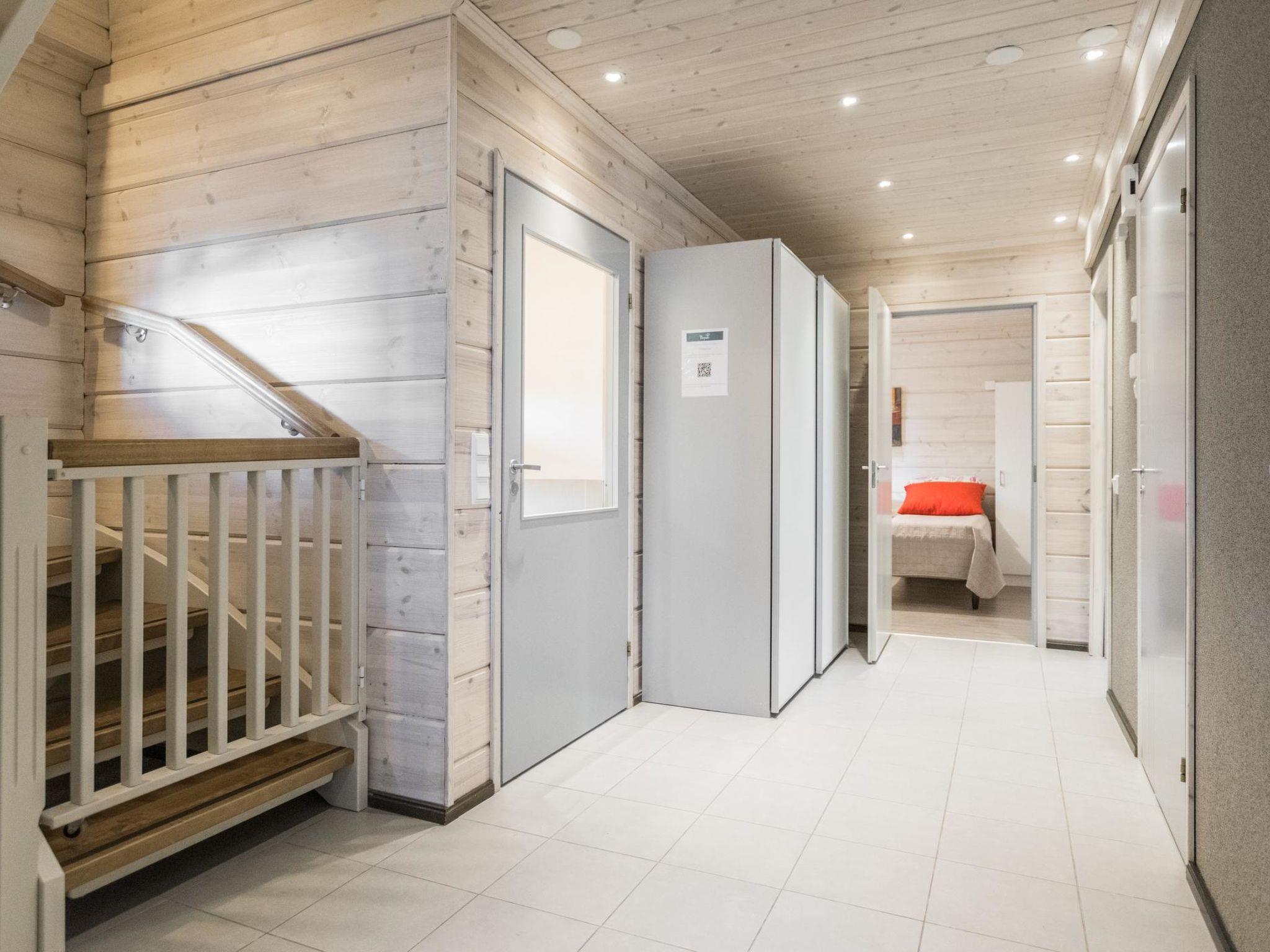 The cabin includes a bathroom and sauna equipped with an immediately ready electric sauna stove.